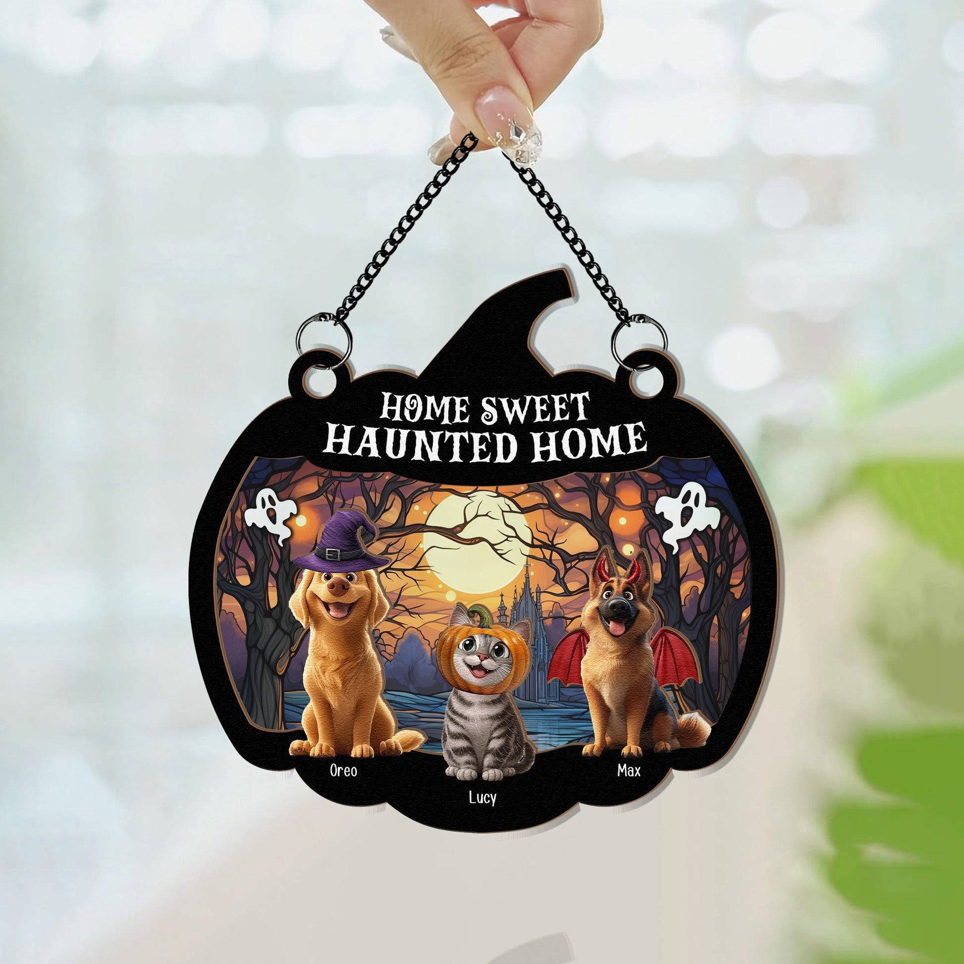 Happy Halloween Home Sweet Haunted Home - Personalized Window Hanging Suncatcher Ornament