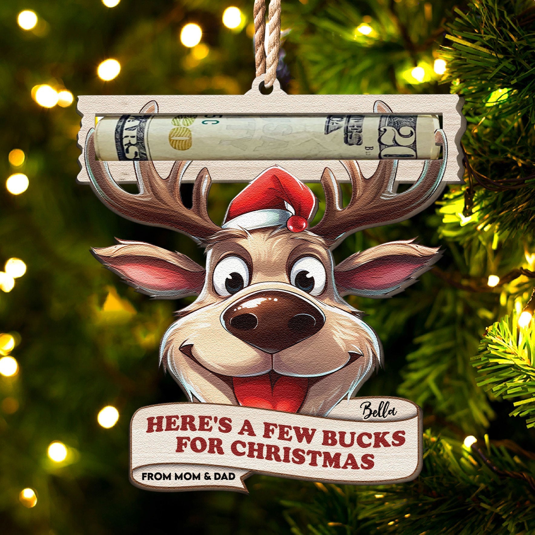 Here's A Few Bucks For Christmas - Personalized Wooden Ornament