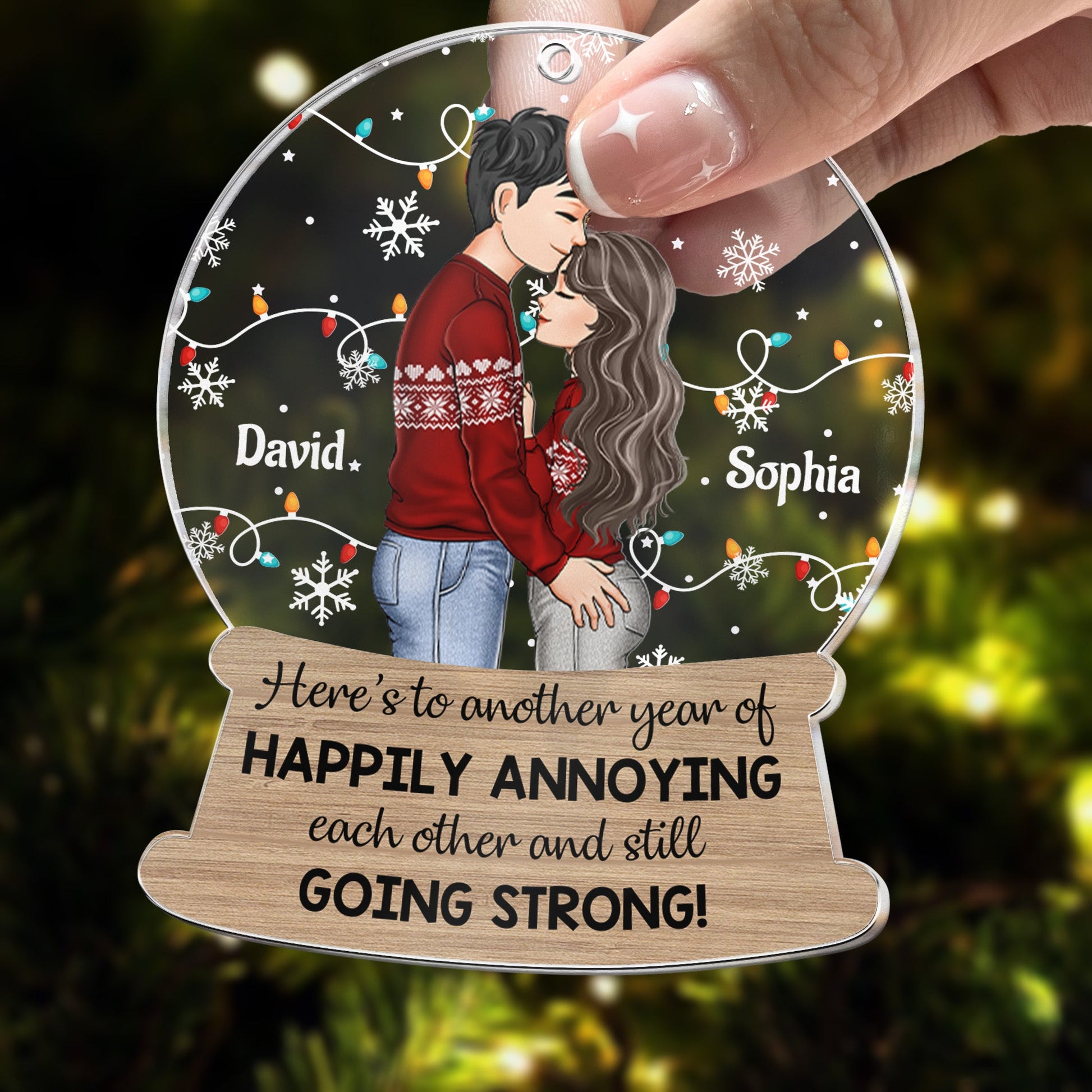 Whether you're seeking a Couple Personalized Christmas Ornament, a Holiday Gift for a Couple, or a sentimental surprise for your boyfriend, girlfriend, husband, or wife, our Personalized Acrylic Ornament is a heartfelt choice that beautifully captures your relationship. Whether you're commemorating the holiday season with a touch of personalization or looking for a special gesture for a birthday, anniversary, or any other occasion, our couple ornament is the perfect choice.