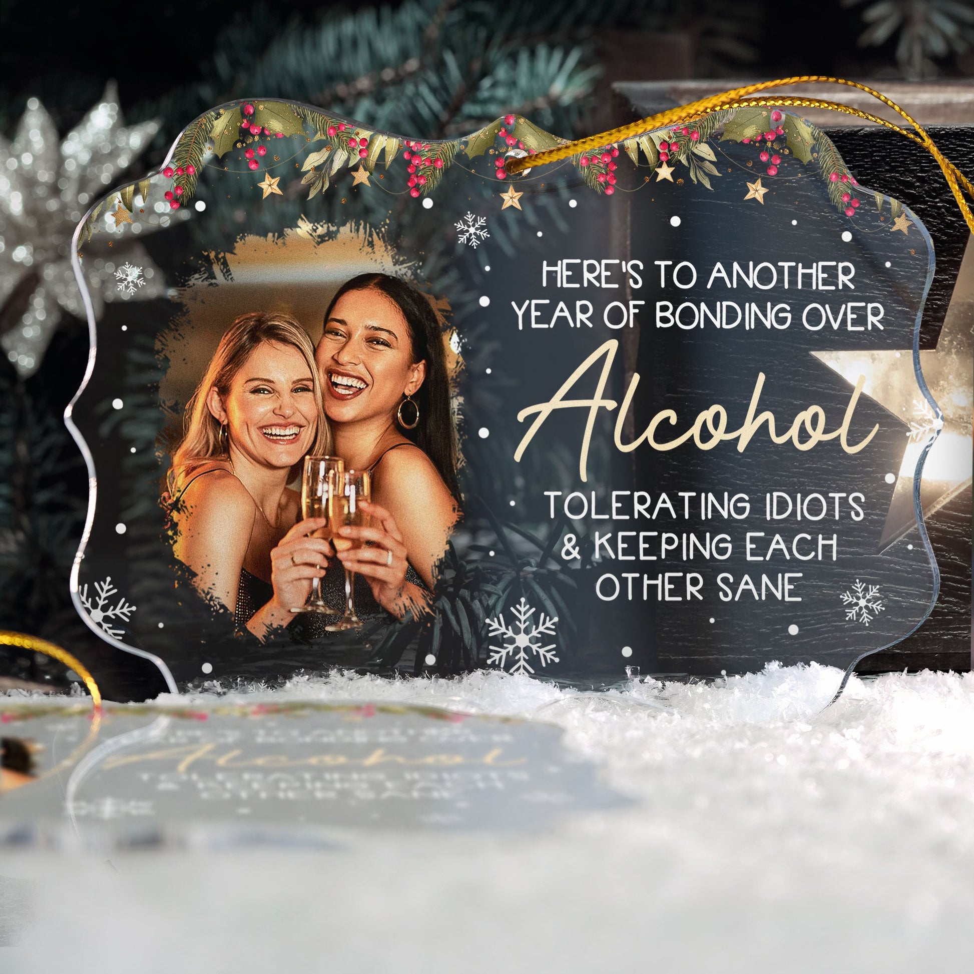 Celebrate your friendship with the perfect ornament this Christmas! This glitter design captures the essence of your bestie bond, making it a fun addition to your holiday party decor. Each sparkle reflects the laughter and memories you've shared while toasting to another year of tolerating life's little idiots together. Here's to more nights of bonding over drinks, keeping each other sane, and creating unforgettable moments. This ornament is not just a decoration; it’s a tribute to the hilarious adventures and the unwavering support that defines your friendship. Cheers to you and your bestie this festive season!