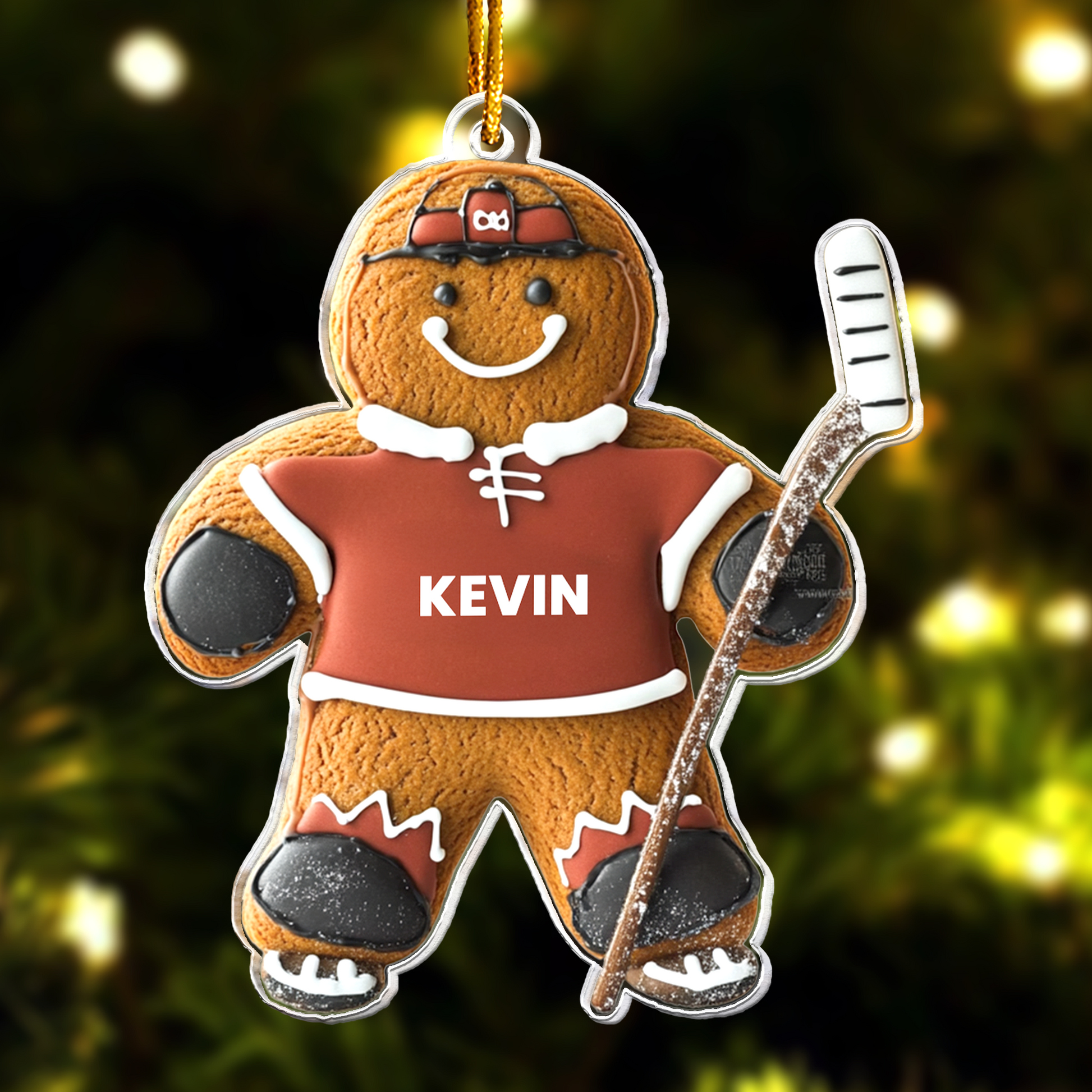 Hockey Gingerbread Christmas Ornament - Gift For Hockey Lovers, Kids - Personalized Acrylic Ornament