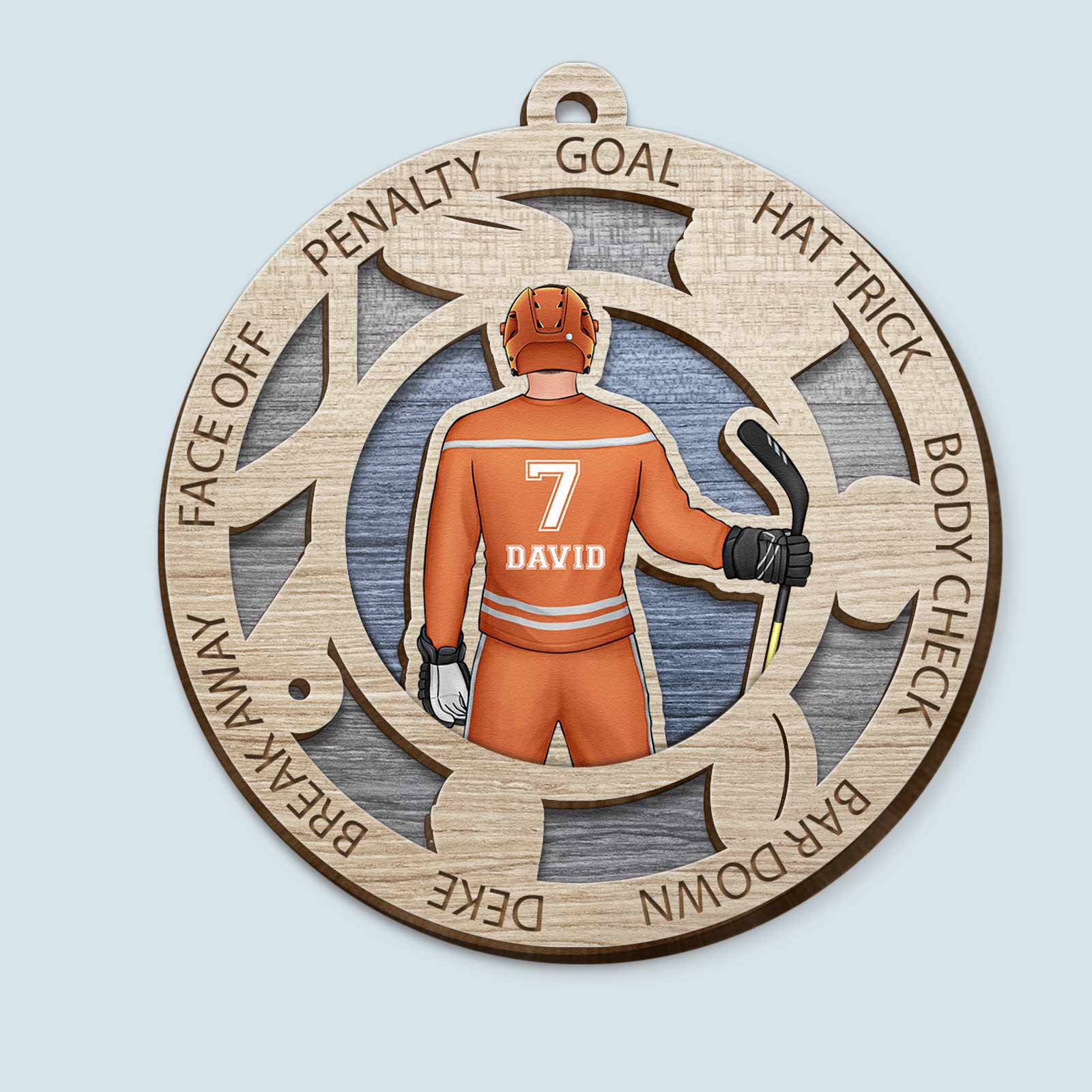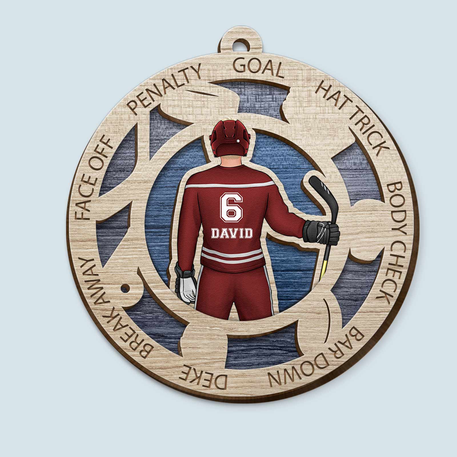 Hockey Player - Personalized 2 Layers Wooden Ornament - Christmas, Birthday, Loving Gift For Hockey Team, Hockey Players, Teammates, Sons, Grandsons, Boyfriend