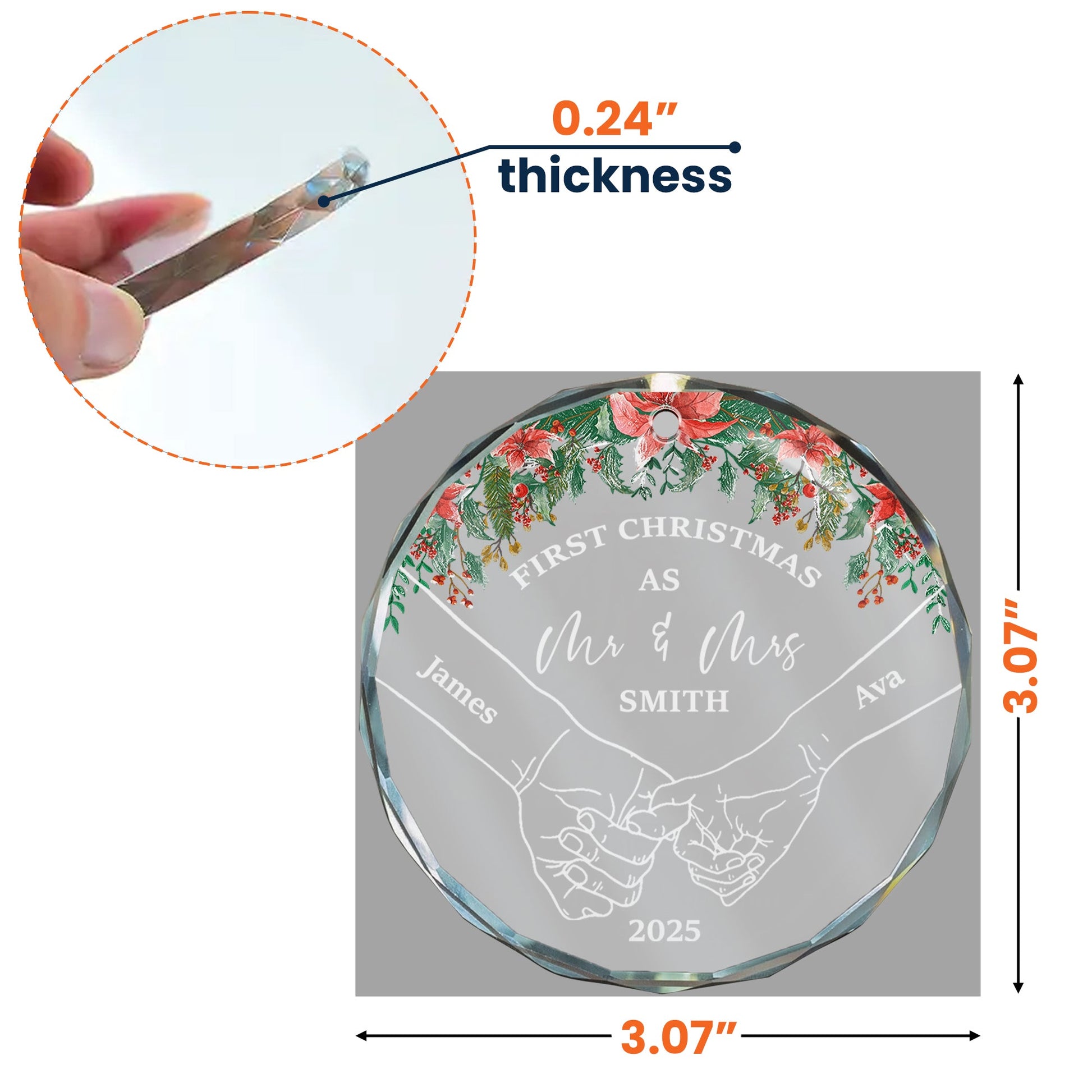 Celebrate the joy of shared moments and special firsts with our Personalized Glass Ornament titled "Holding Hands First Christmas". Crafted with love and designed to perfectly capture the bond between a couple, this ornament is an ideal gift for your wife, husband or that perfect duo in your life. It's a piece of art that resonantly echoes the memorable milestones of their journey together, be it their first Christmas as parents, in their new home, or as a married couple. Perfect for Christmas, anniversaries, or any notable occasion, it superbly extends the joy of gifting.