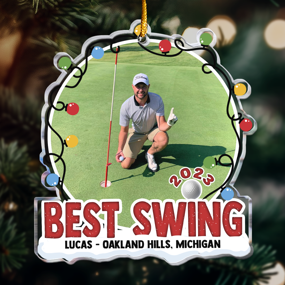 Unveiling our Personalized Acrylic Keepsake Custom Photo Golf Ornament, which weaves memories into festive beauty. This exquisitely designed ornament transforms your favorite golf memory into a lasting beauty. It encompasses the essence of the game and is ideal for golf-loving kids, guys, and as a meaningful Christmas present for spouses. Designed for your favorite golfer, this ornament transforms into an everlasting symbol of devotion and emotion, preserving memories with an artistic touch. Enhance your gift-giving with this personalized masterpiece, a mark of your bond with the golf enthusiast in your life. It may also be turned into a personalised keychain or a custom photo car ornament to decorate your vehicle, making it a perfect present for relatives and friends.