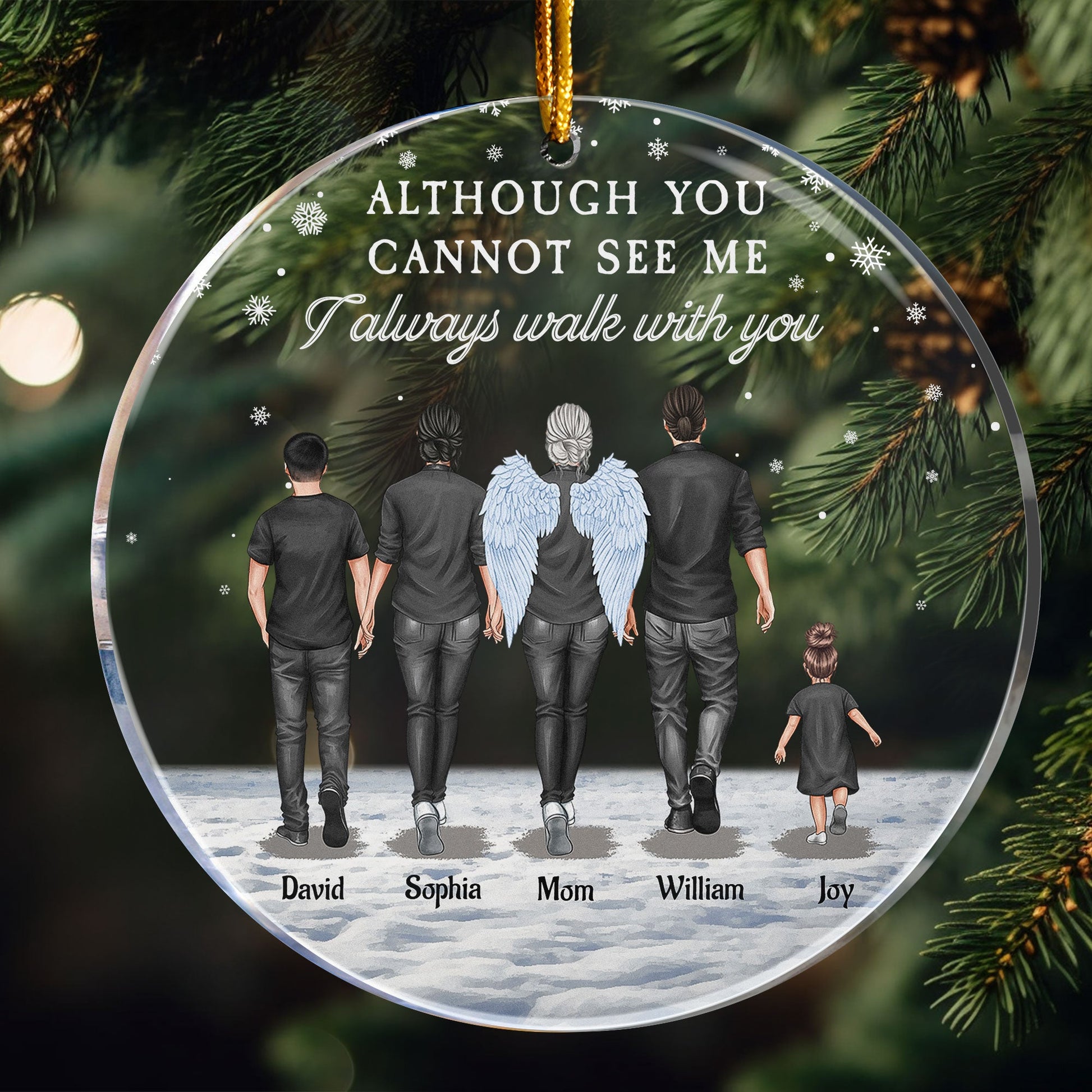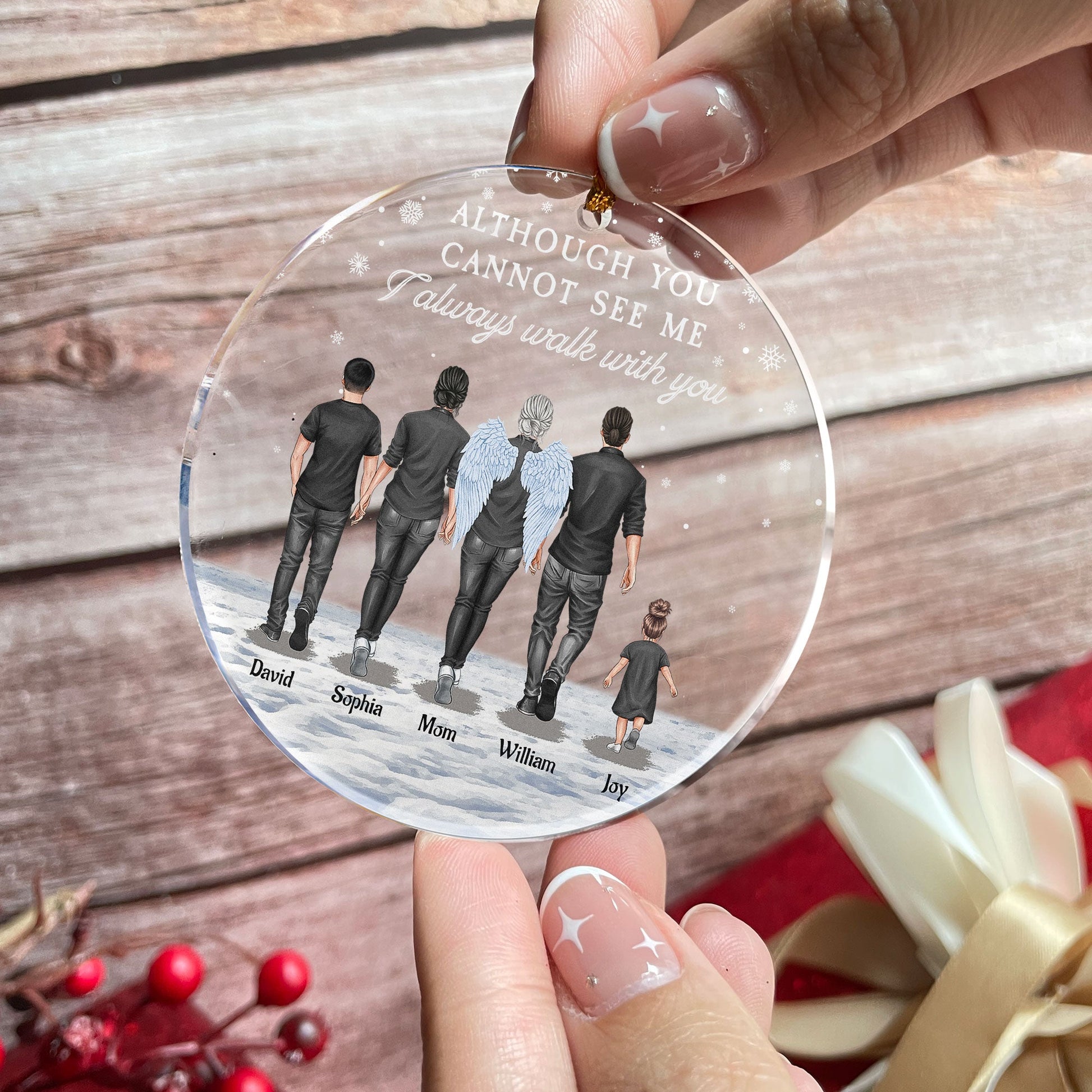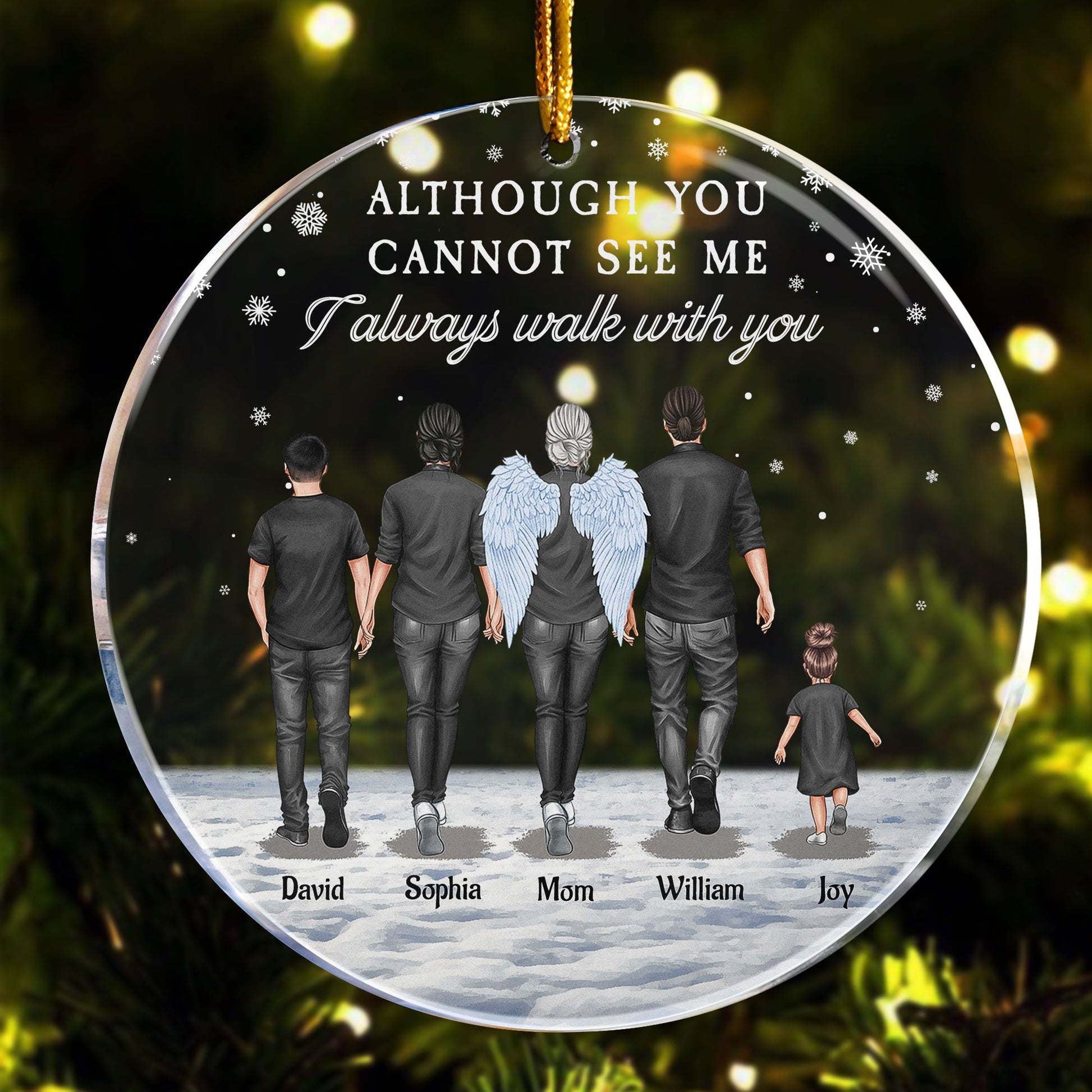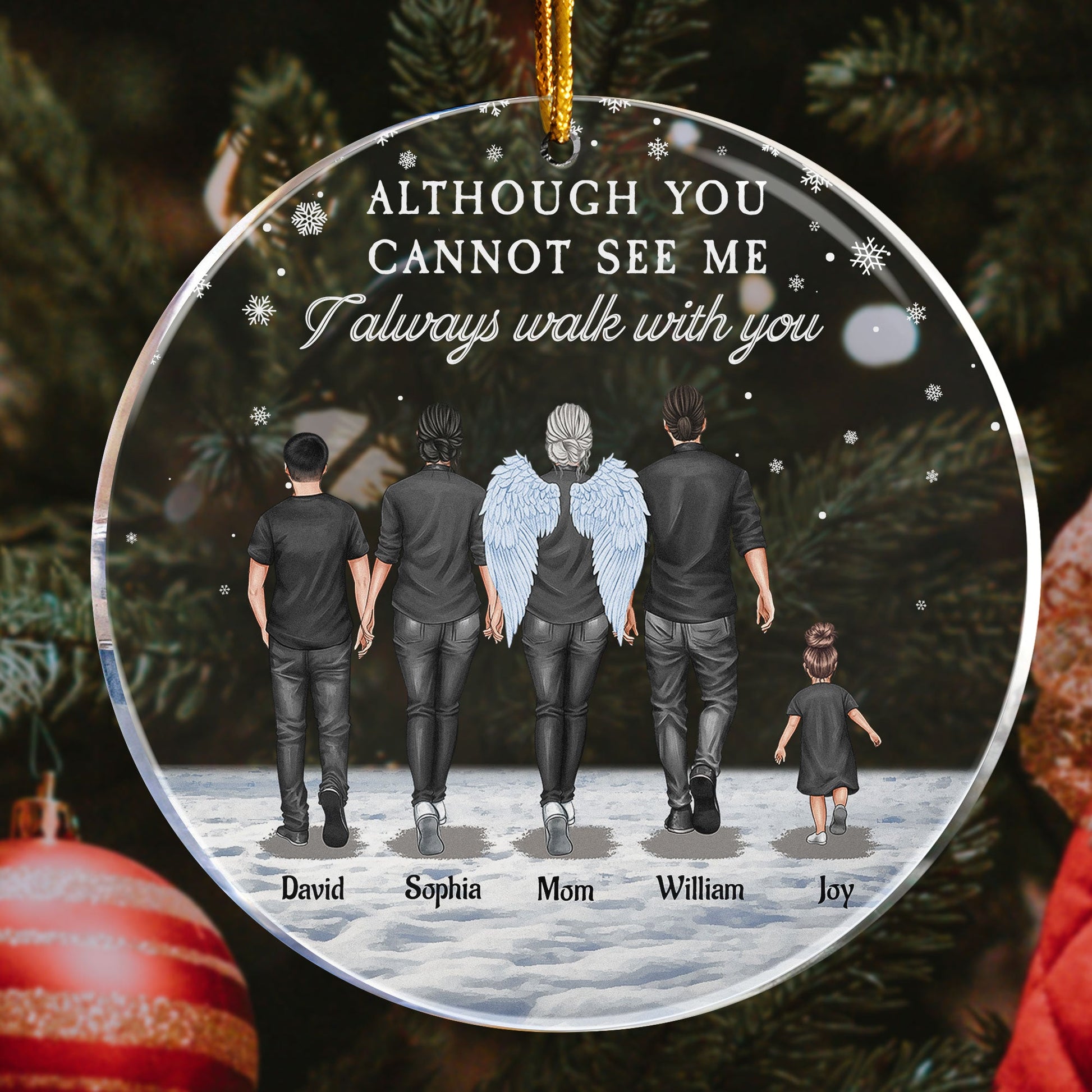Honor the memory of a loved one with our Personalized Acrylic Ornament, featuring the comforting message "Although you cannot see me, I always walk with you." This beautifully crafted ornament is a heartfelt tribute, designed to provide comfort and serve as a gentle reminder that those we've lost are never far away.