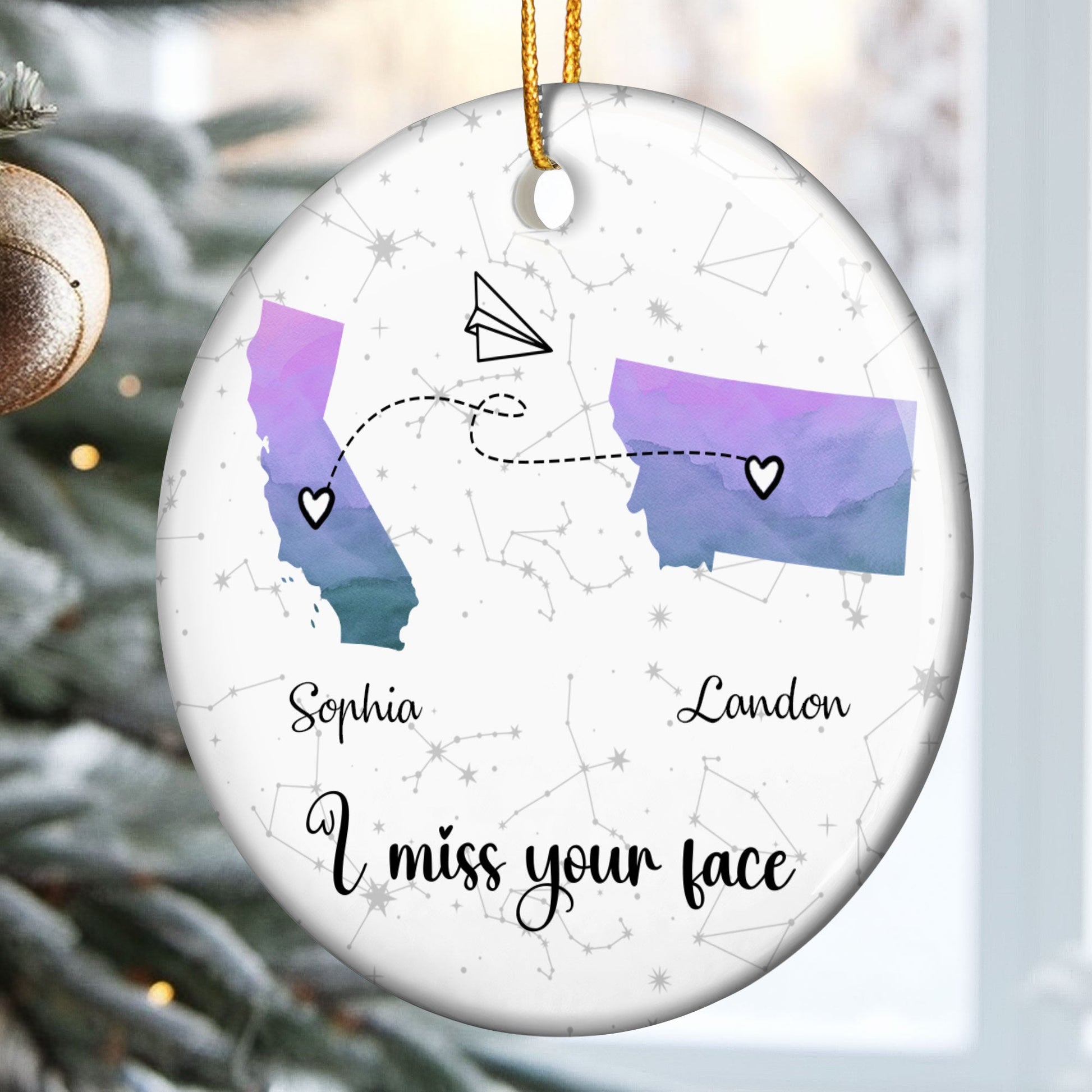 I Miss Your Face Custom Multi States Long Distance Relationship - Personalized Ceramic Ornament