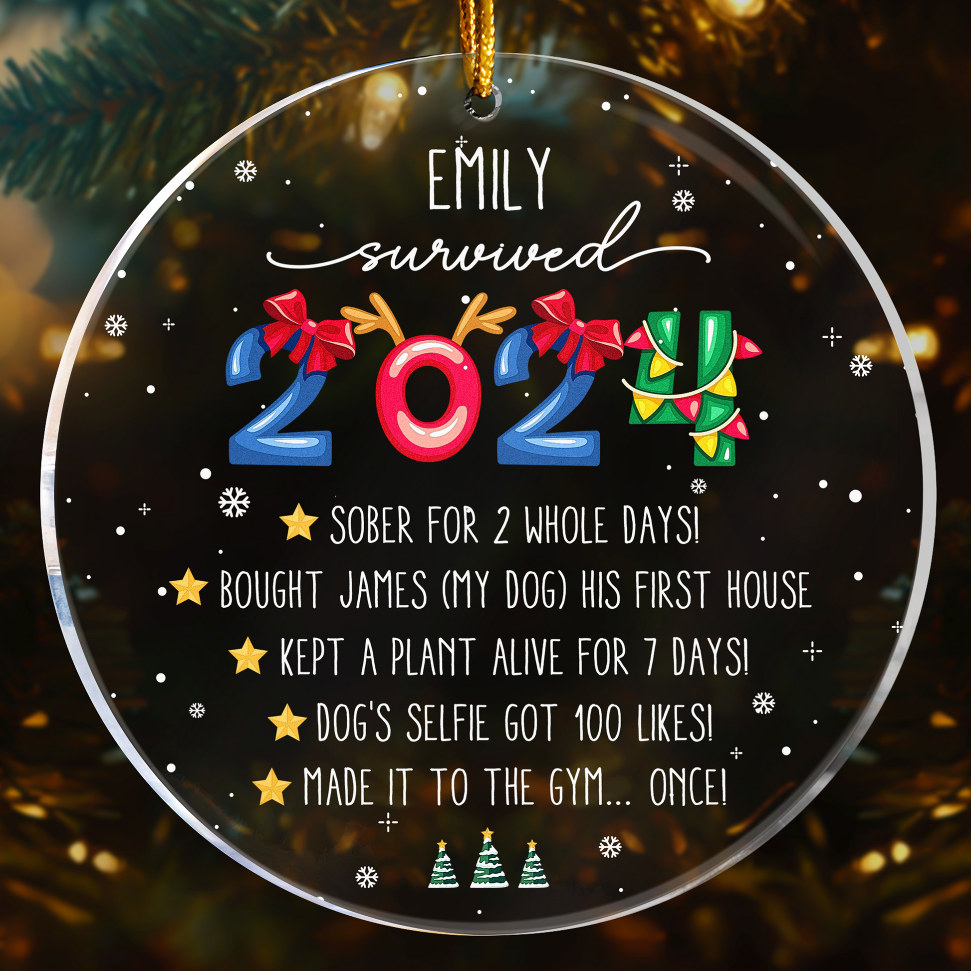 I Survived 2024 - Funny Year In Review - Personalized Acrylic Ornament