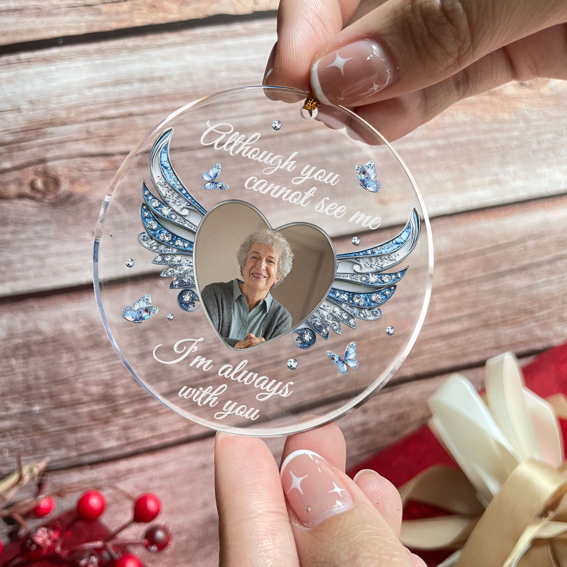I'm Always With You Heart Wings - Personalized Acrylic Photo Ornament
