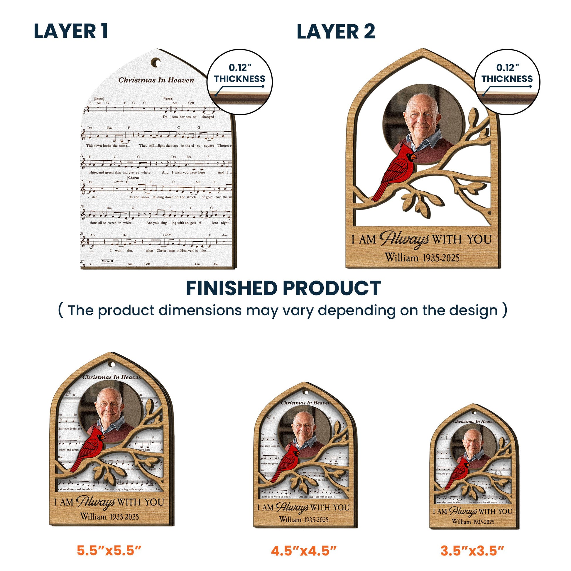 I'm Always With You Memorial Christmas Ornament 2 Layers - Personalized Wooden Photo Ornament