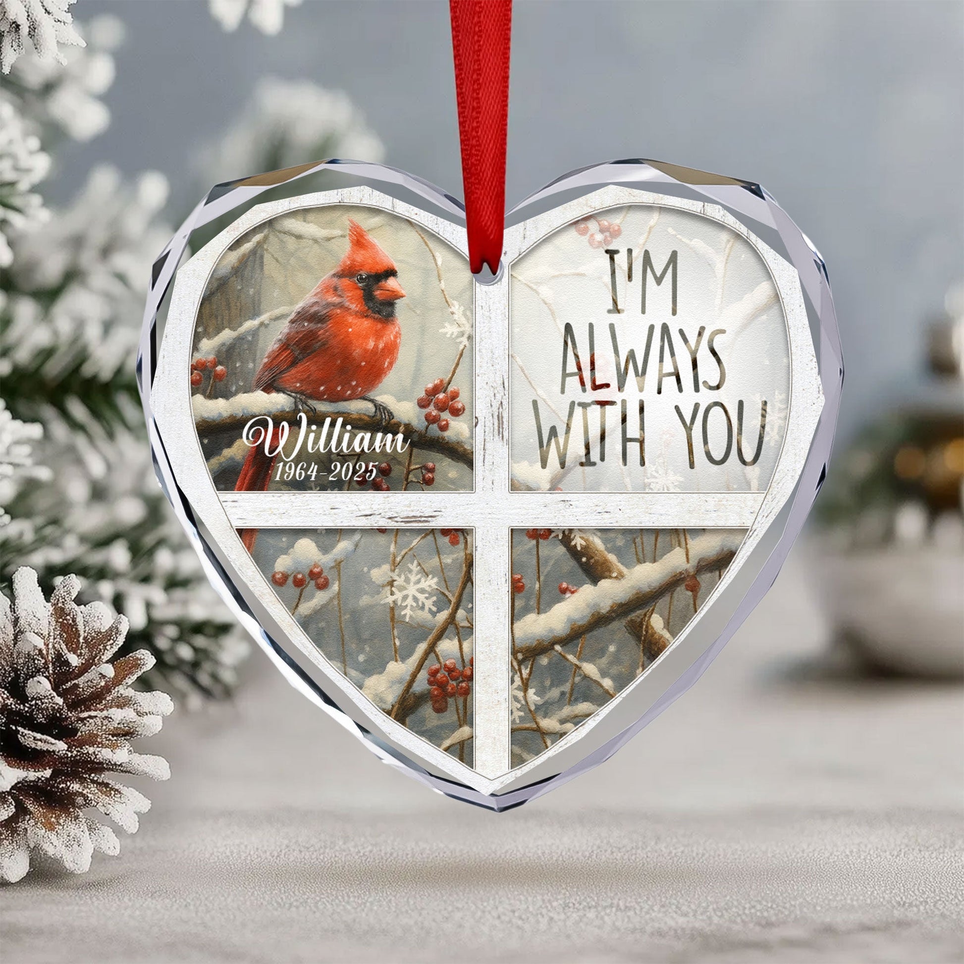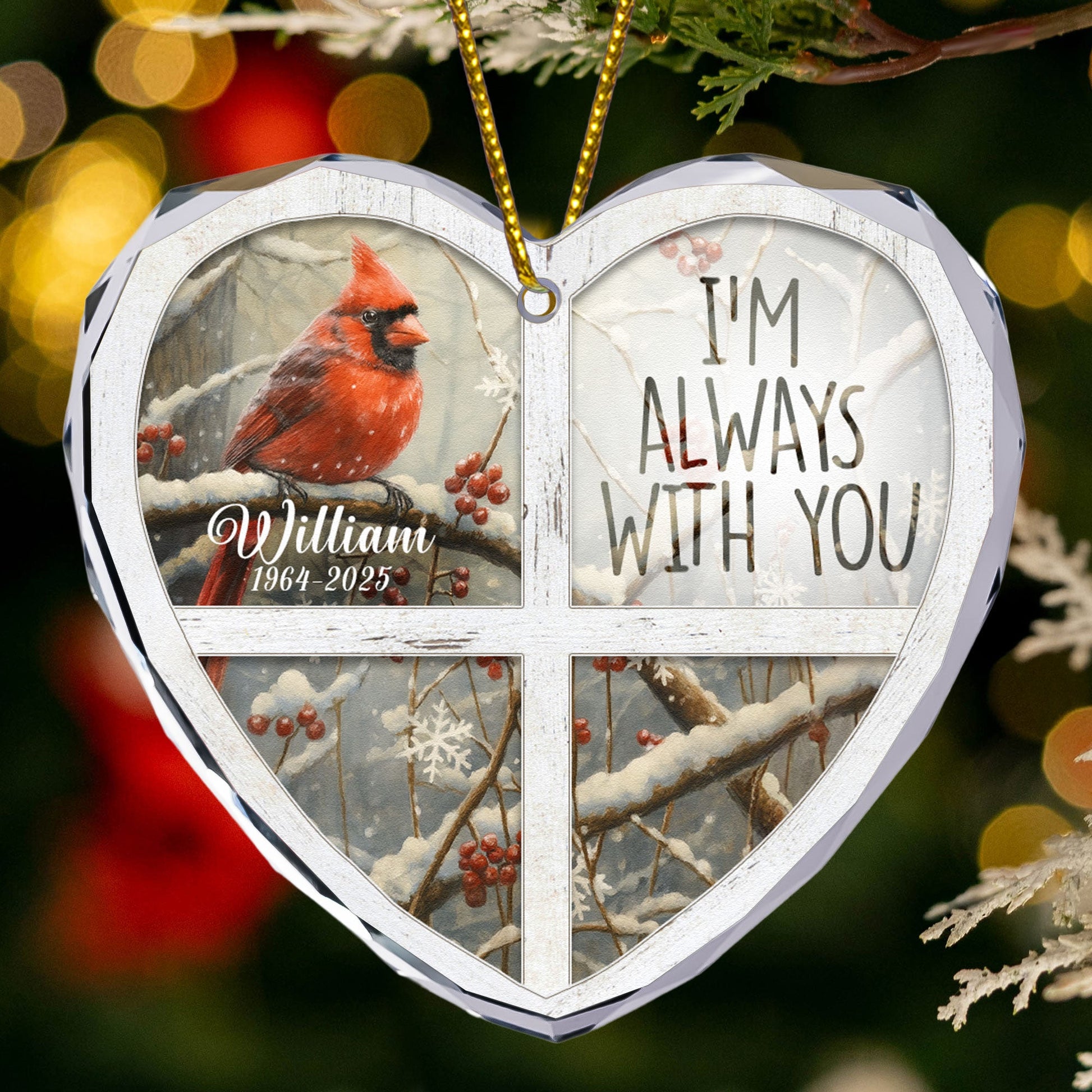 I'm Always With You Red Cardinal - Personalized Heart Glass Ornament