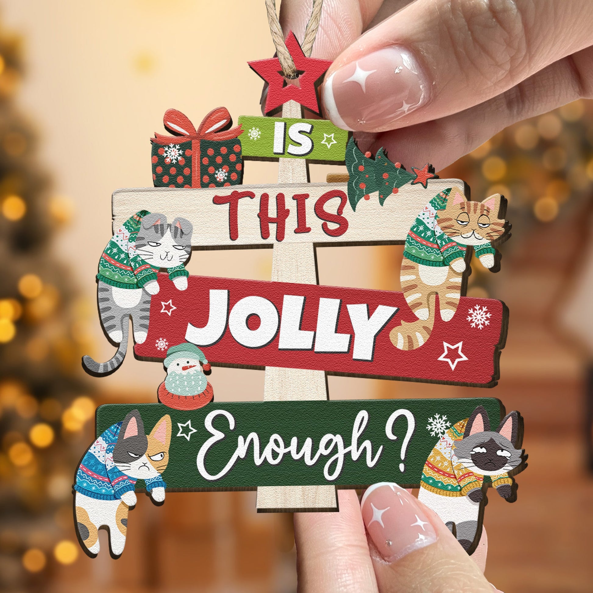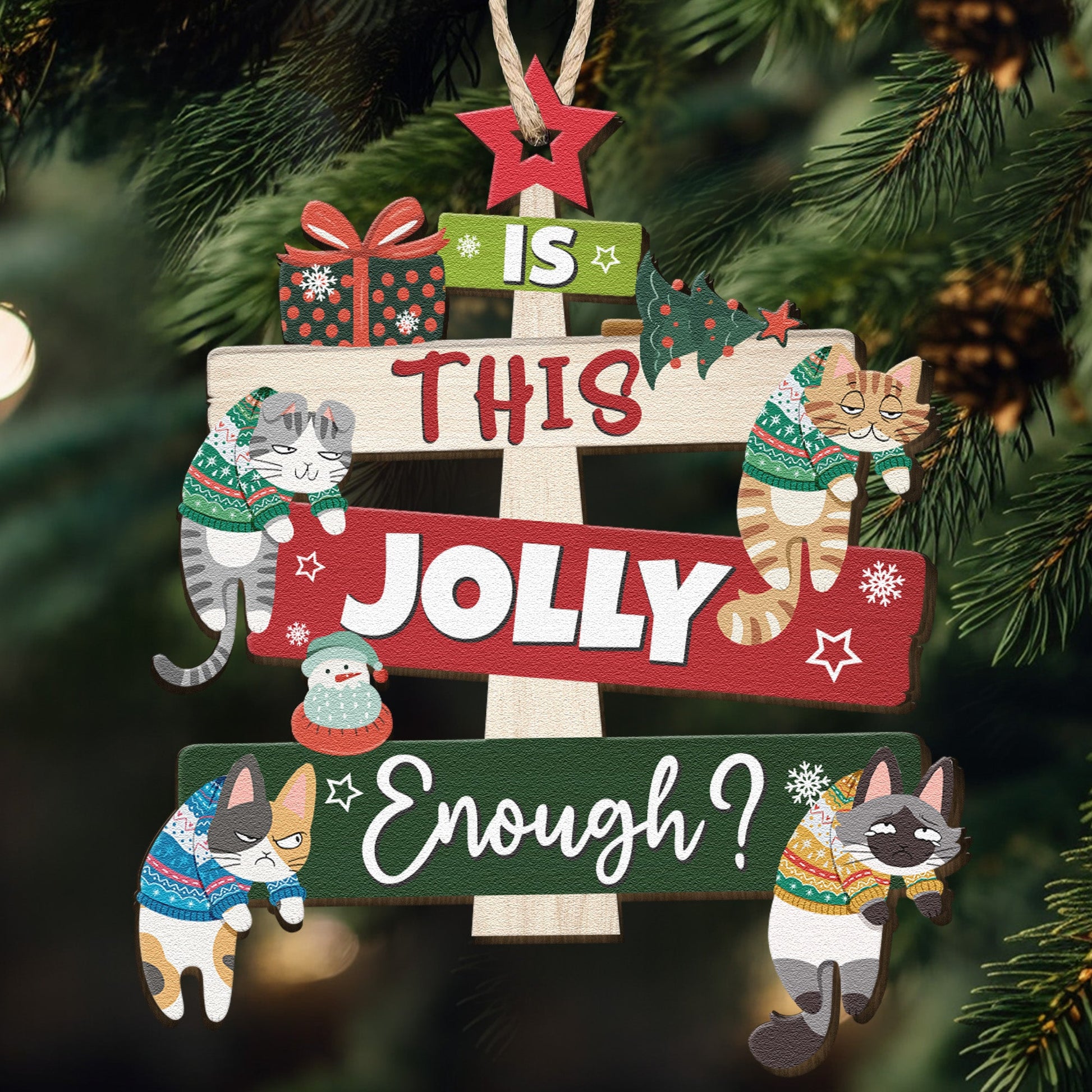 Is This Jolly Enough? Christmas Gift For Cat Lovers - Personalized Wooden Ornament