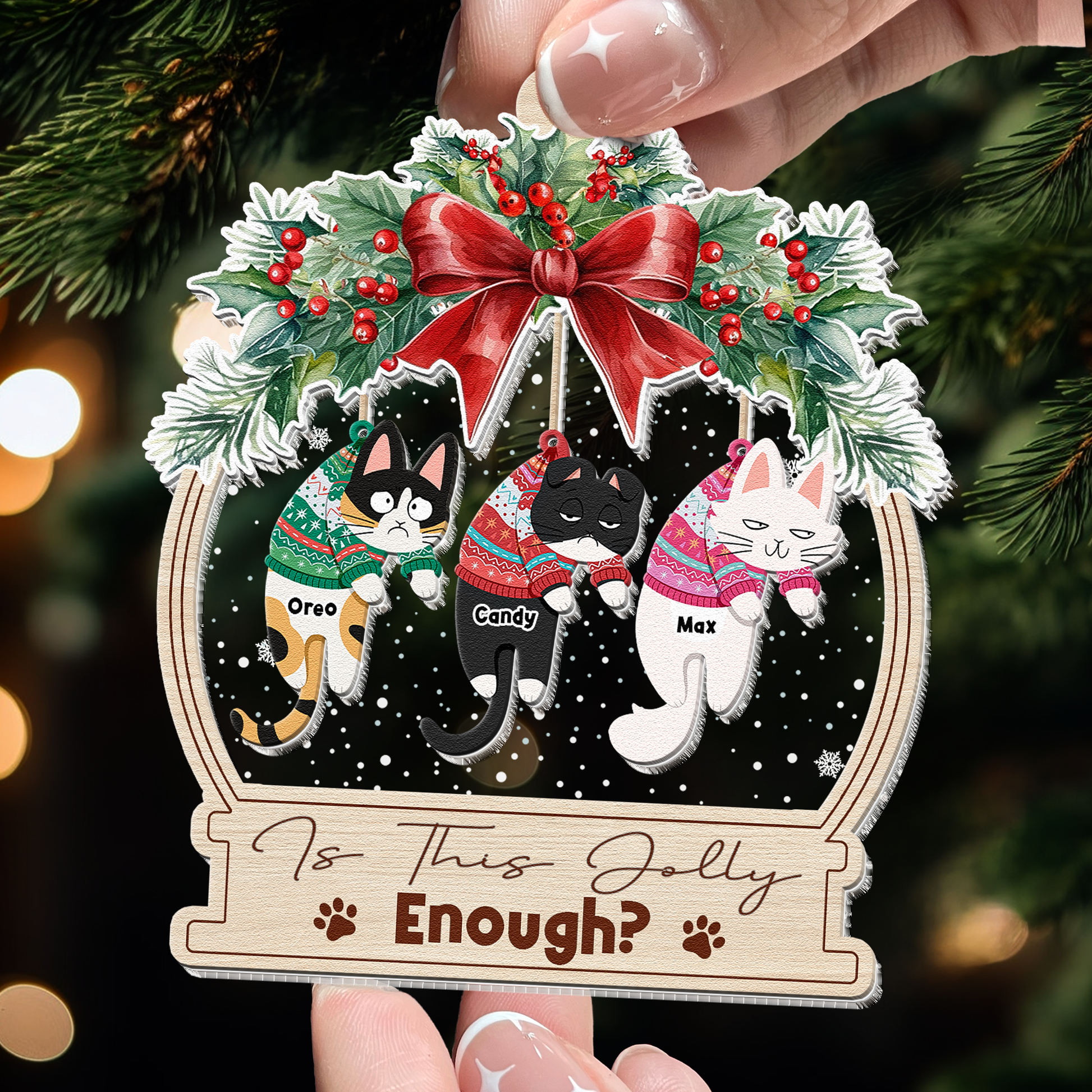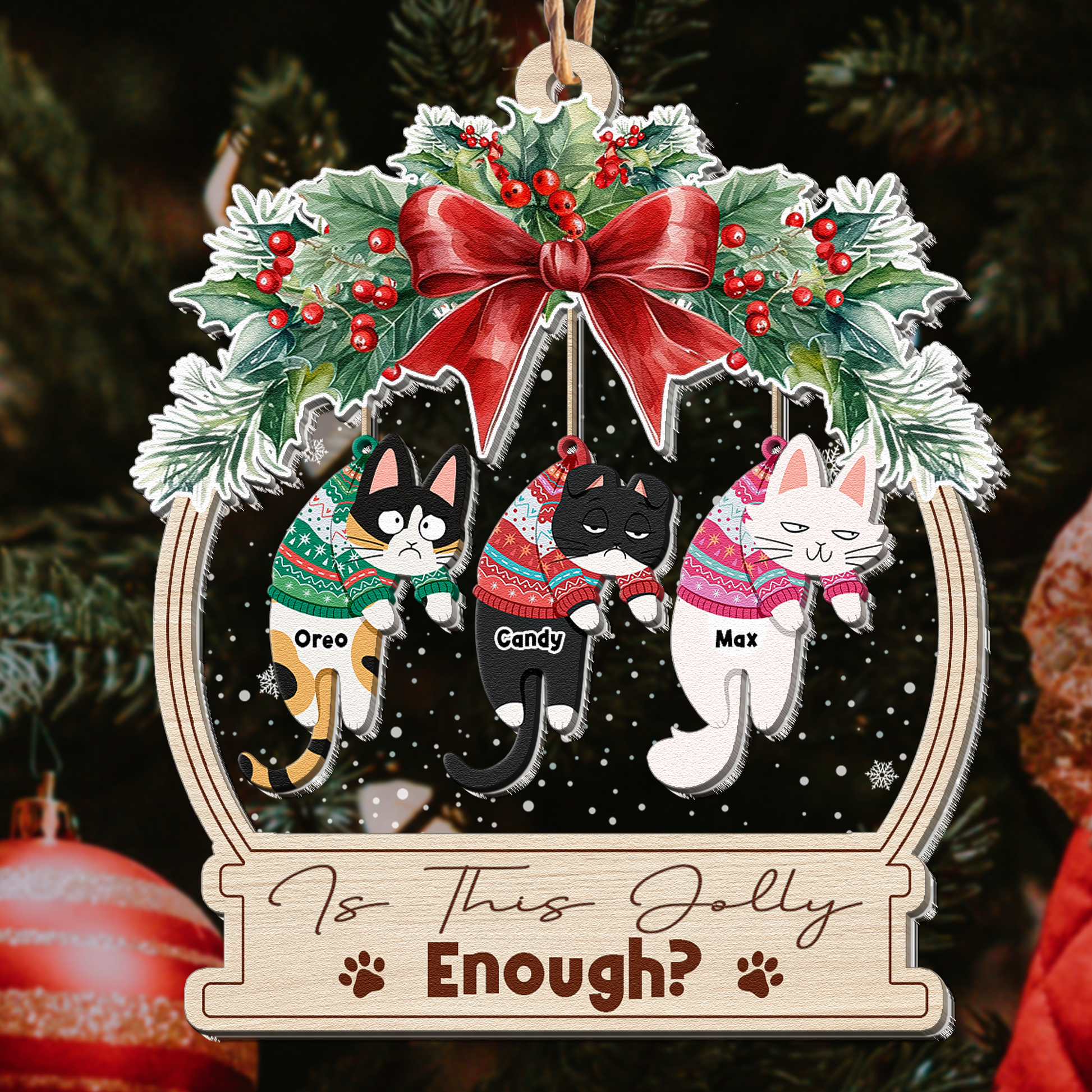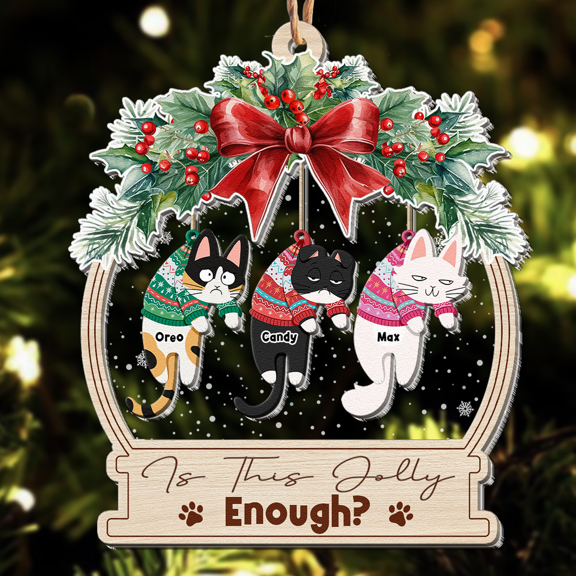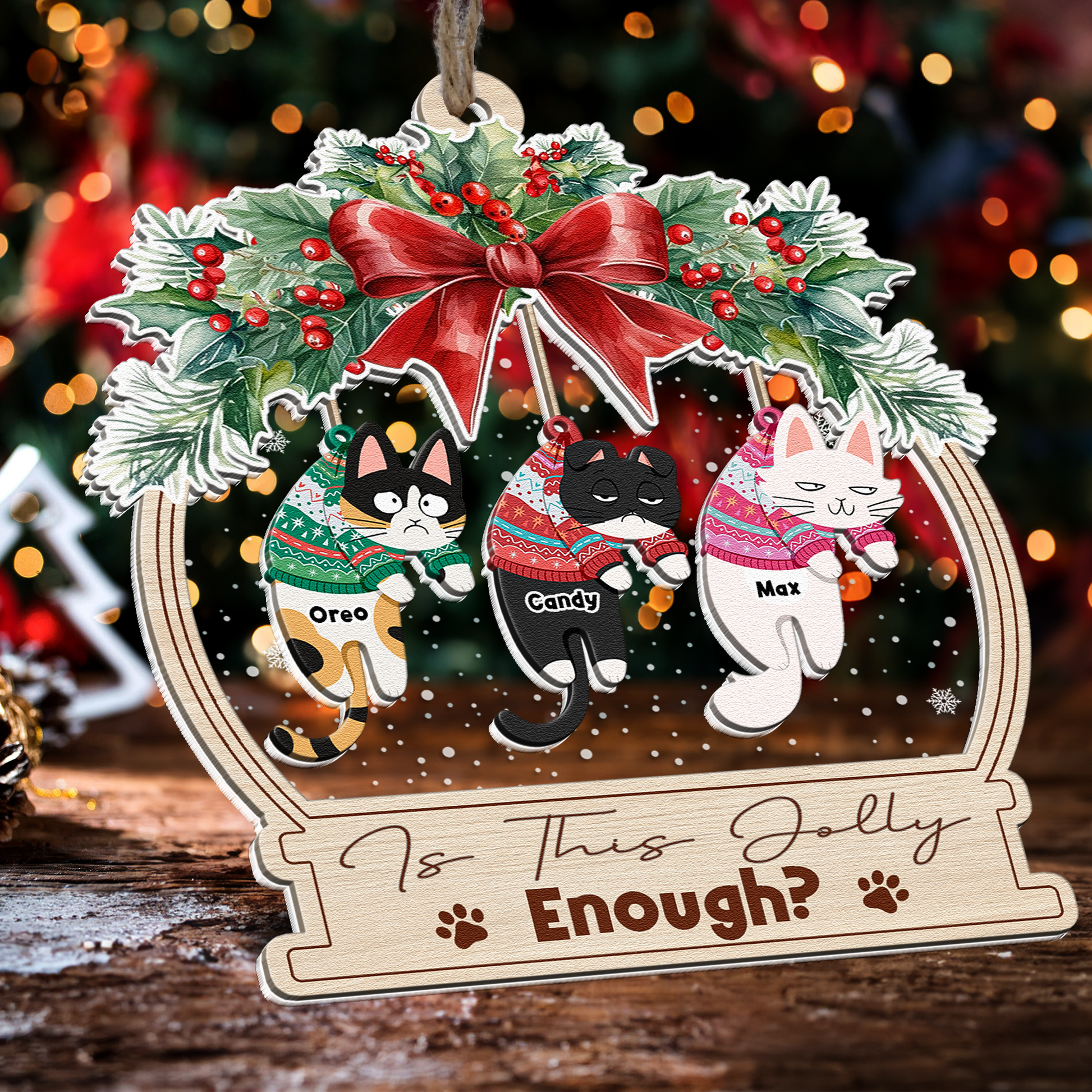 Is This Jolly Enough Funny Hanging Cat - Personalized Wood And Acrylic Ornament