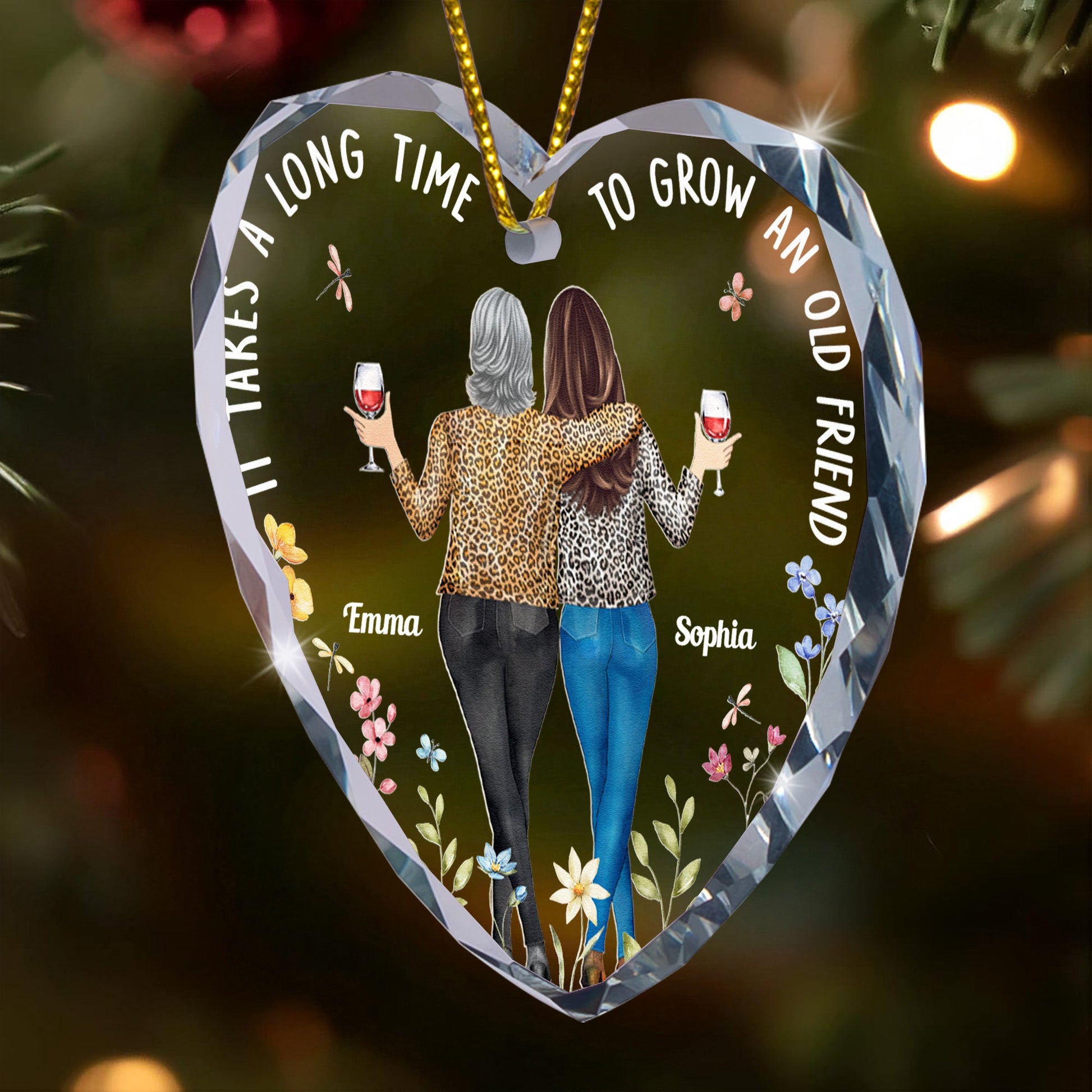Capture the essence of a long-lasting friendship with our It Takes A Long Time To Grow An Old Friend - Personalized Heart Glass Ornament. This unique piece is a perfect representation of shared histories, bonds, and loved moments. It brings alive the endless journey of true friendship, asserting that growing old with a friend is truly a timeless experience. This Heart Glass Ornament, personalized to your liking, is perfect for any occasion, but particularly poignant for Christmas and birthdays.