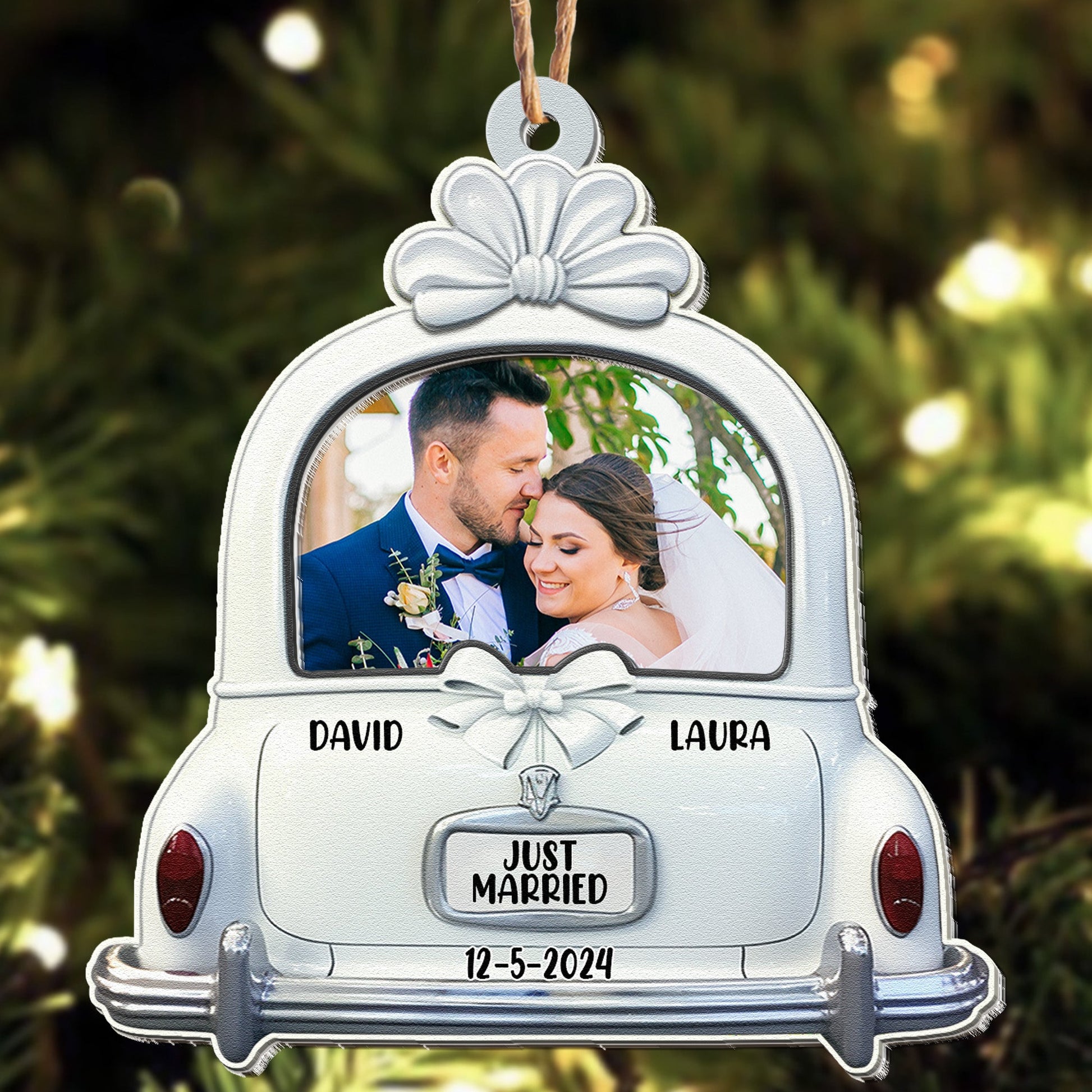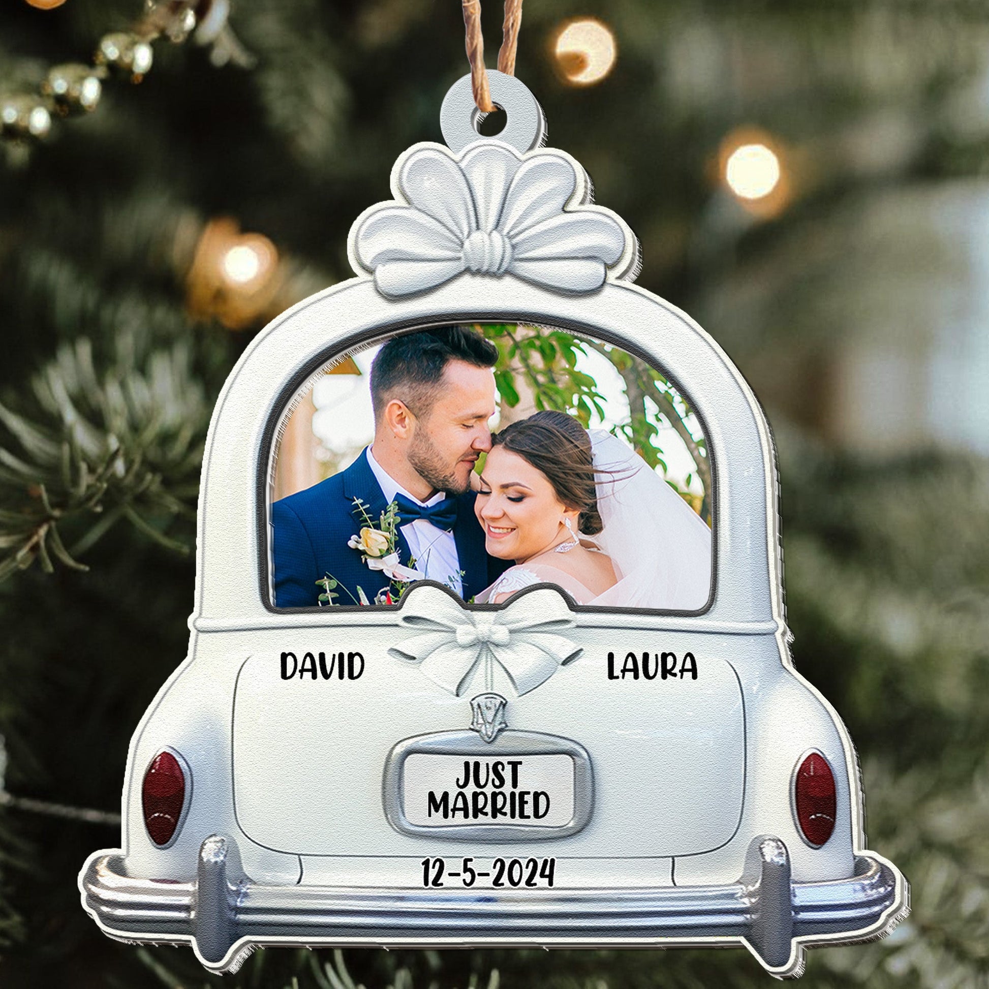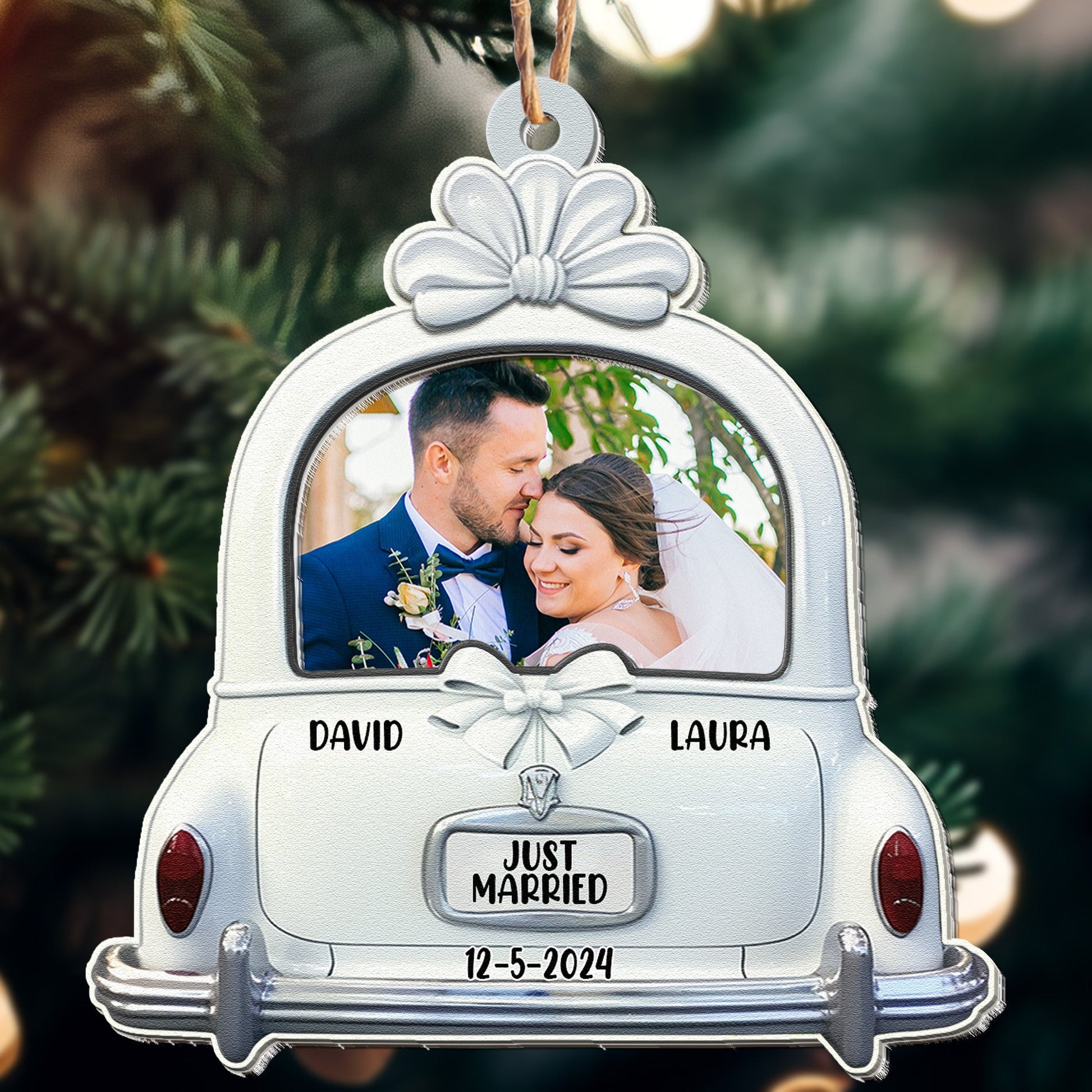 Just Married - Personalized Wood And Acrylic Photo Ornament