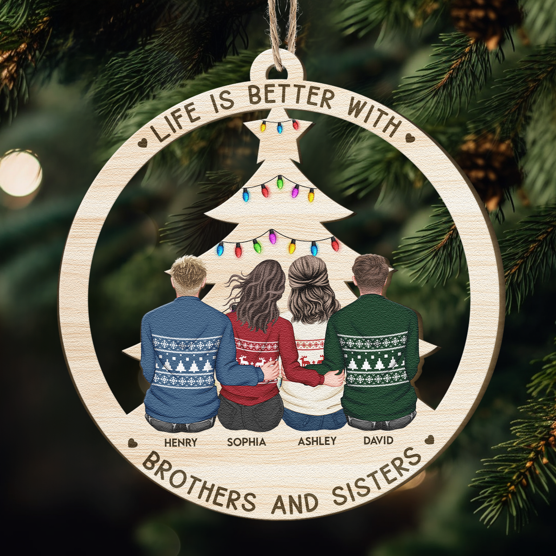 Life Is Better With Brothers & Sisters - New Version - Personalized Wooden Ornament