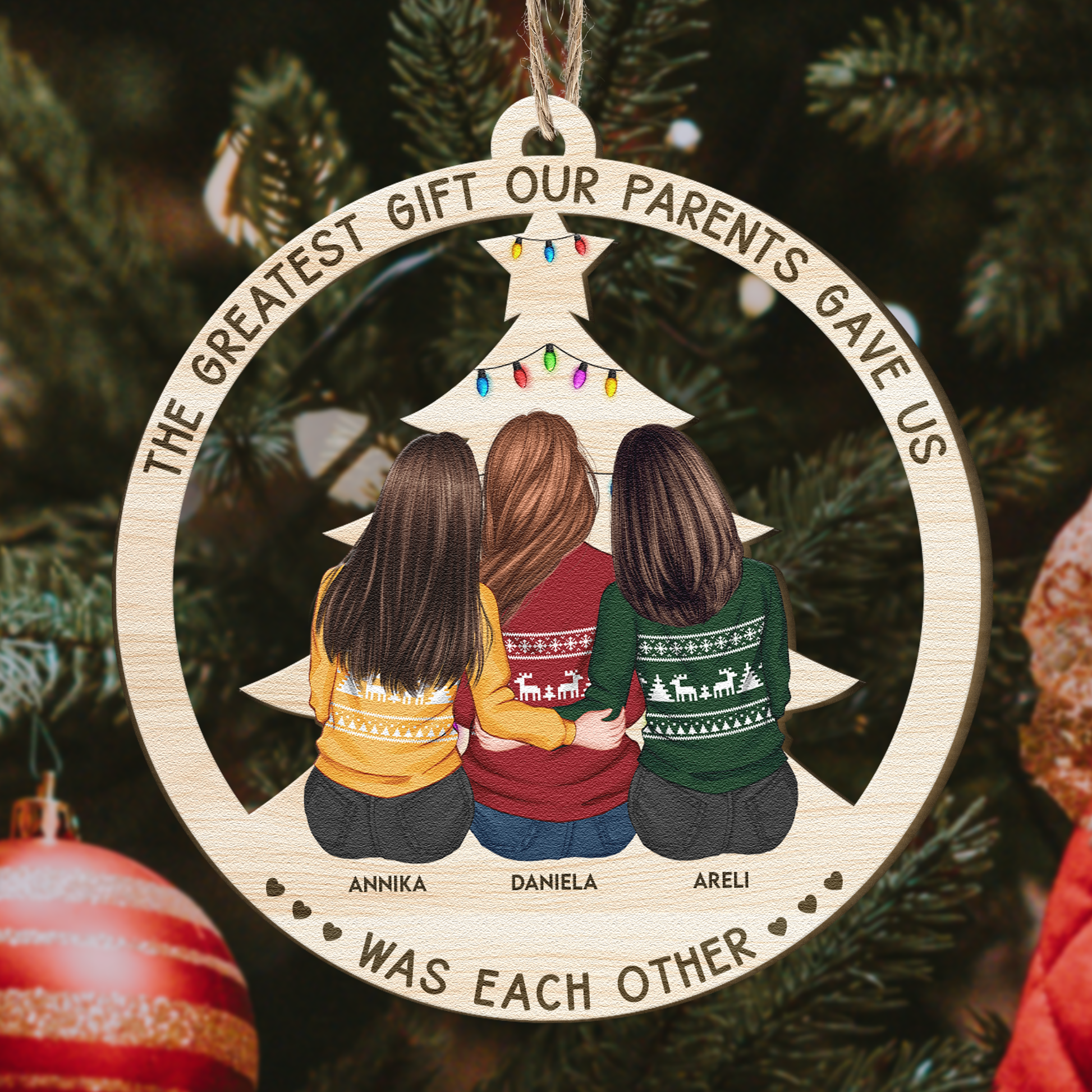 Celebrate your loved ones and new beginnings with a special Christmas custom ornament featuring your family's names. Our ornaments can be personalized with the first names of each family member, making it a treasured keepsake.