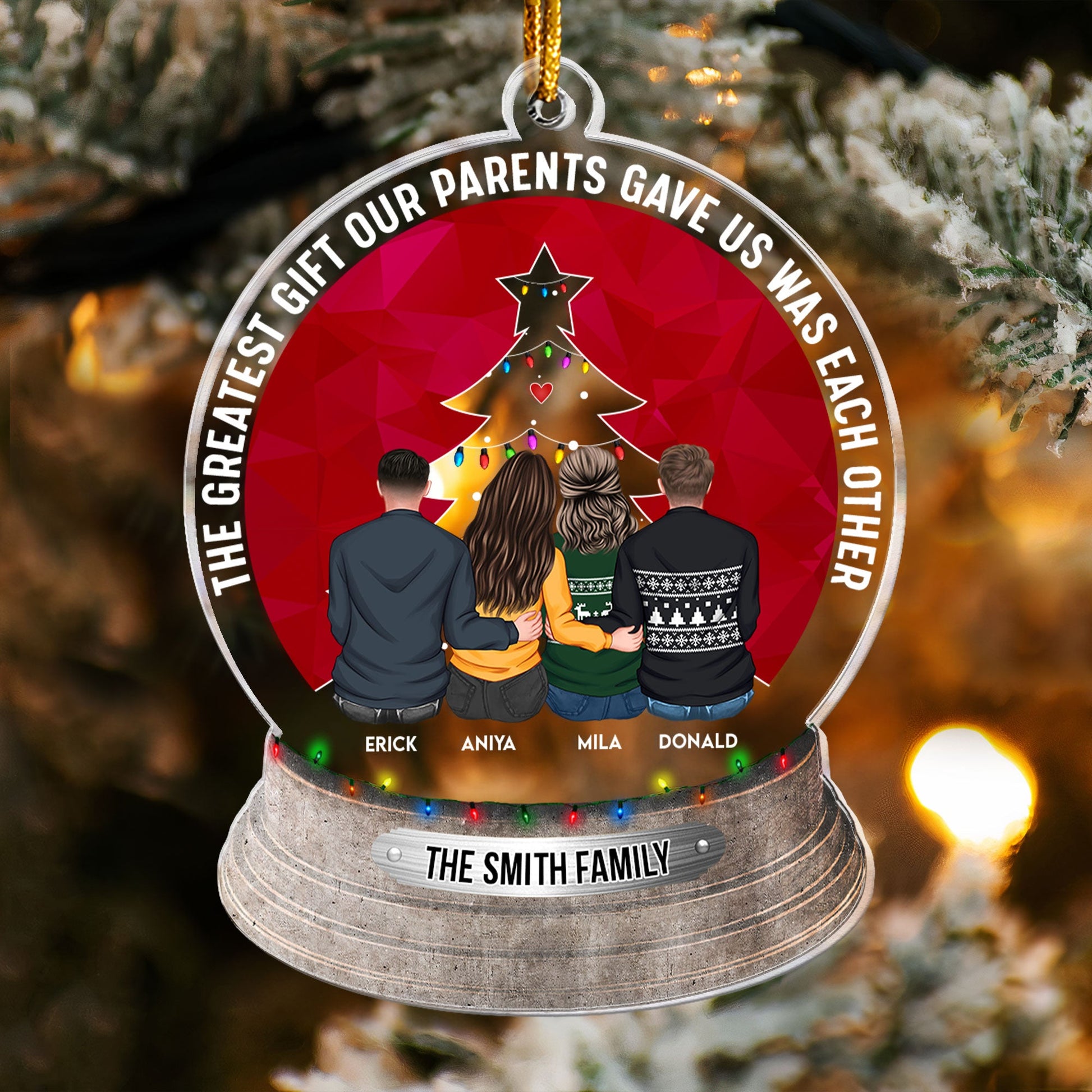 Parents will adore watching their kids eagerly find their names on the Christmas tree. Grandparents will beam seeing all their grandchildren's names displayed together. Newlyweds will cherish the first appearance of their new shared surname. This thoughtful gift also commemorates new chapters. Surprise a couple with an ornament printed with their family name to mark their first Christmas in their new dream home. Our personalized ornaments help families celebrate their ever-evolving relationships and new beginnings for years to come.