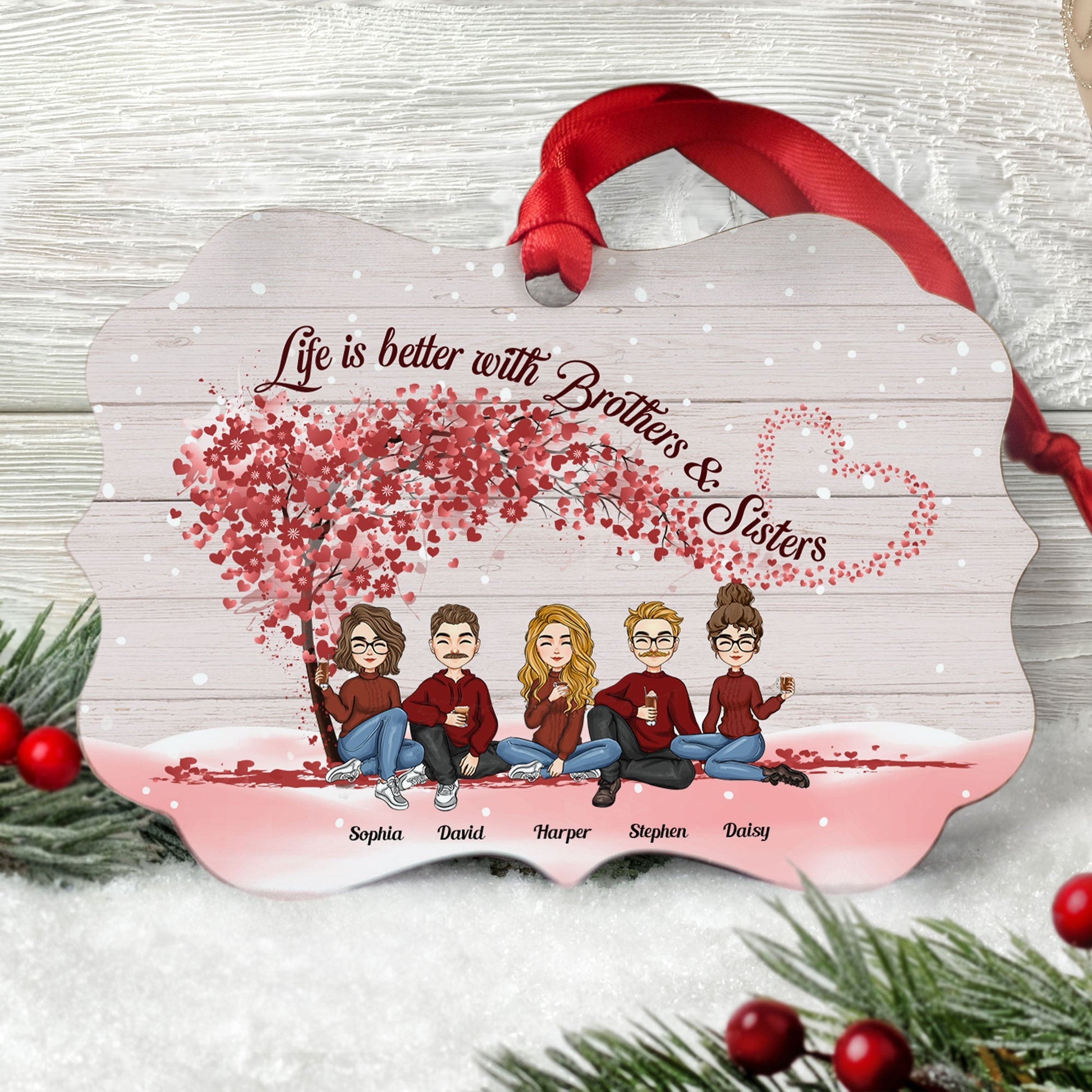 Life Is Better With Brothers & Sisters - Personalized Aluminum/ Wooden Ornament - Christmas, New Year Gift For Family, Sisters, Brothers, Sibling