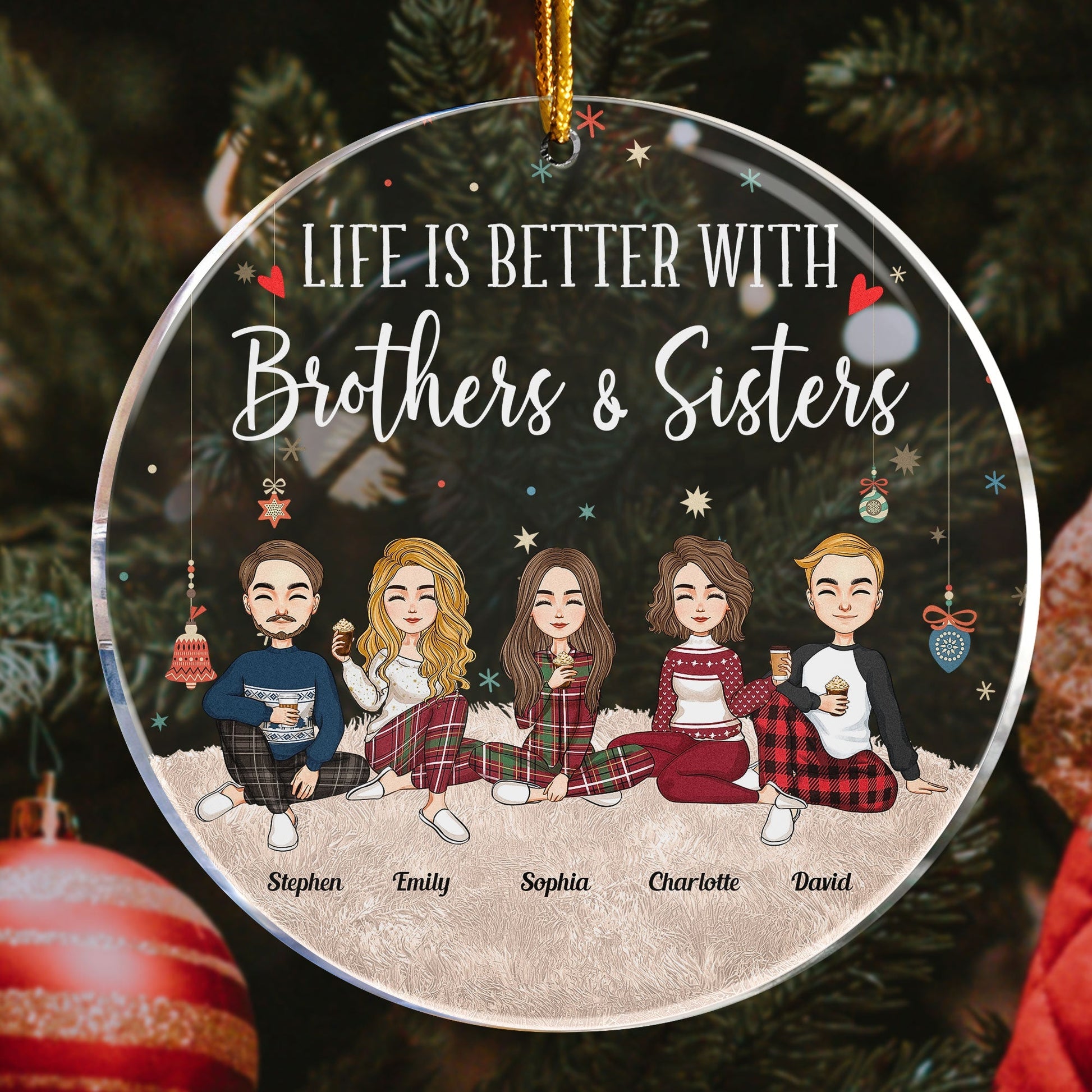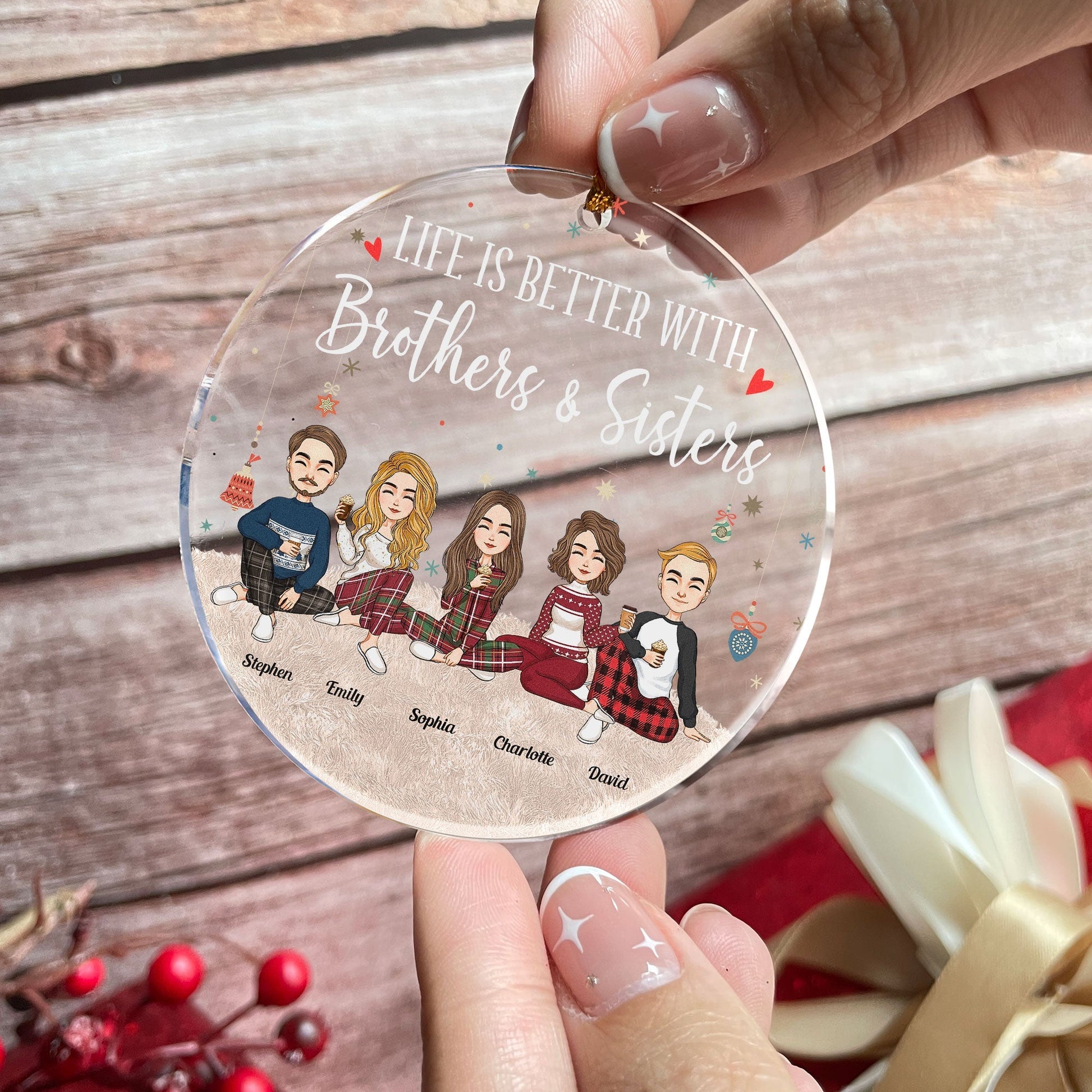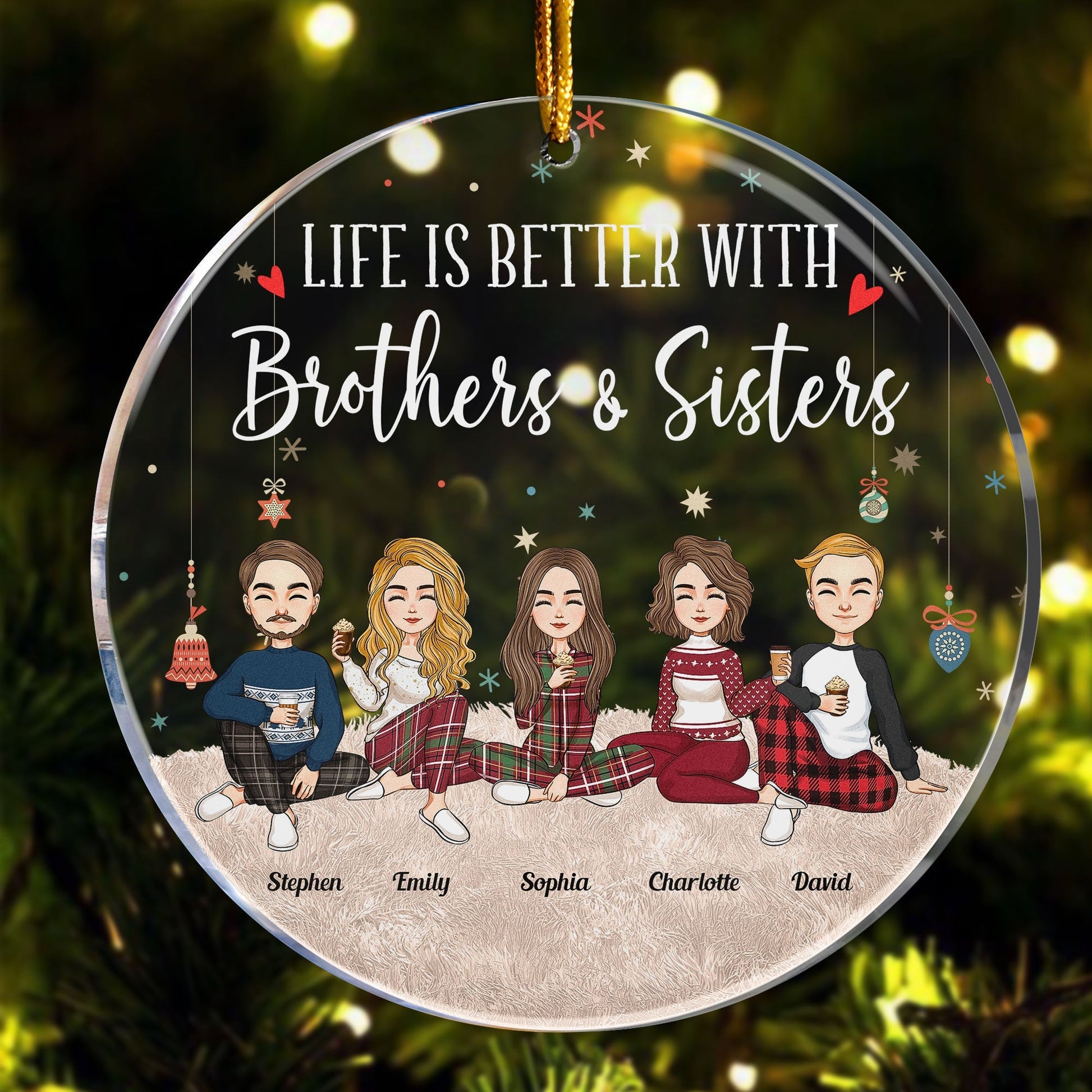 Life Is Better With Brothers & Sisters - Personalized Circle Acrylic Ornament - Christmas, New Year Gift For Family, Sisters, Brothers, Siblings