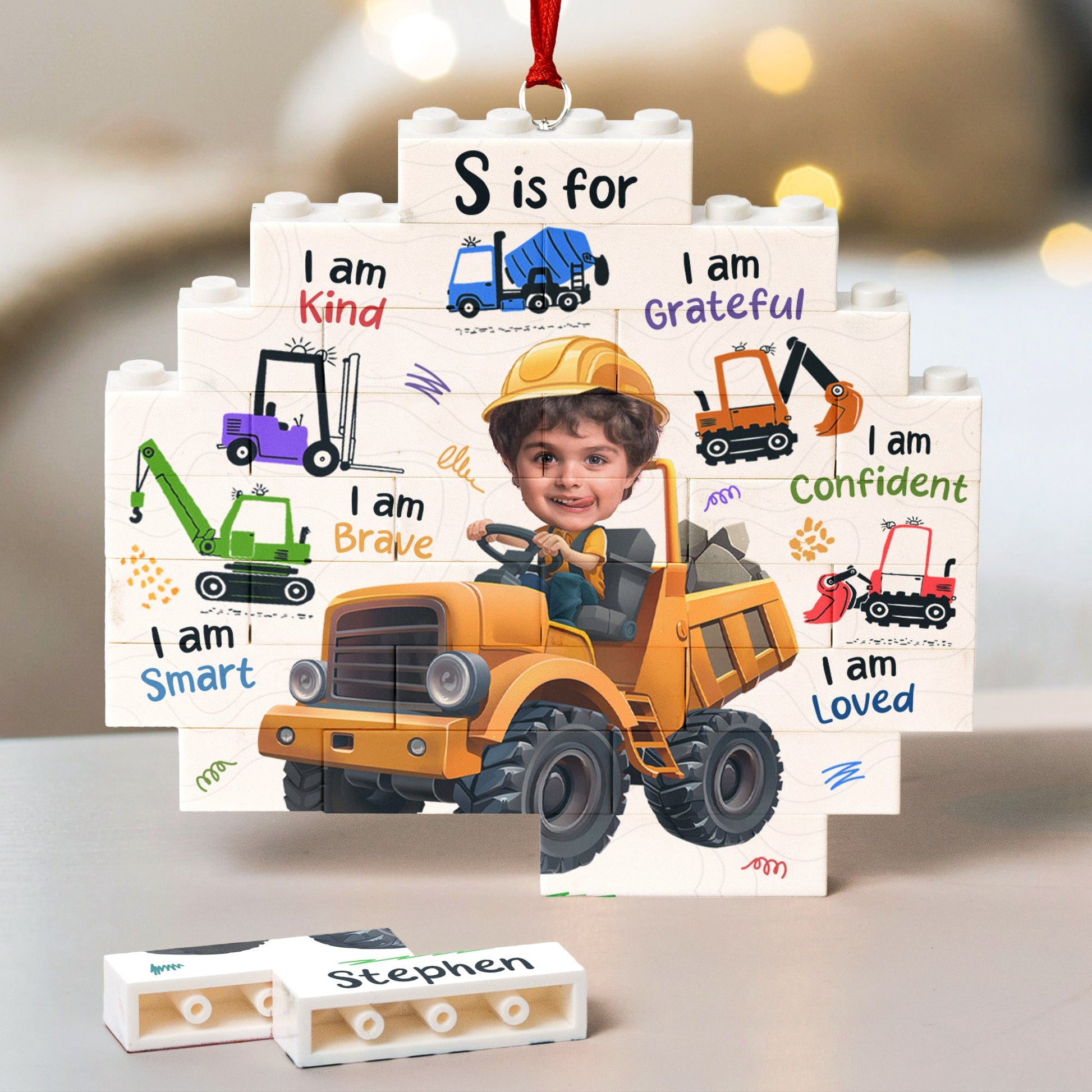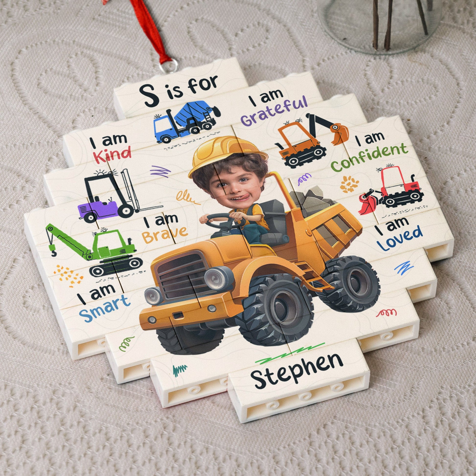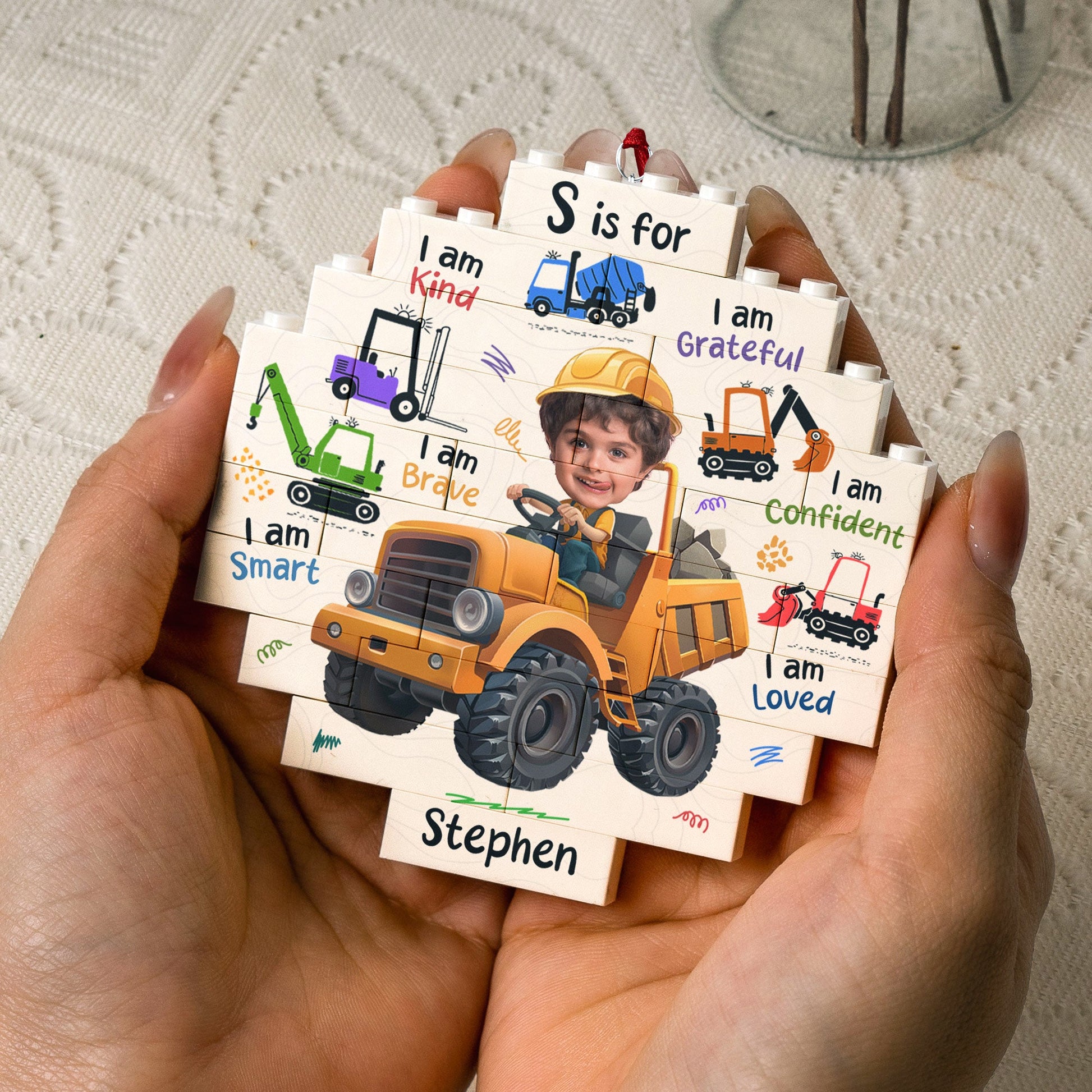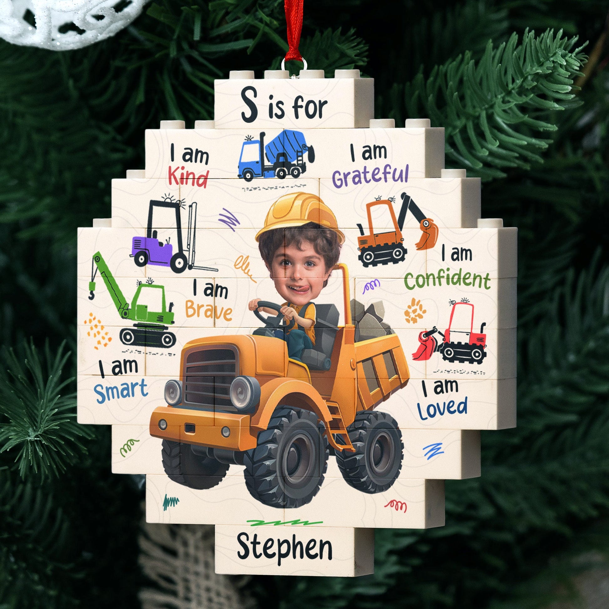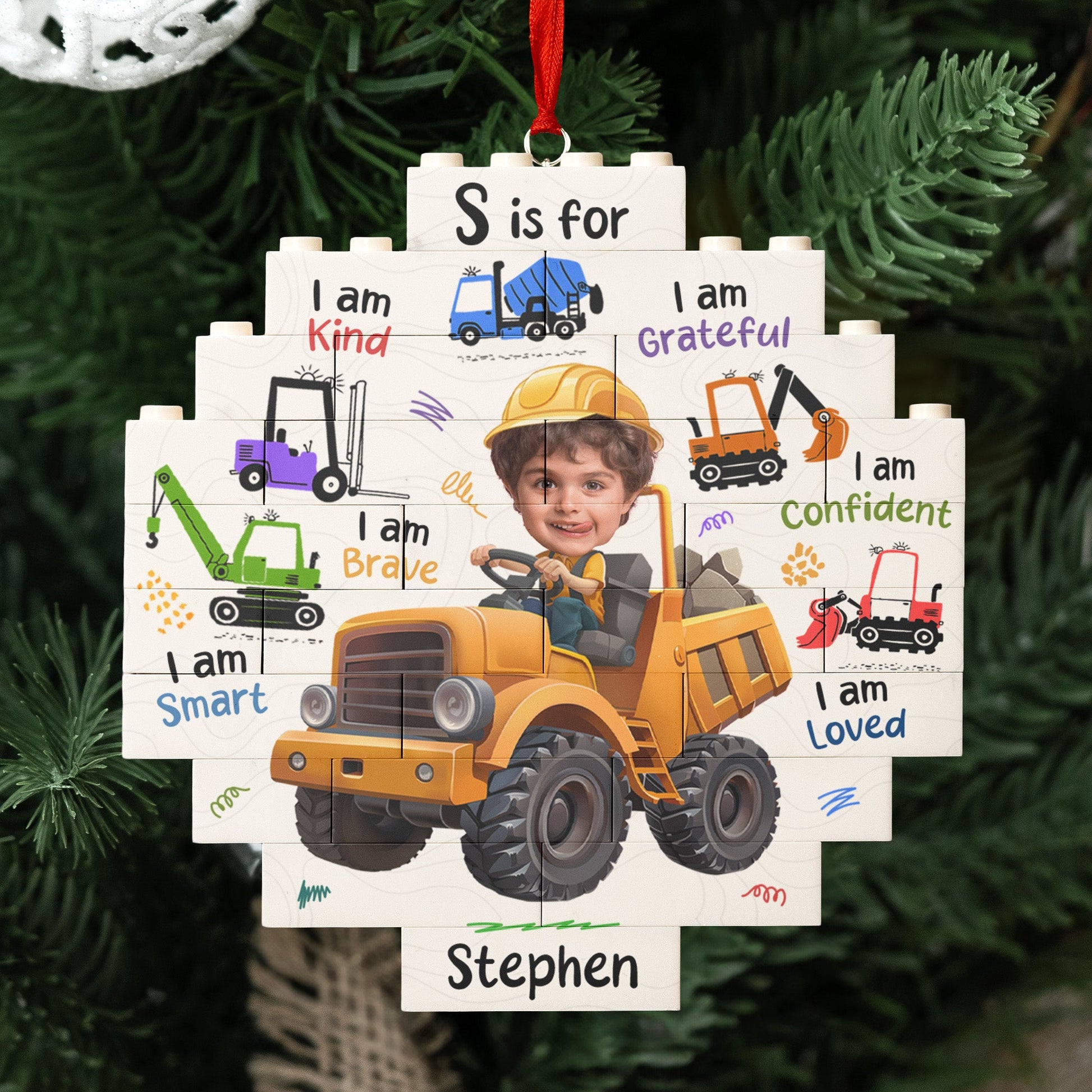 Little Kid Boy, Girl - Dream Job Contruction Truck - Custom Buildable Christmas Photo Ornament