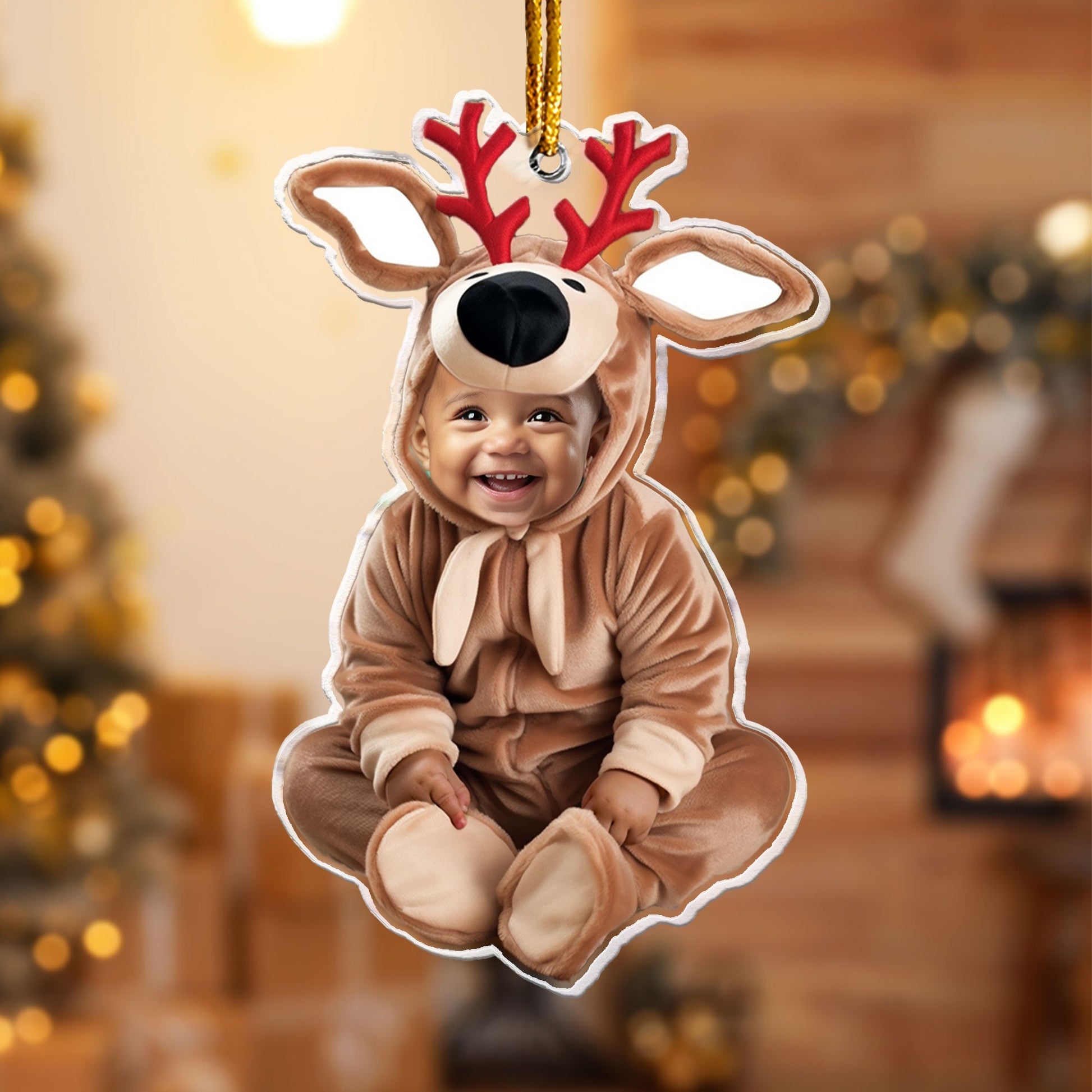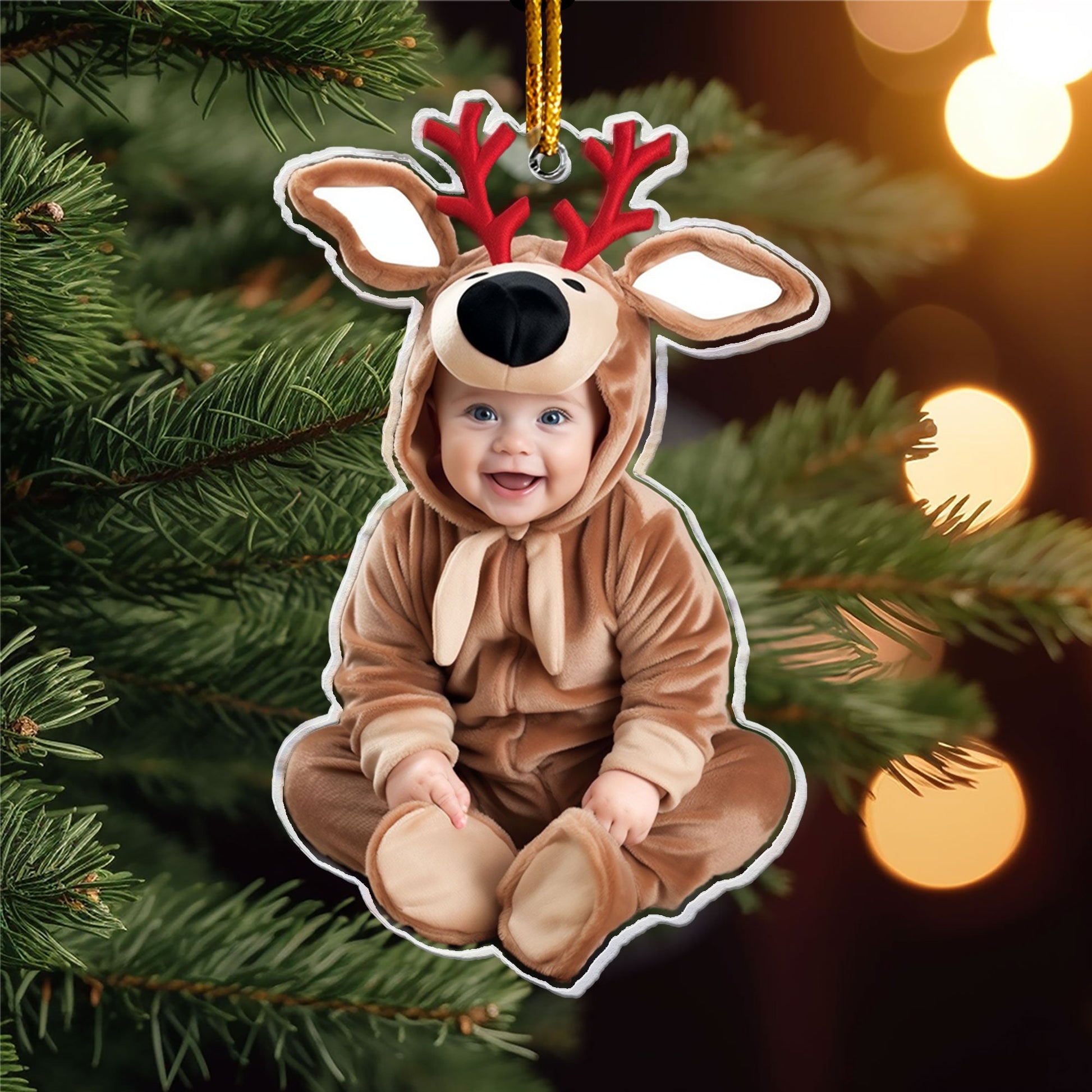 Little Reindeer Baby - Personalized Babys Photo First Christmas Ornament