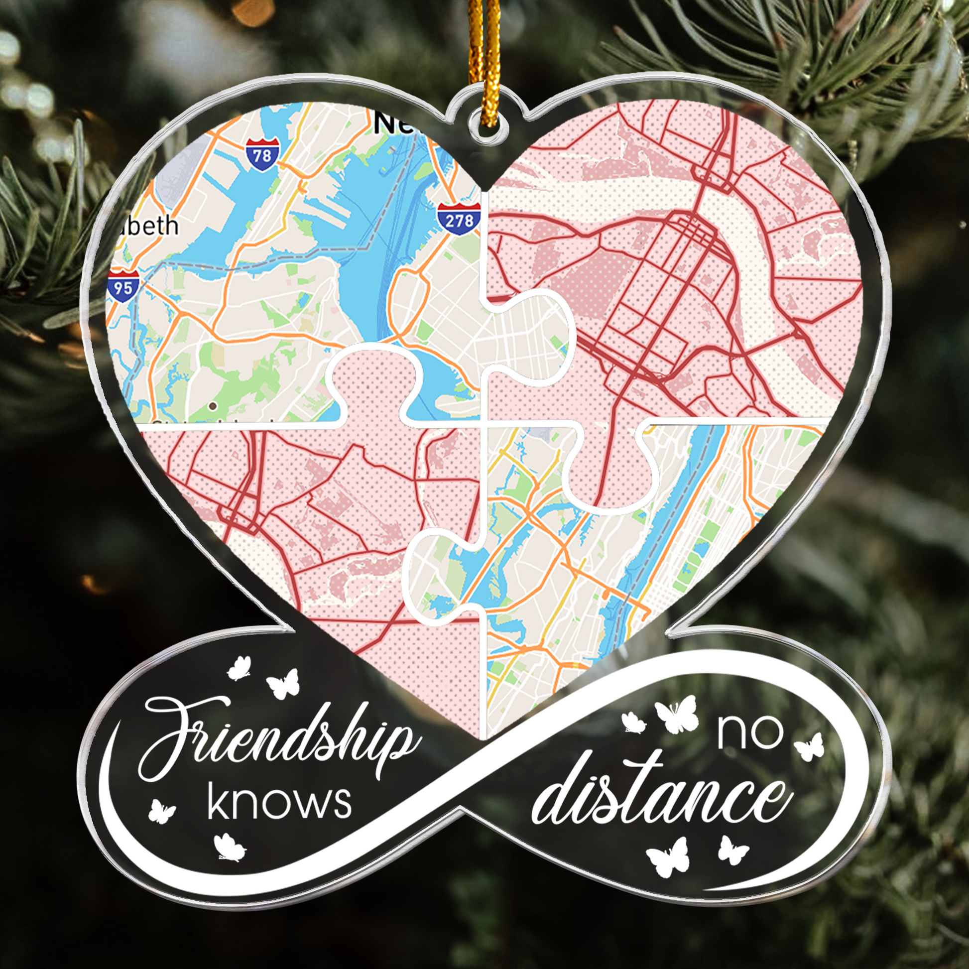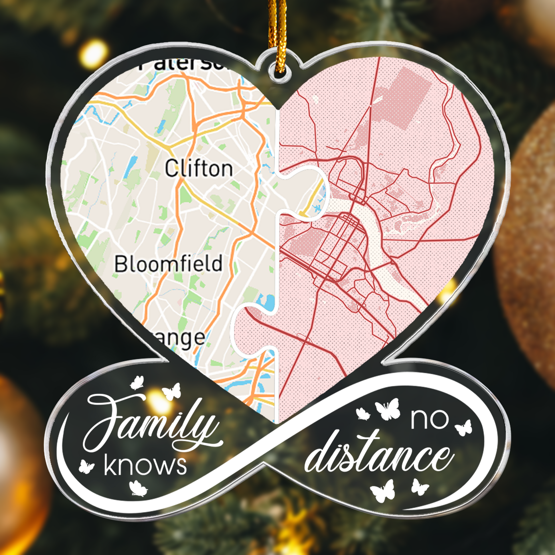 Long Distance Gifts For Family, Friends, Couples - Custom Maps - Personalized Acrylic Ornament