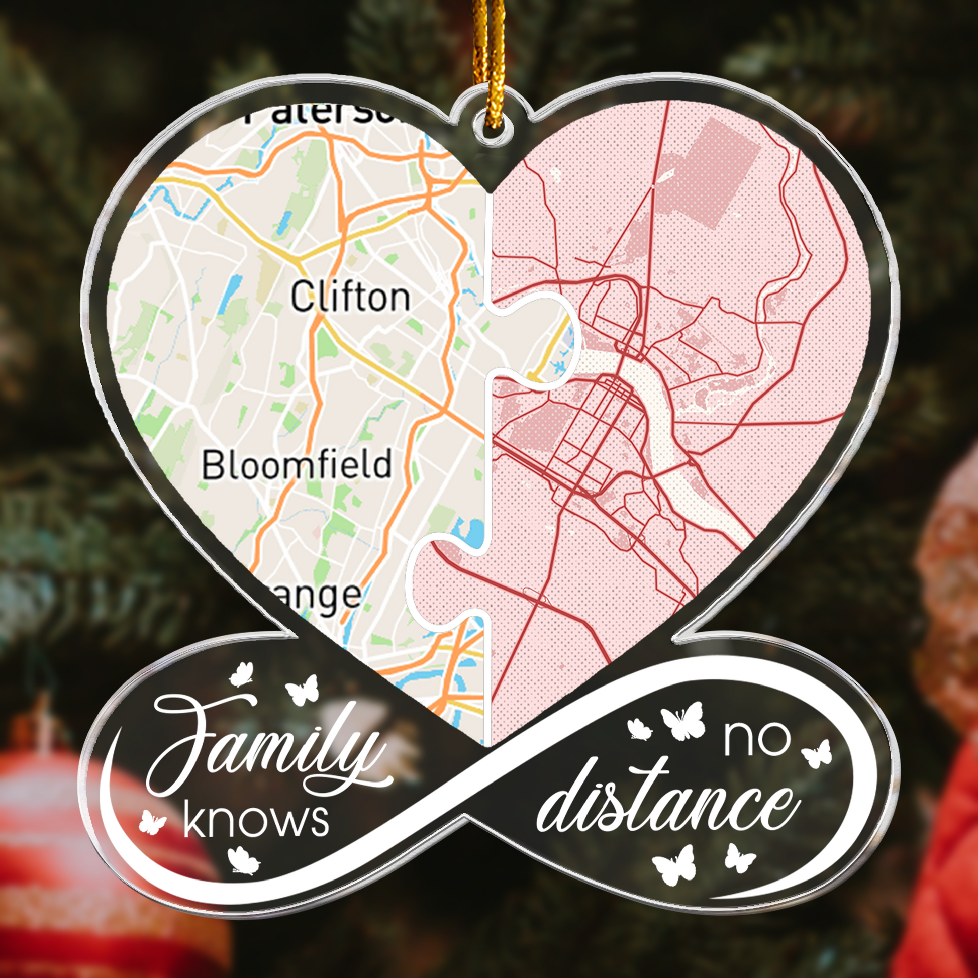 Celebrate the bonds that defy distance with our Custom Multi Print Map Personalized Acrylic Ornament. This unique piece captures the essence of your relationships, showcasing custom maps from country to country or state to state. Perfect for long-distance families, friends, and couples, it serves as a heartfelt reminder that distance means so little when someone means so much. This ornament makes an ideal gift for Christmas, Thanksgiving, or any special occasion, allowing you to express your love and appreciation for your besties or loved ones separated by miles. A thoughtful keepsake that connects hearts across distances!