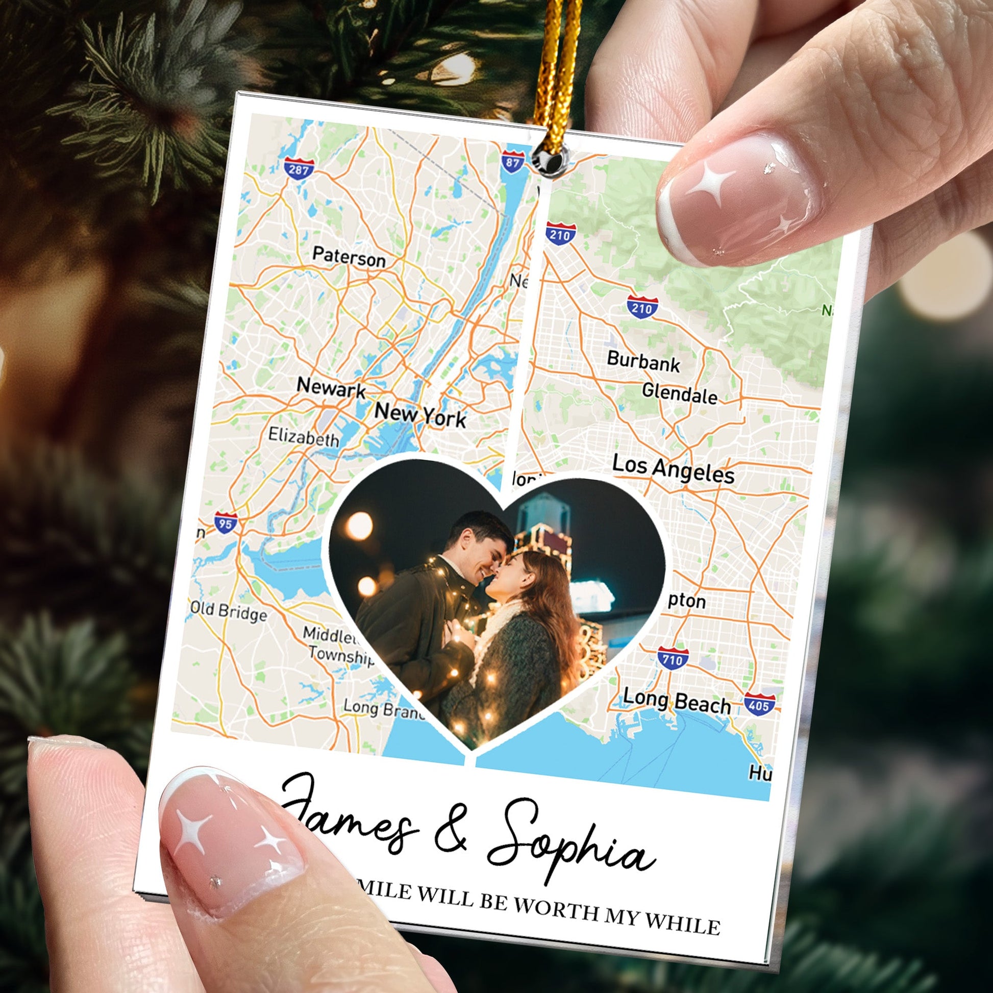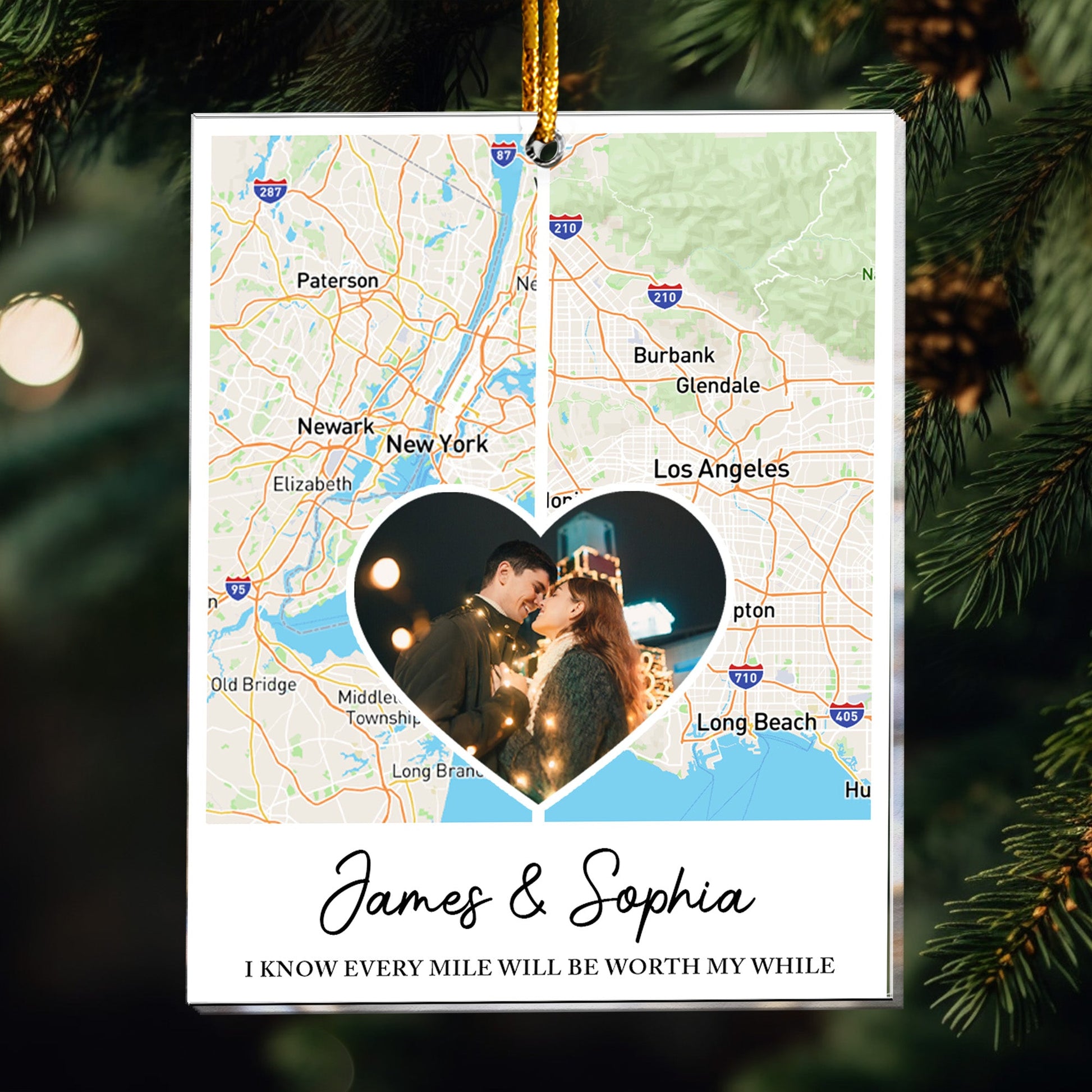 Celebrate the bonds that defy distance with our Custom Multi Print Map Personalized Acrylic Ornament. This unique piece captures the essence of your relationships, showcasing custom maps from country to country or state to state. Perfect for long-distance families, friends, and couples, it serves as a heartfelt reminder that distance means so little when someone means so much. This ornament makes an ideal gift for Christmas, Thanksgiving, or any special occasion, allowing you to express your love and appreciation for your besties or loved ones separated by miles. A thoughtful keepsake that connects hearts across distances!