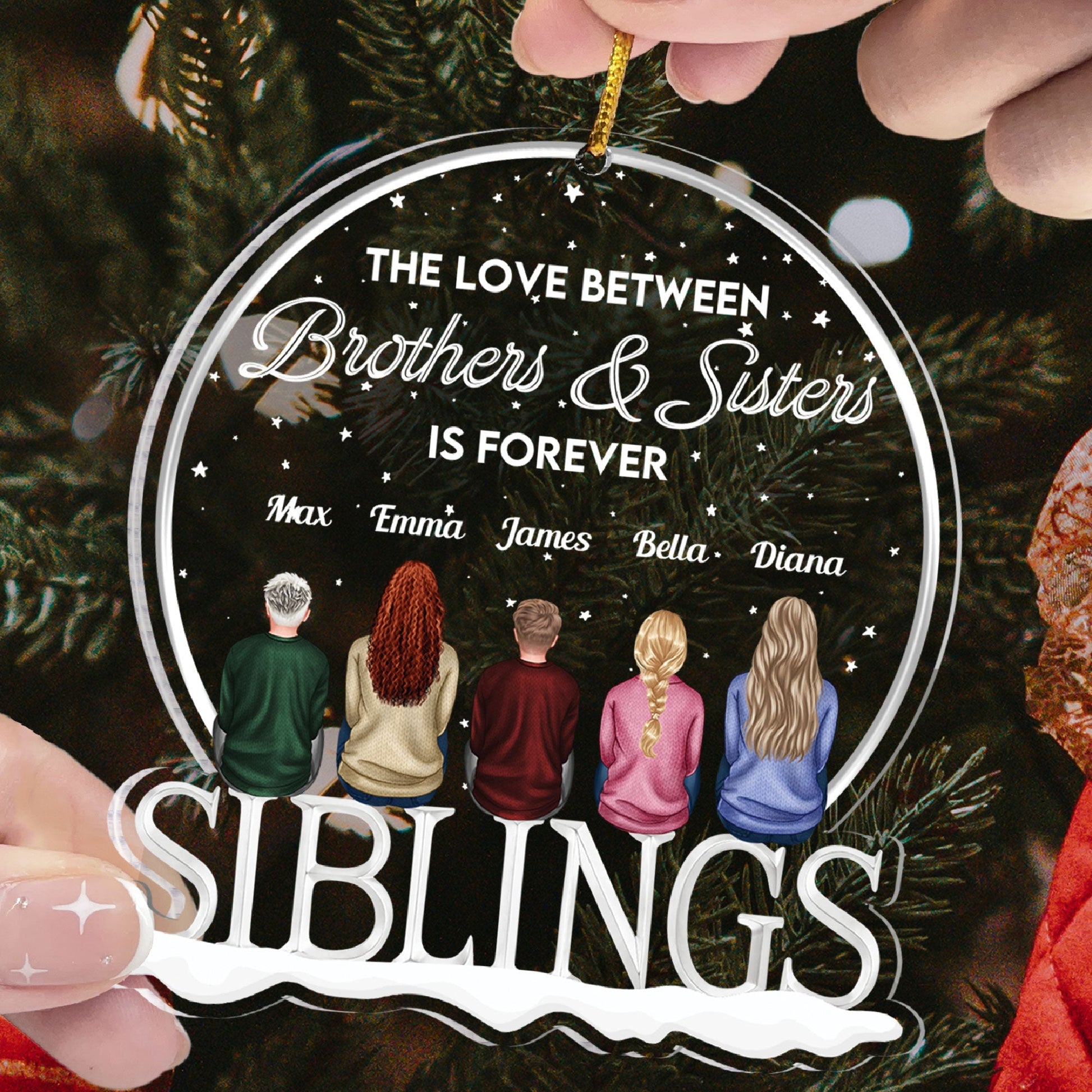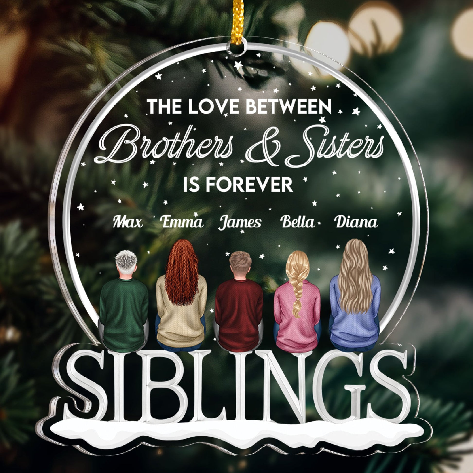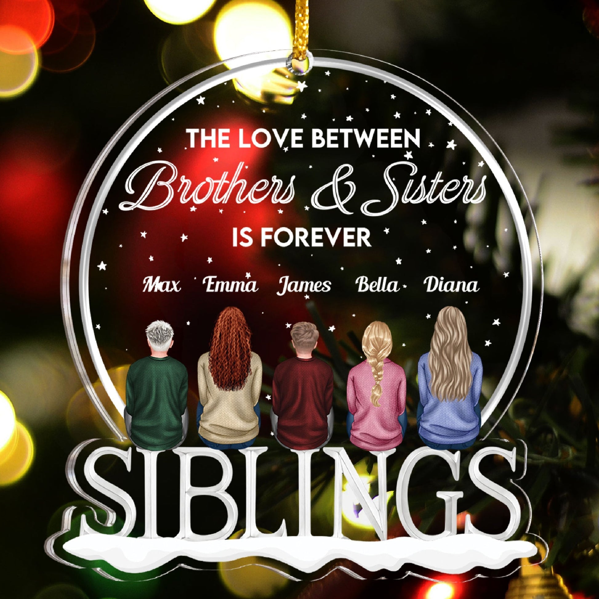 This personalized custom shaped acrylic ornament is the ultimate gift for siblings who are forever.