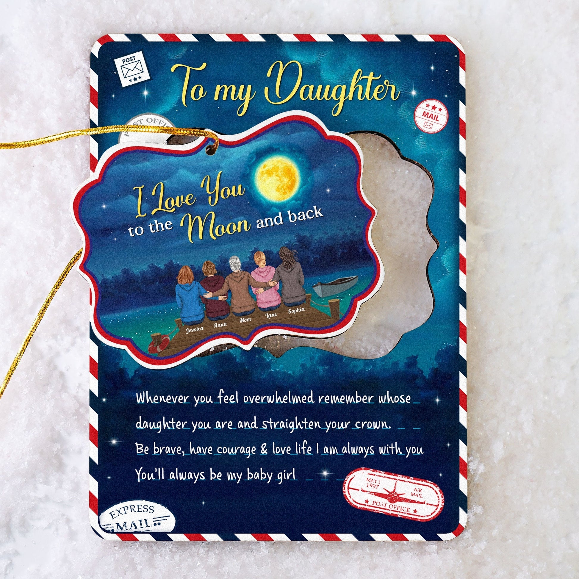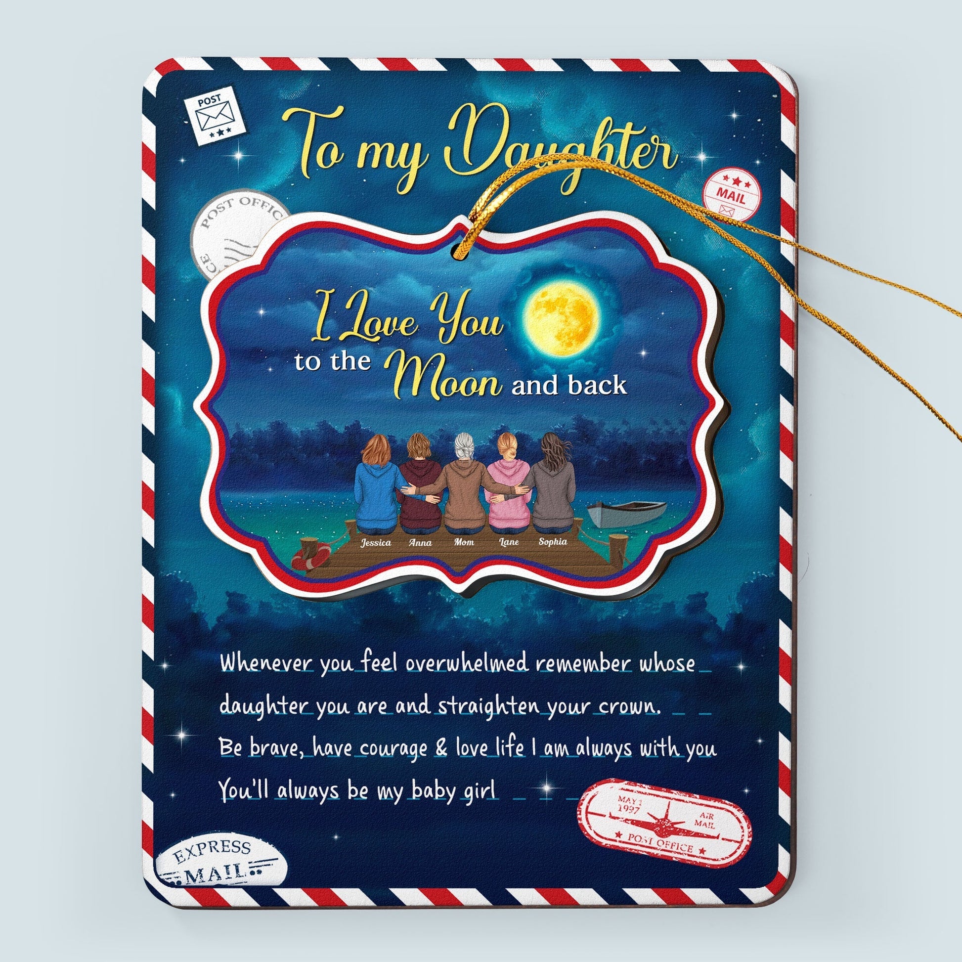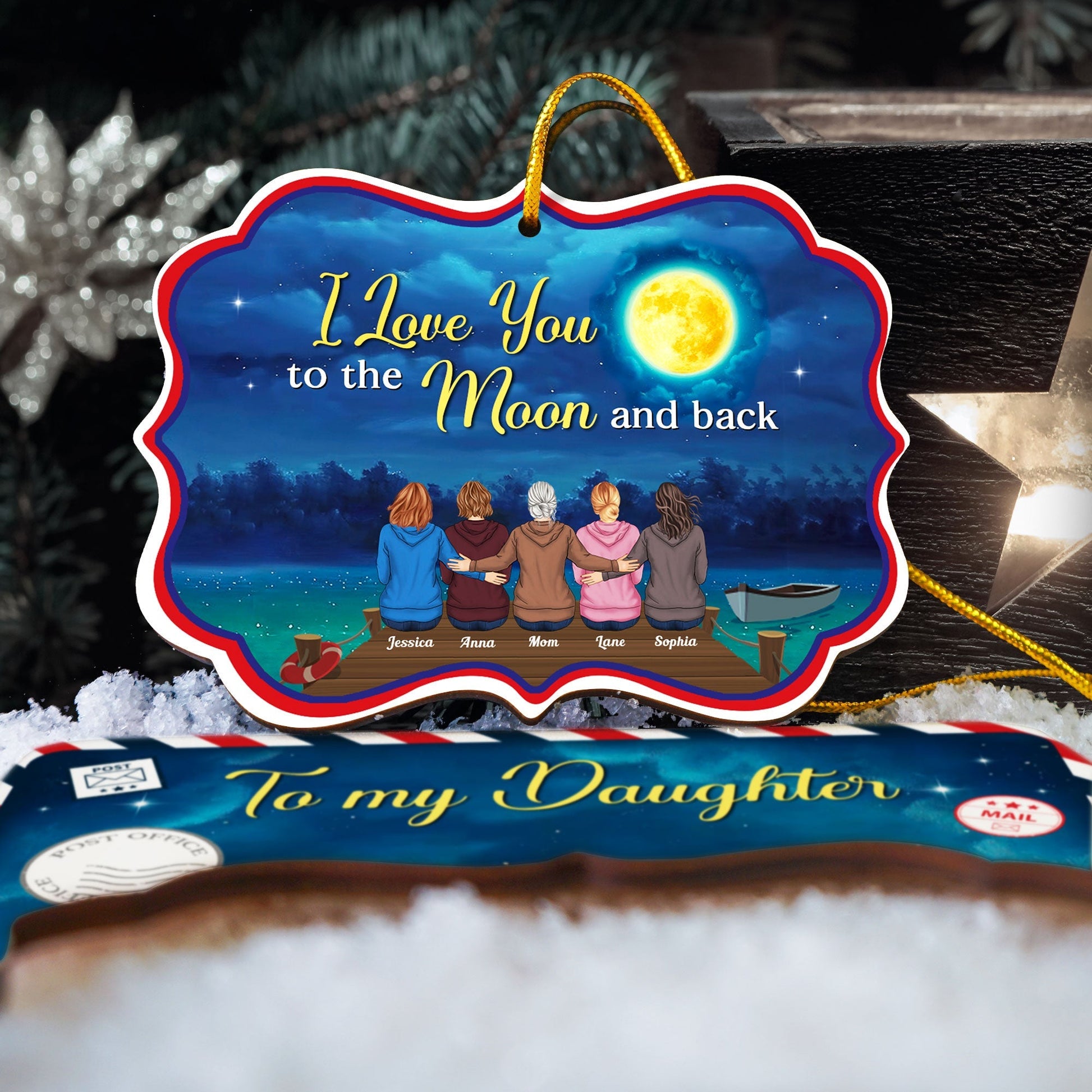 Love You To The Moon And Back - Personalized Christmas Wooden Card With Pop Our Ornament - Christmas Gift For Daughters, Sons