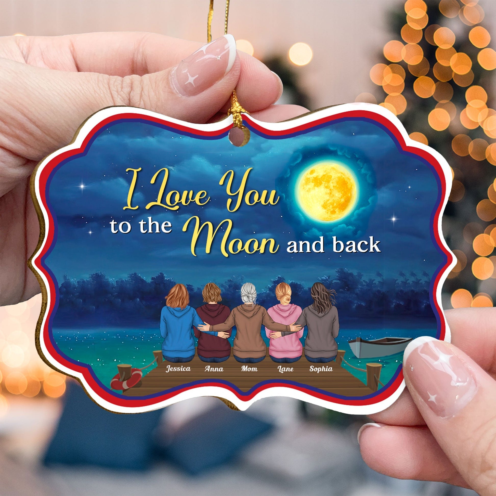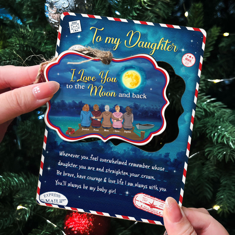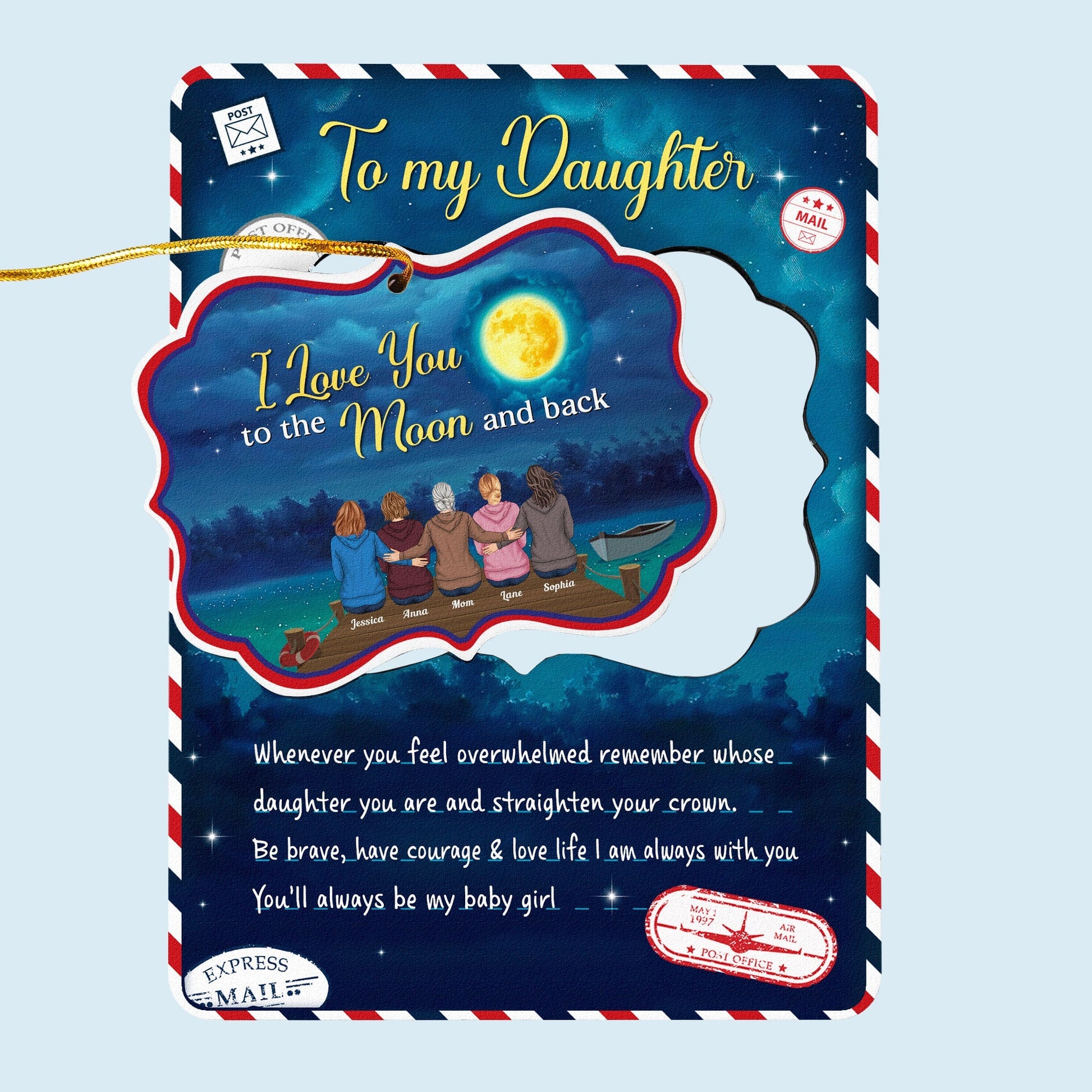 Love You To The Moon And Back - Personalized Christmas Wooden Card With Pop Our Ornament - Christmas Gift For Daughters, Sons