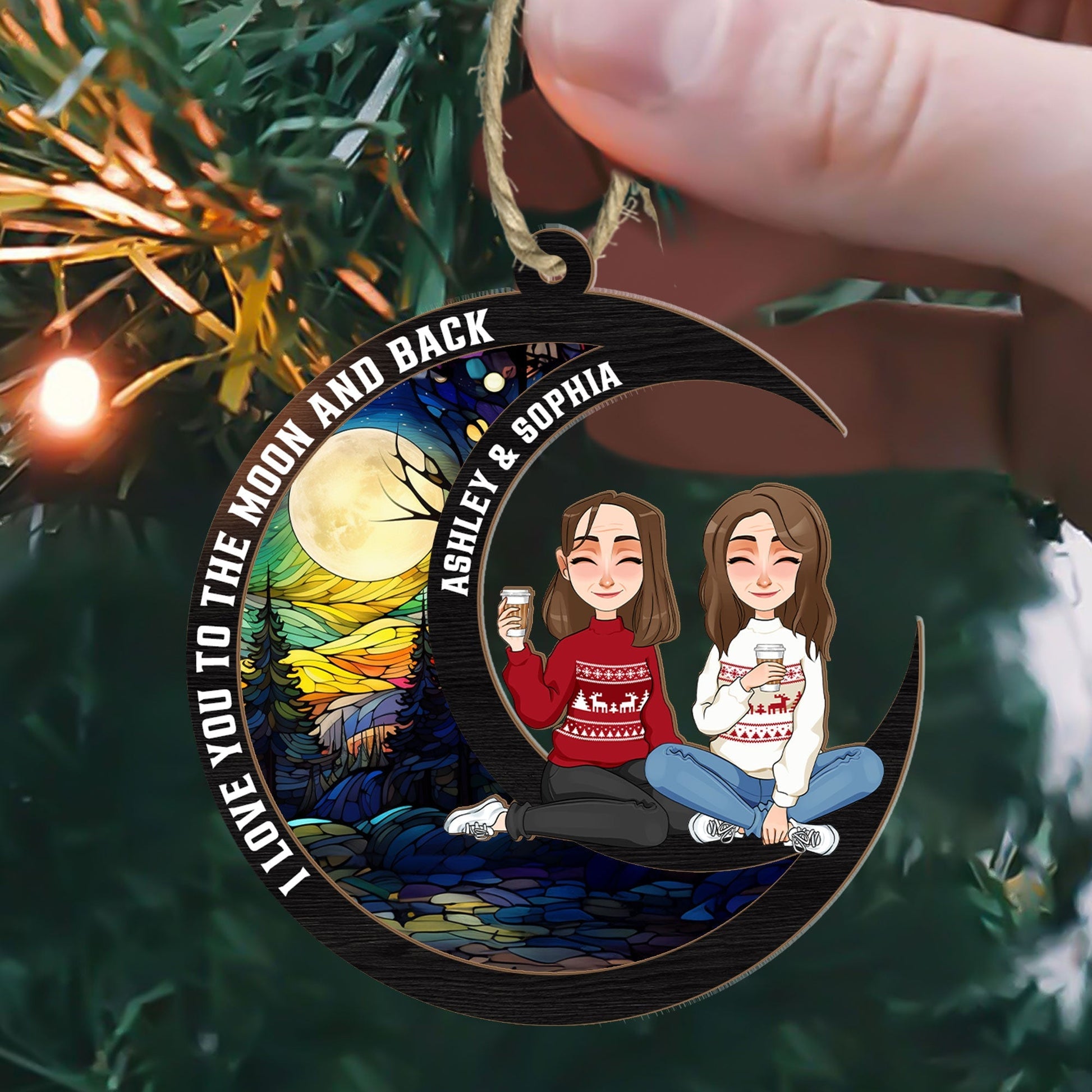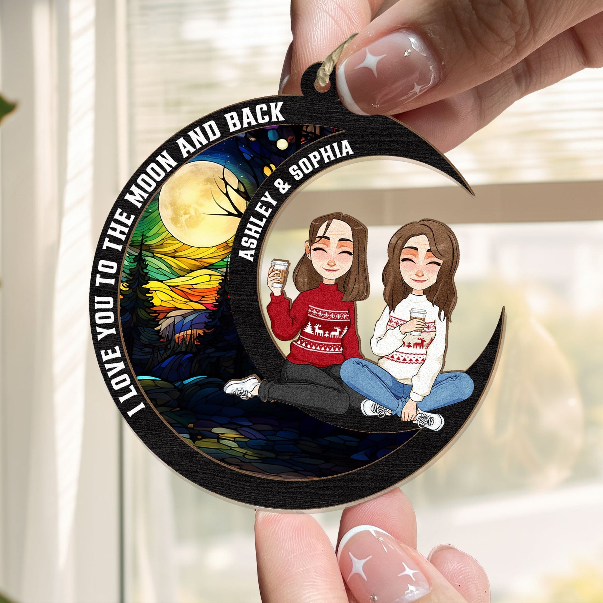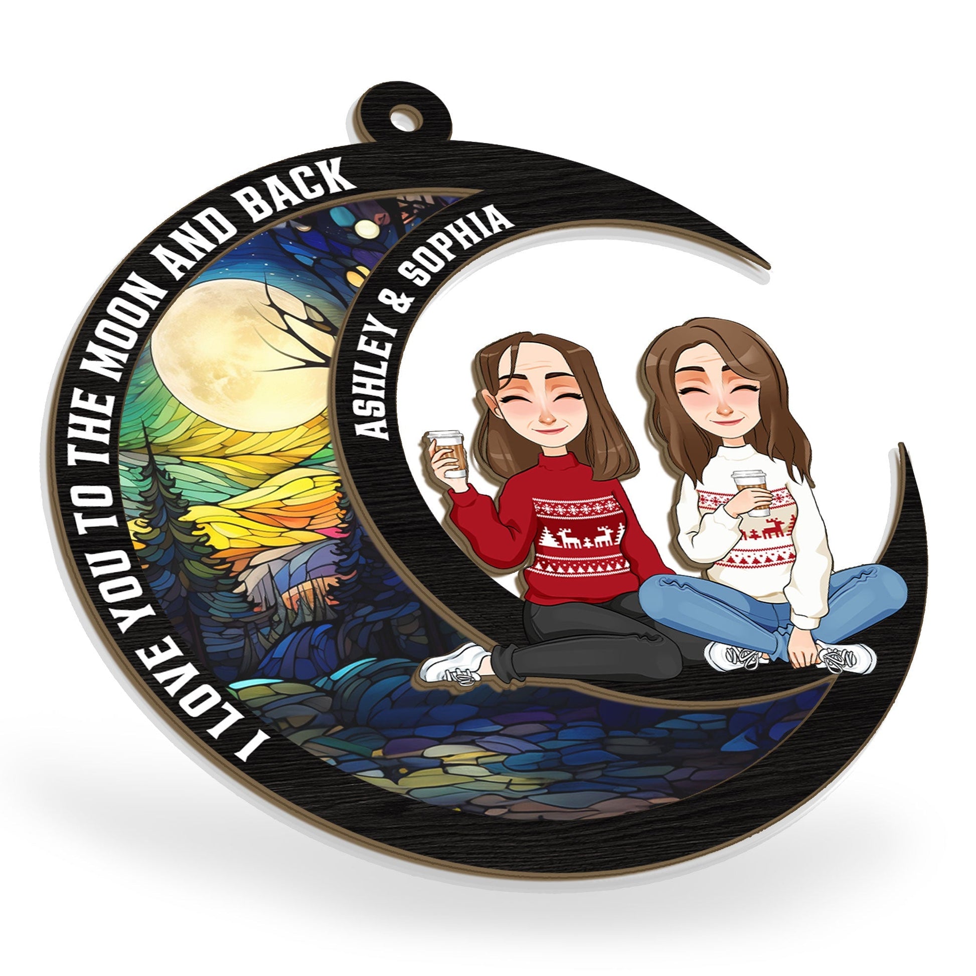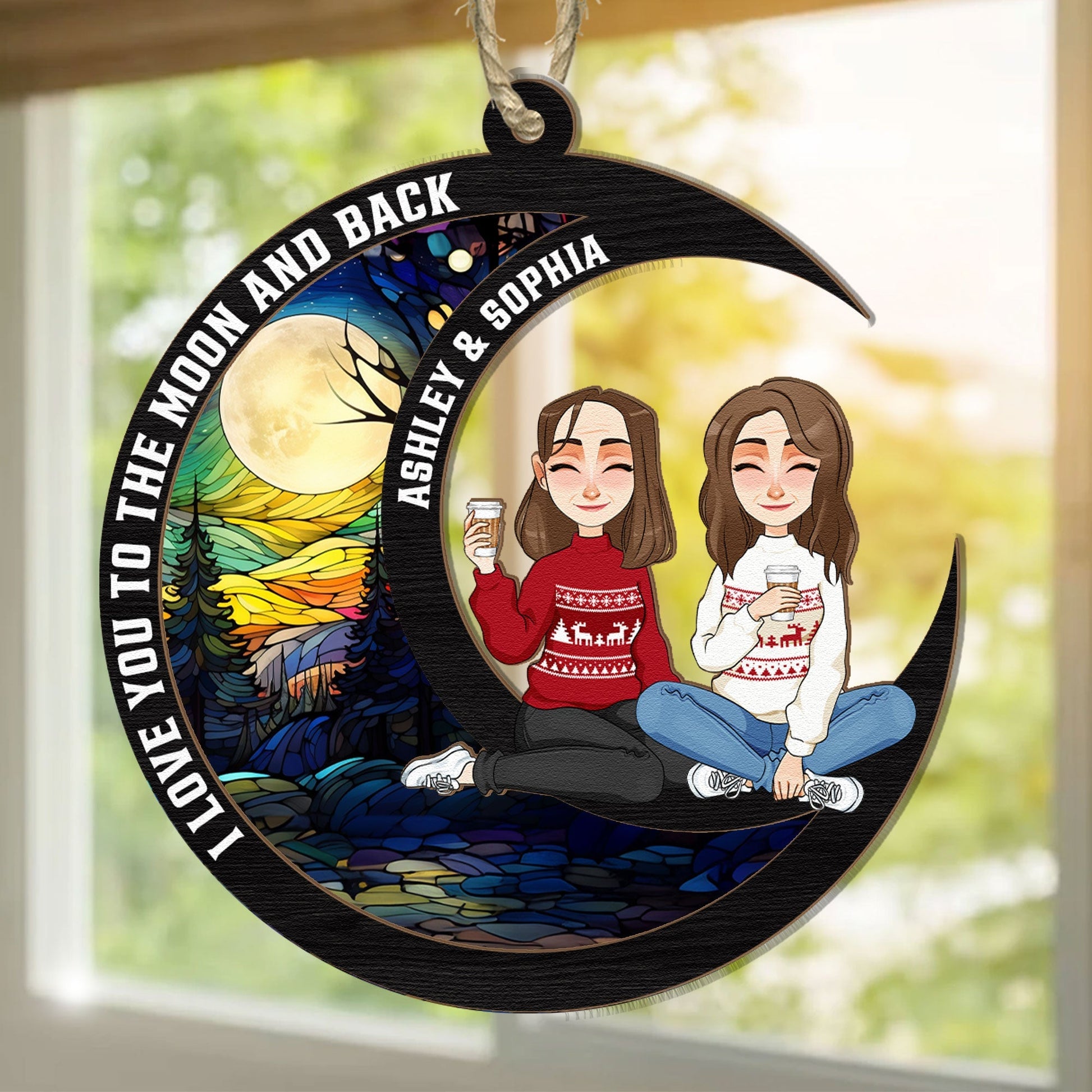 Love You To The Moon & Back - Sibling Version - Personalized Suncatcher Ornament