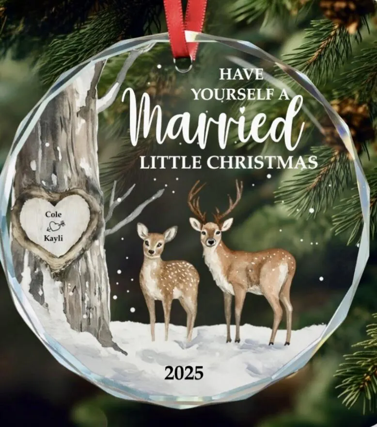 Married Little Christmas Gift For Wedding - Personalized Glass Ornament