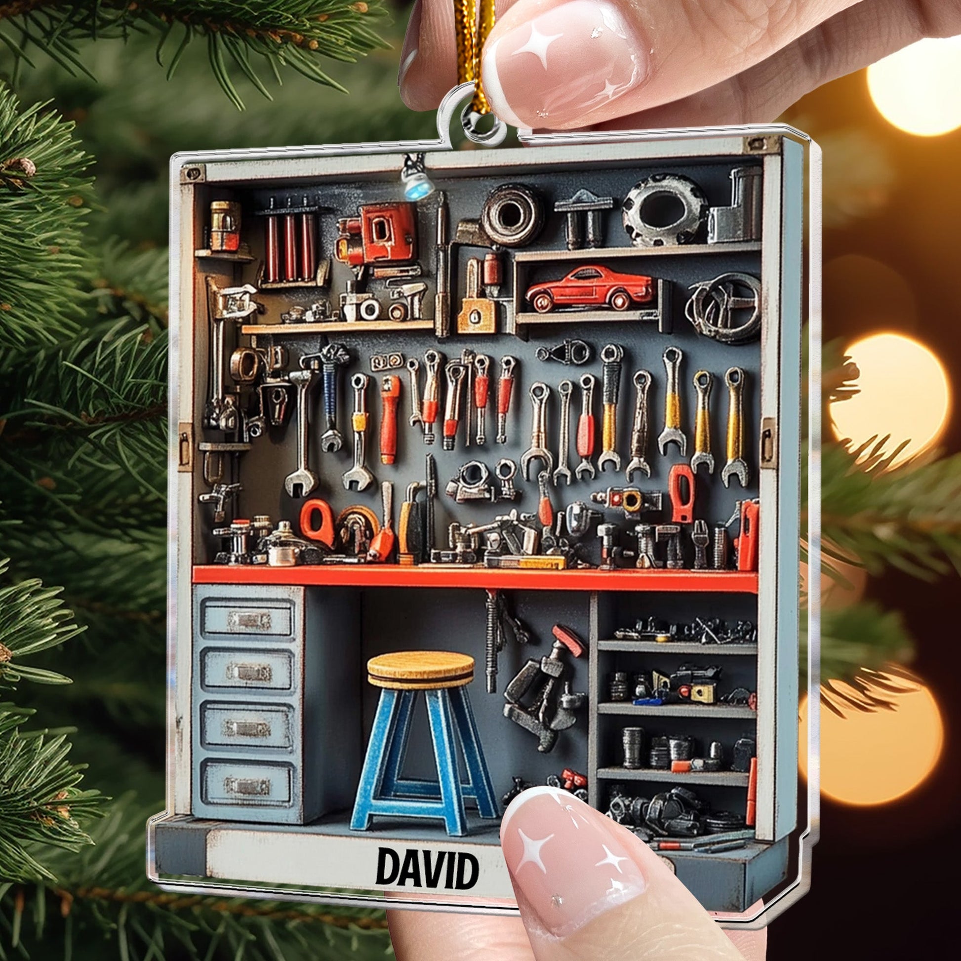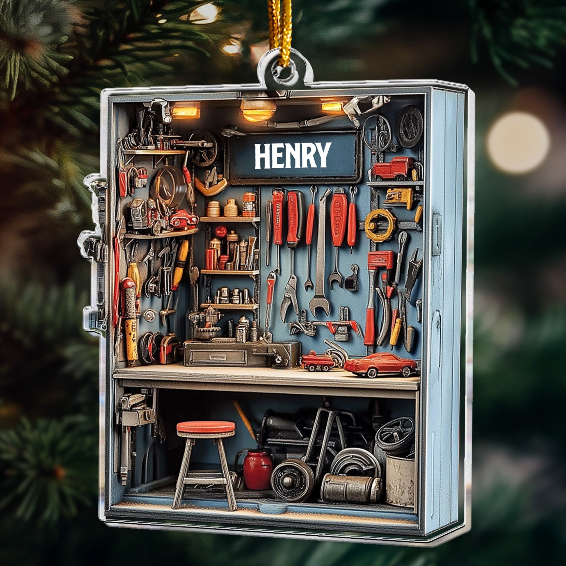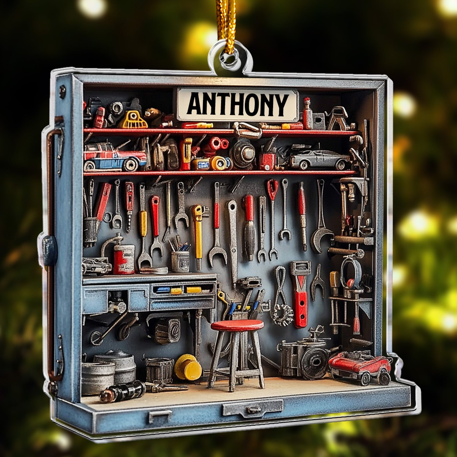 Mechanic Tool Box Ornament - Tools Garage Ornament - Personalized Acrylic Ornament