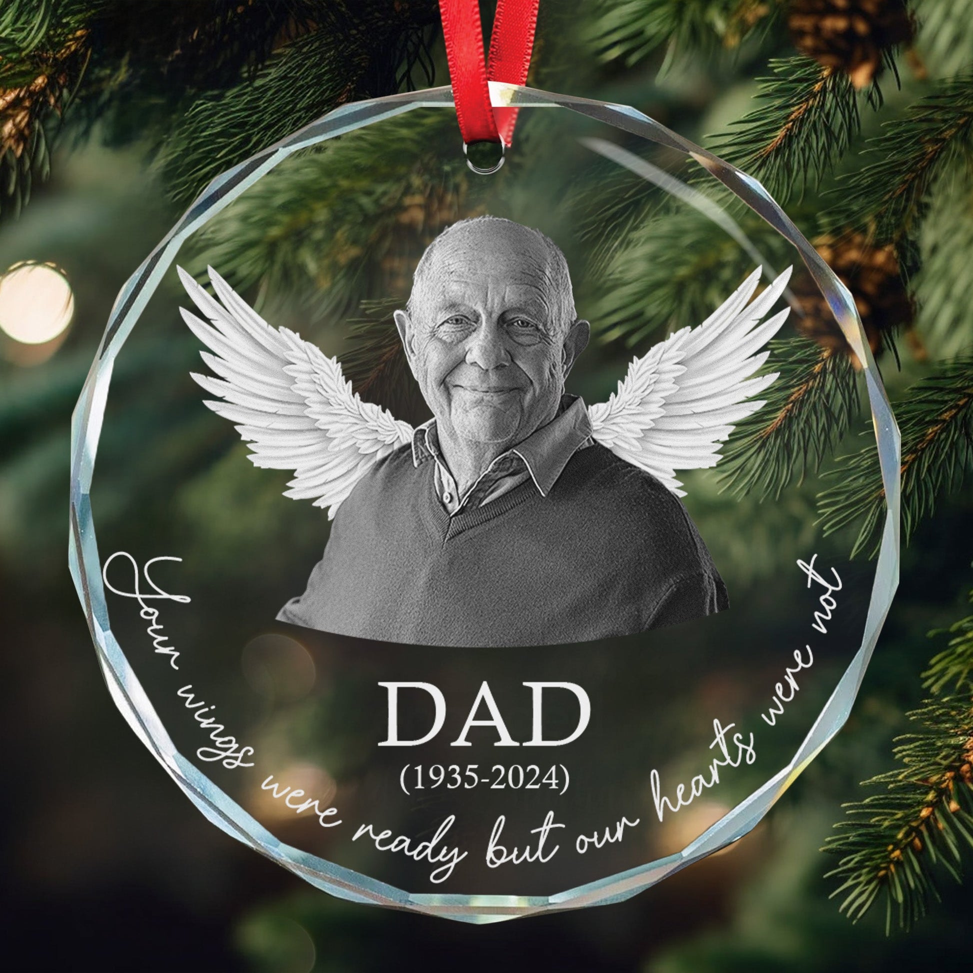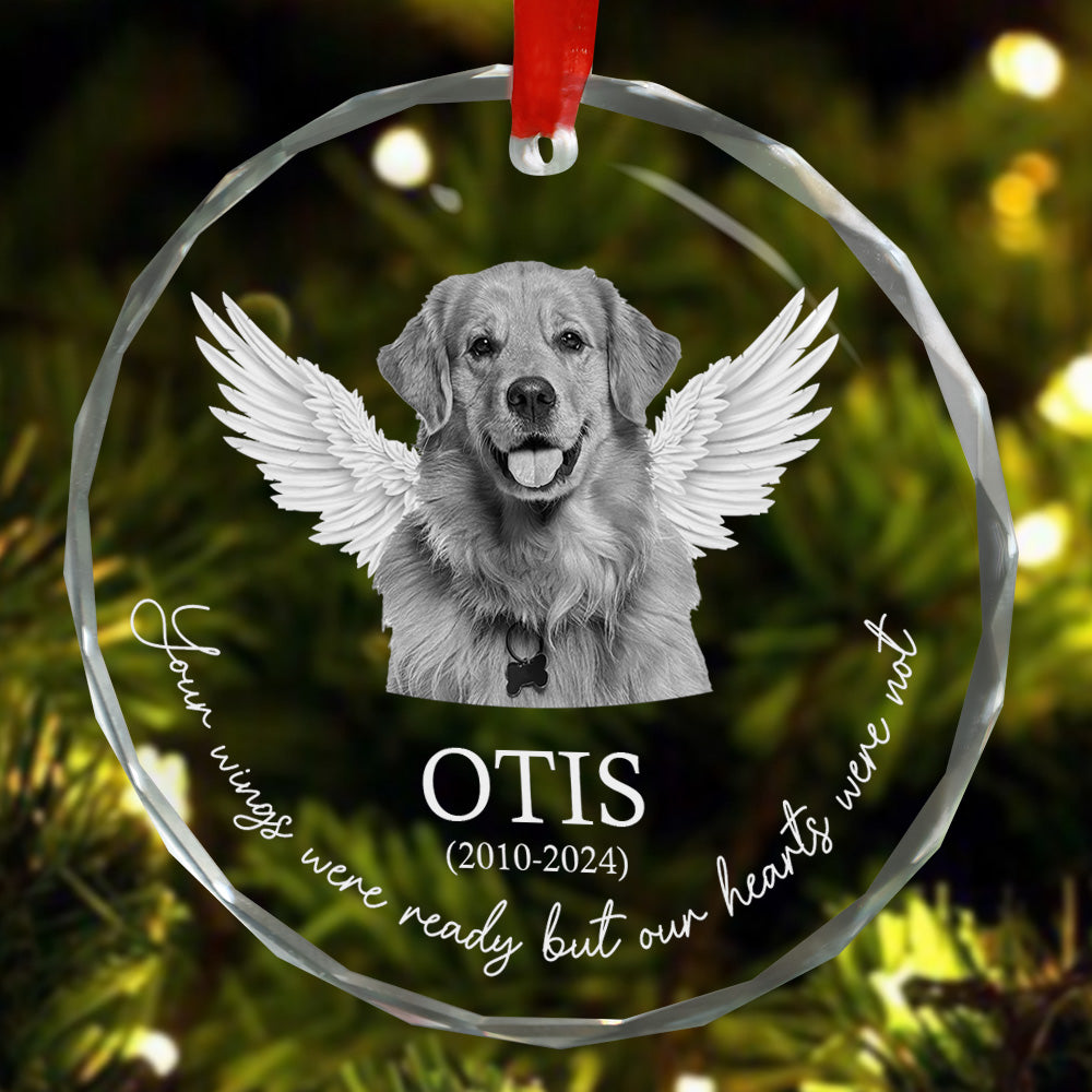 Memorial Your Wings Were Ready Our Hearts Weren't - Personalized Glass Photo Ornament