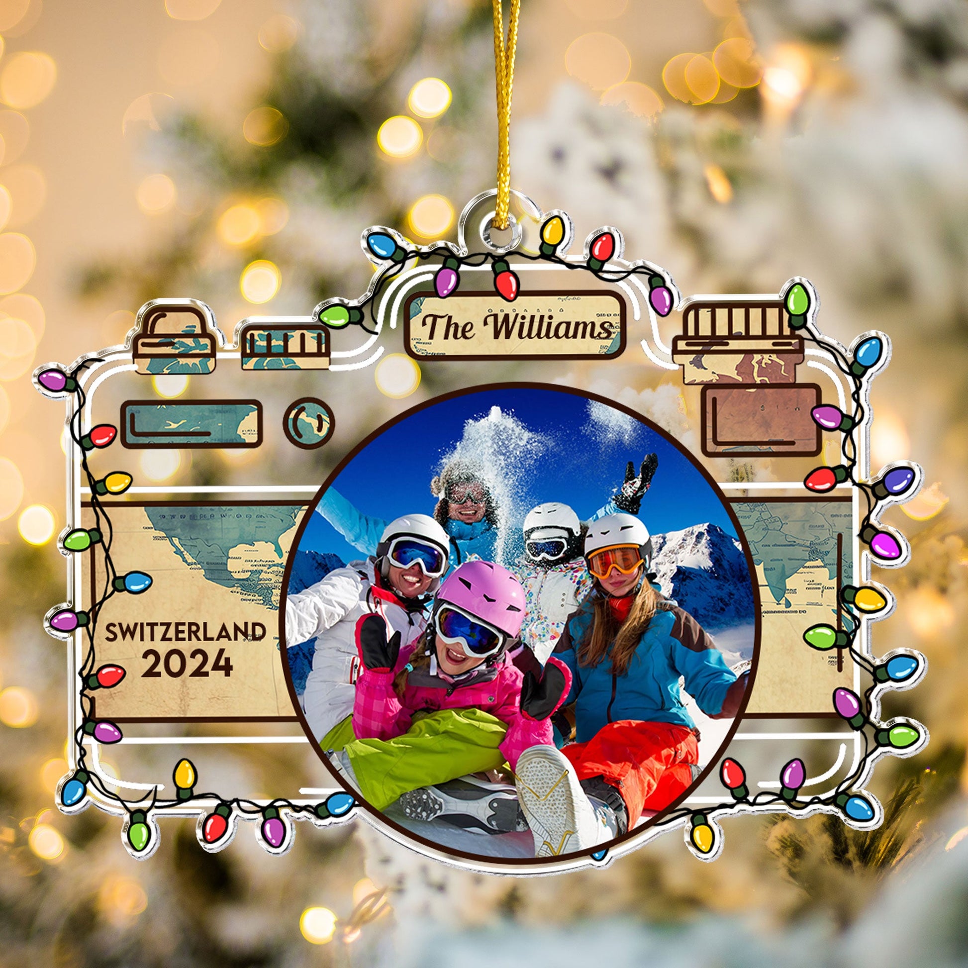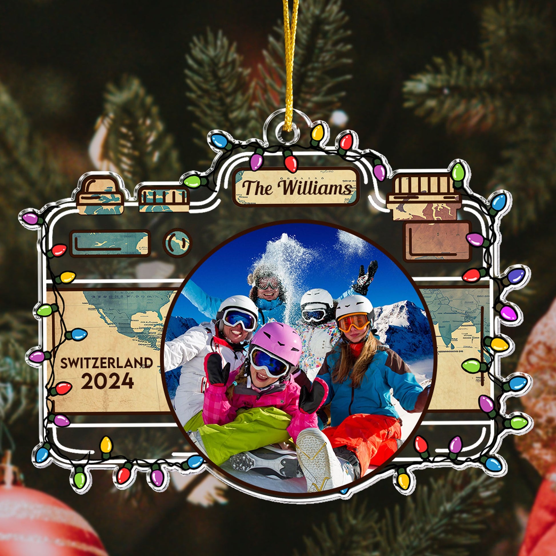 Celebrate your family's growth and new beginnings with a special custom ornament version for Christmas. This ornament can be personalized with the photo and location of your family's vacations. Kids and parents will adore watching these beautiful custom ornament on the Christmas tree.