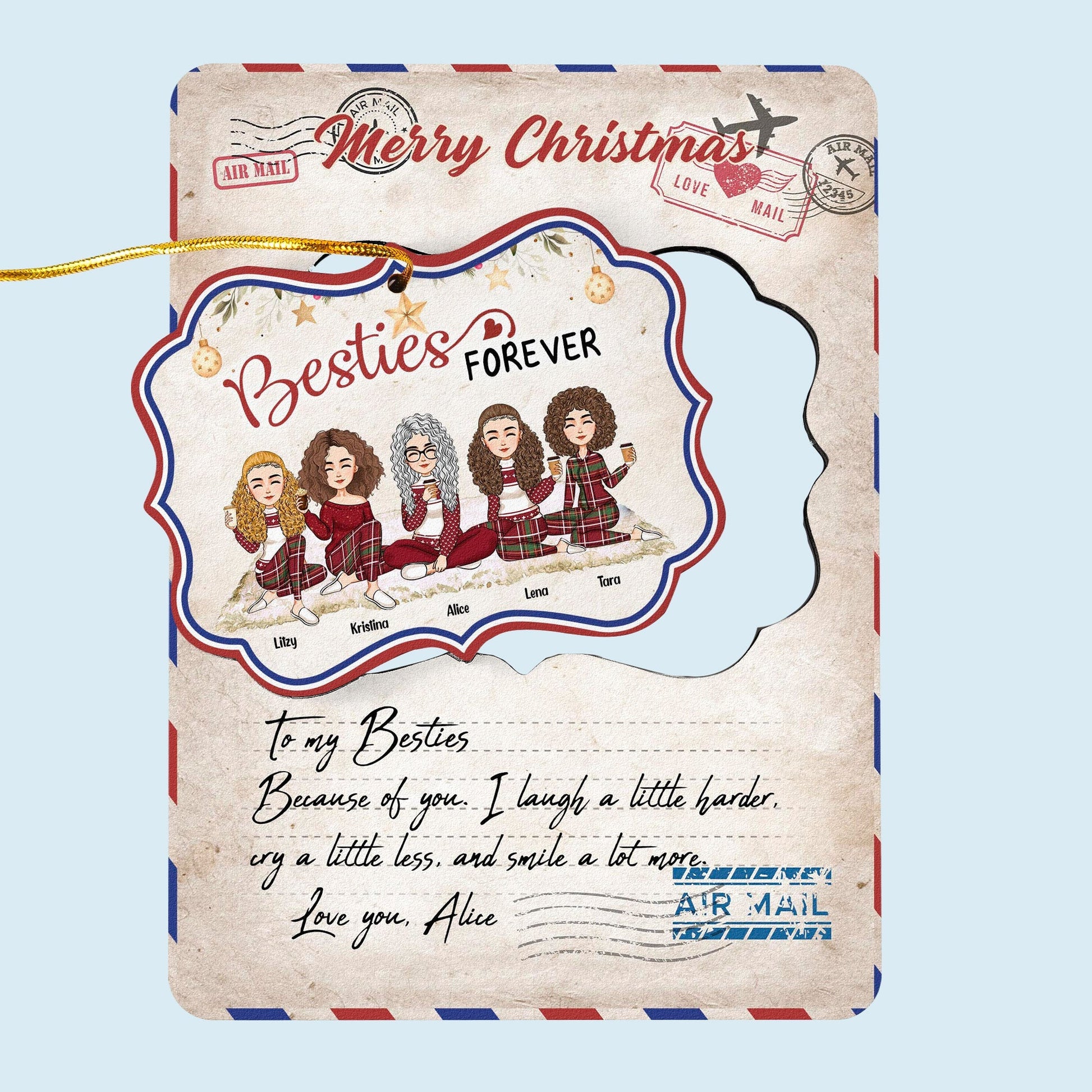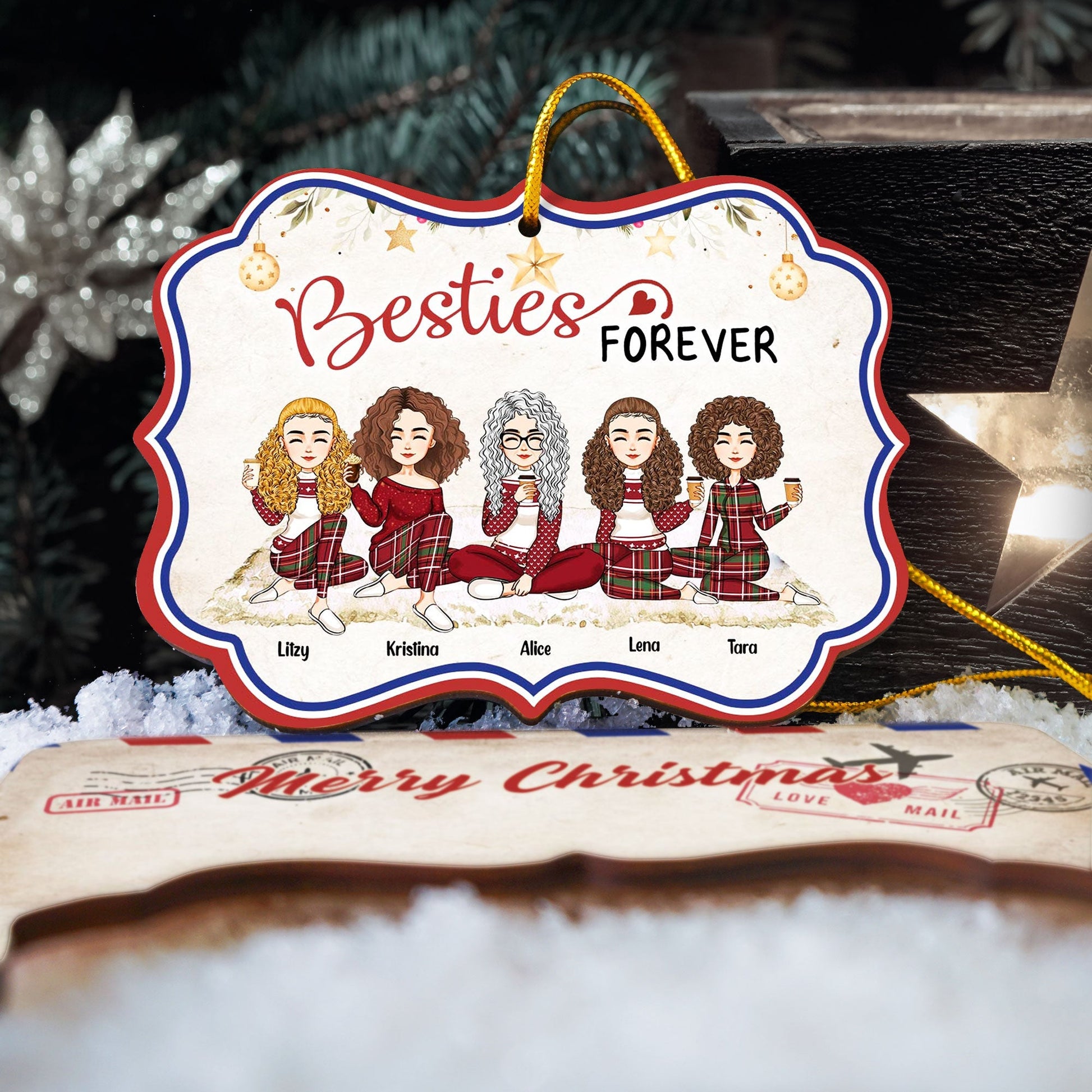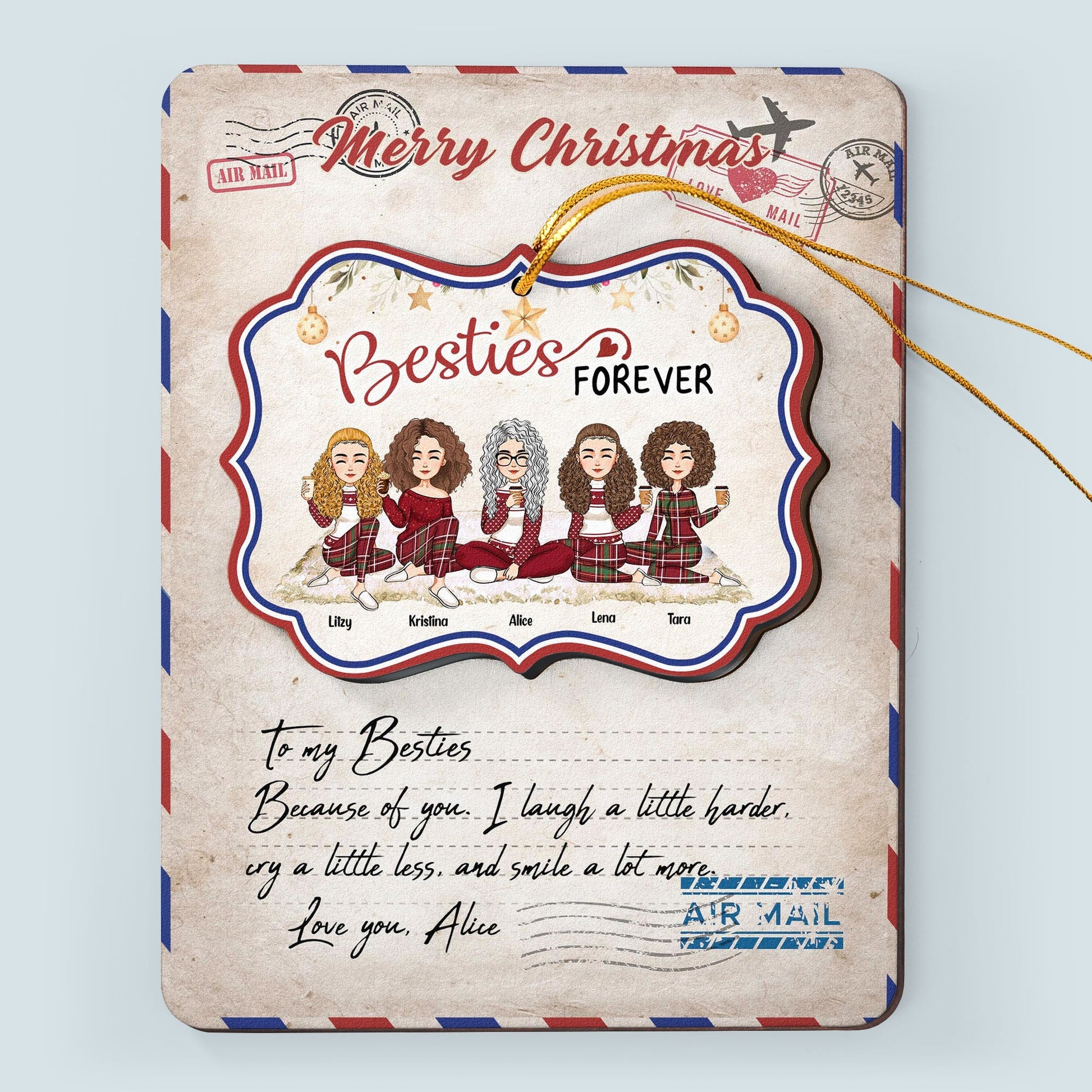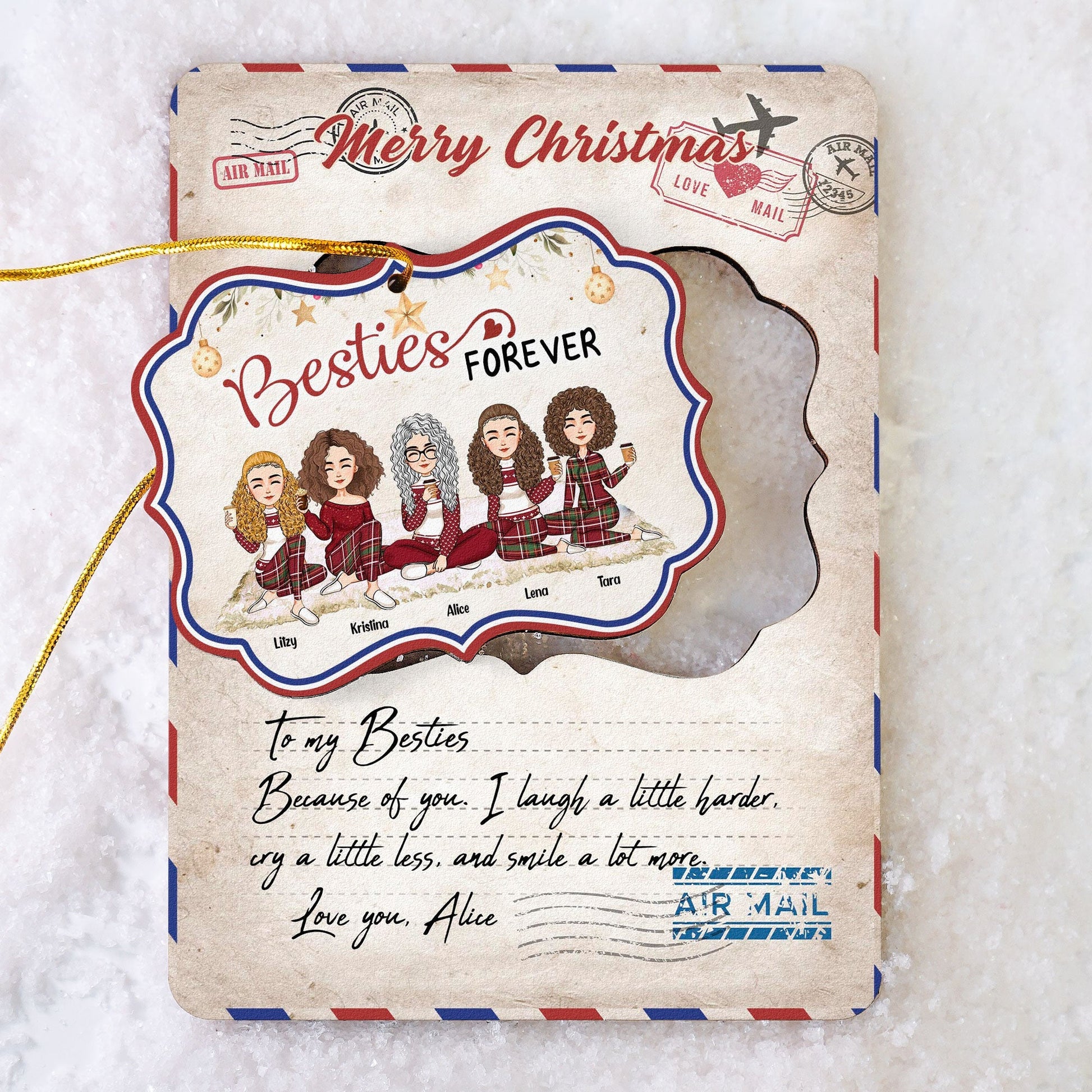 Merry Christmas My Besties Ver 2 - Personalized Wooden Card With Pop Out Ornament - Christmas Gifts For Besties, BFF, Sisters, Sistas