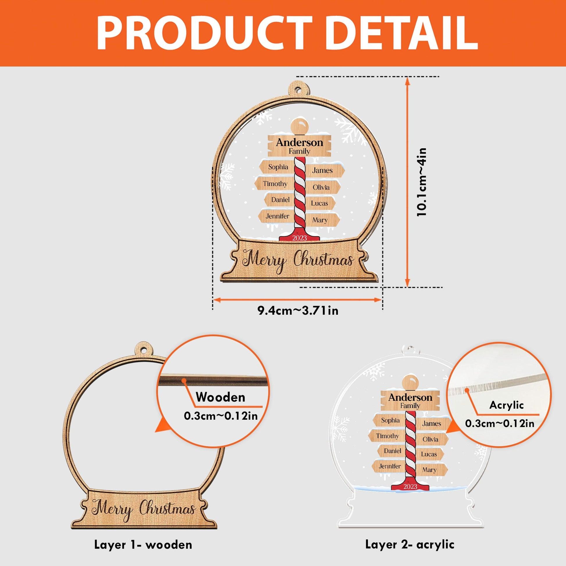 - The front of this wood & acrylic ornament is made from premium natural wood and mounted on acrylic plexiglass.