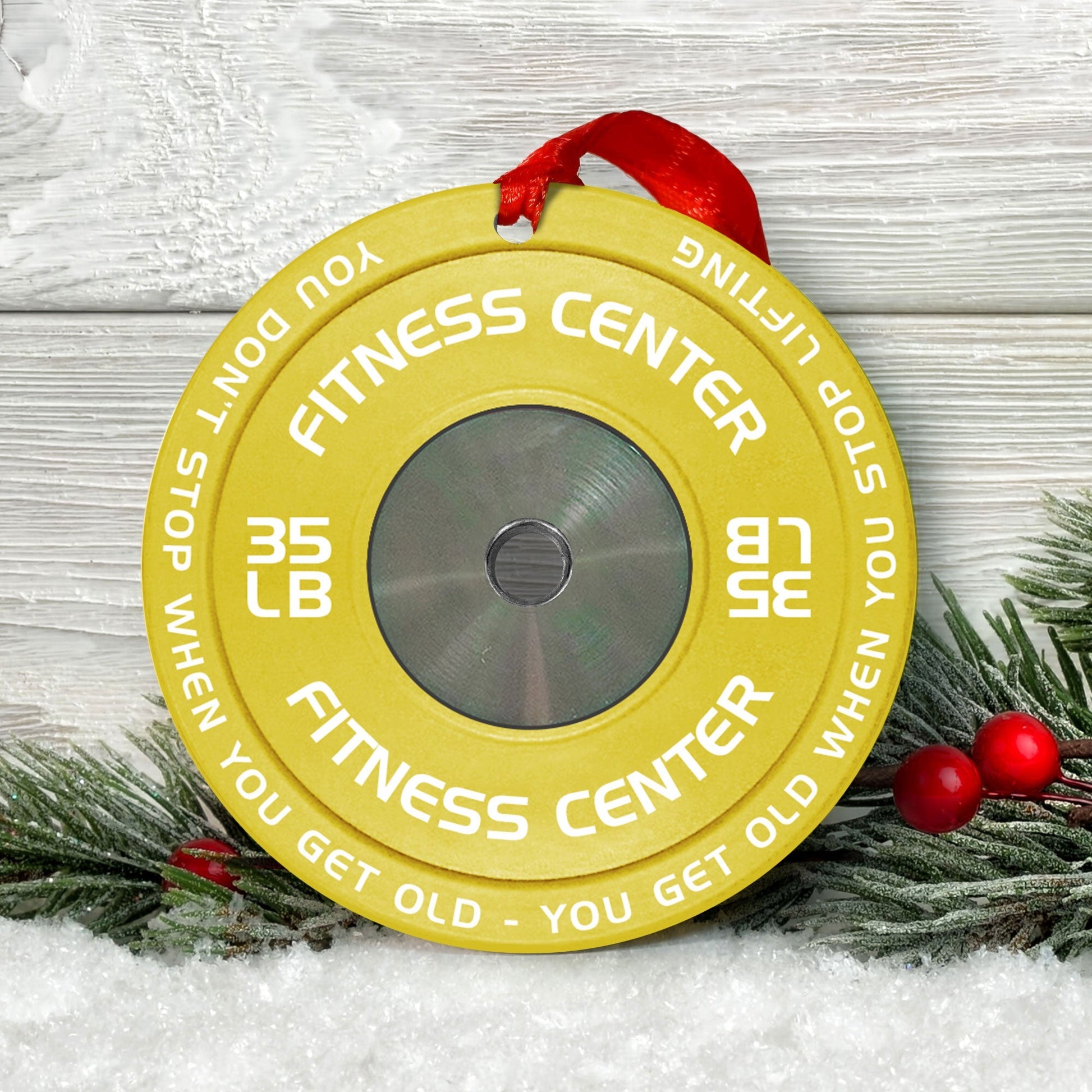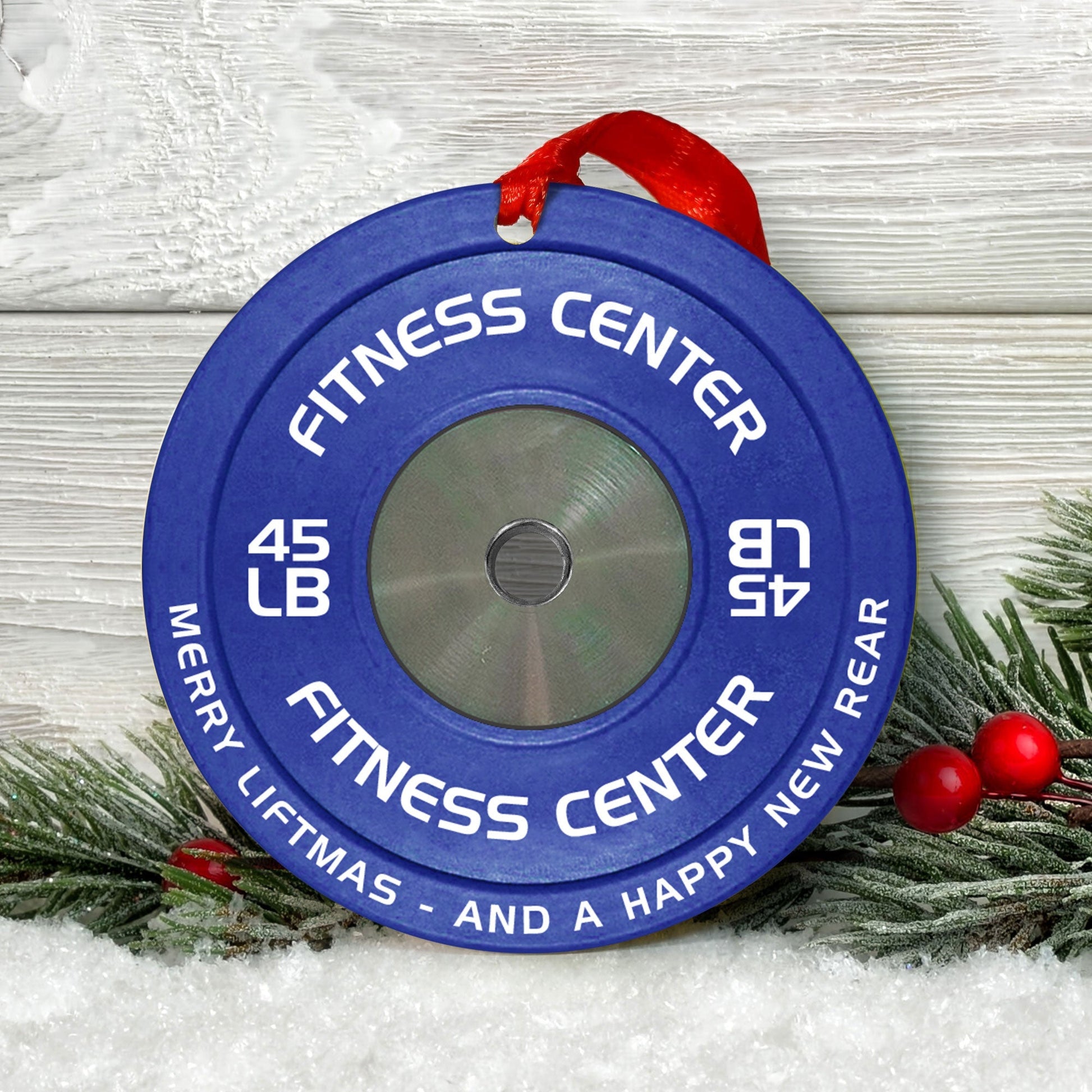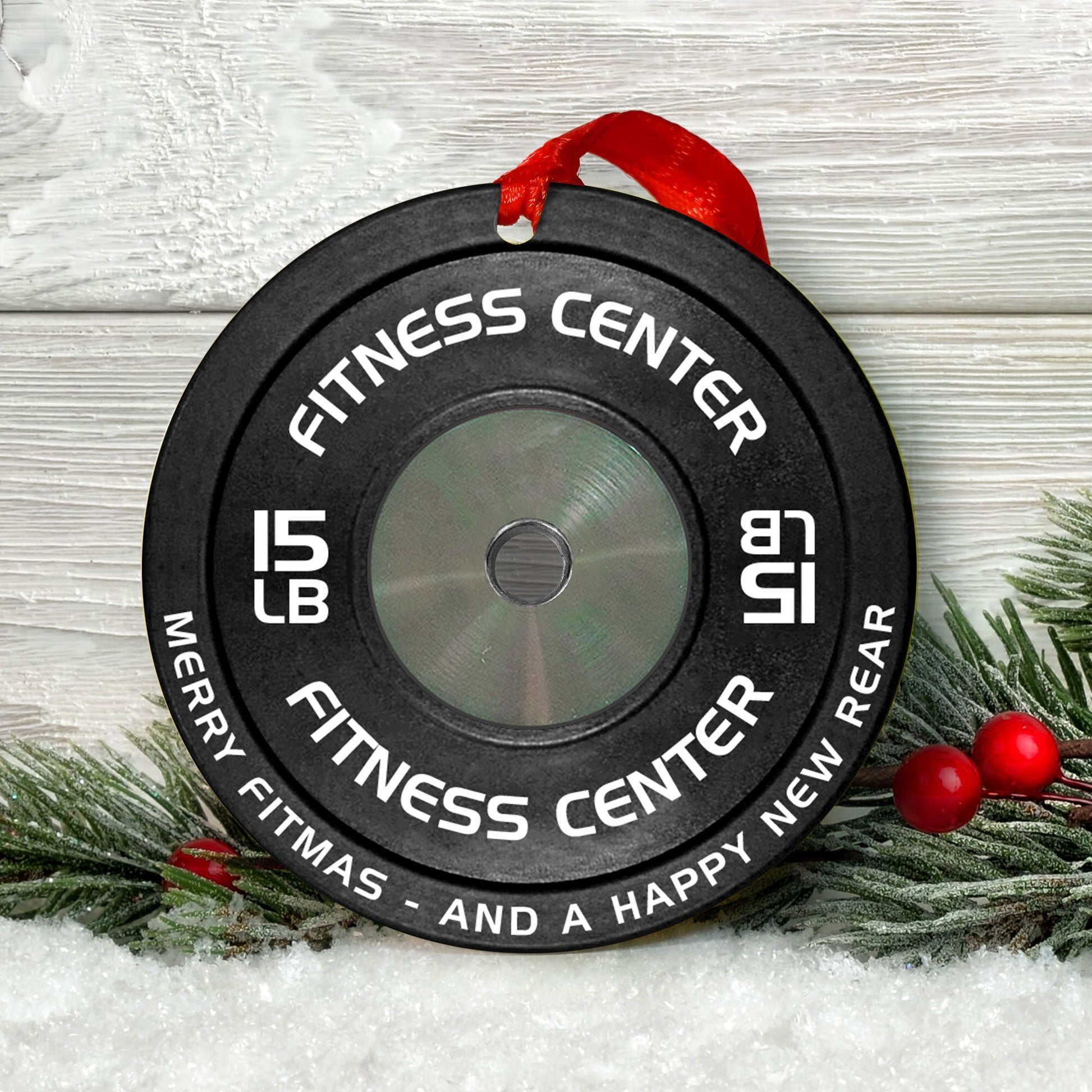 [Only available in the U.S] Merry Fitmas Weight Plates - Personalized Aluminum Ornament - Christmas Fitness Gym Weightlifting Gift For Gymers, Weightlifters, PTs
