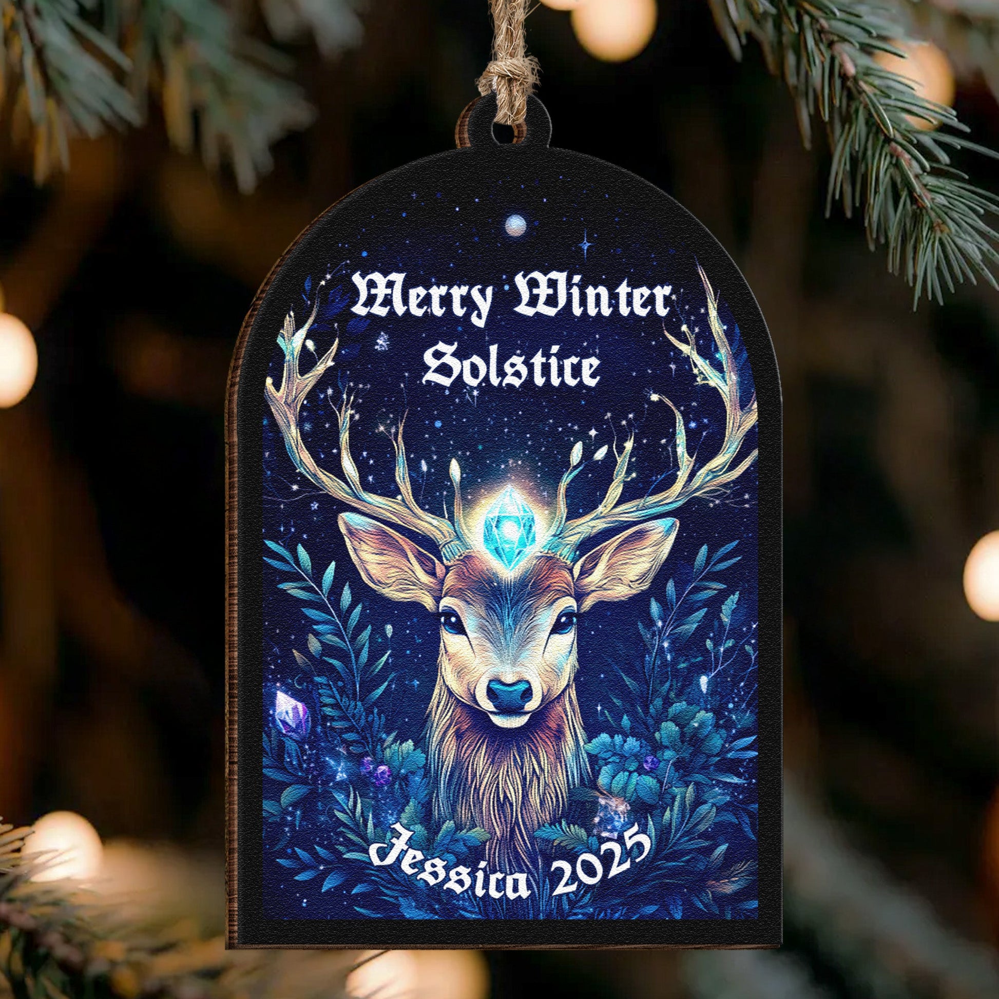 Merry Winter Solstice Wicca - Personalized Wooden Ornament
