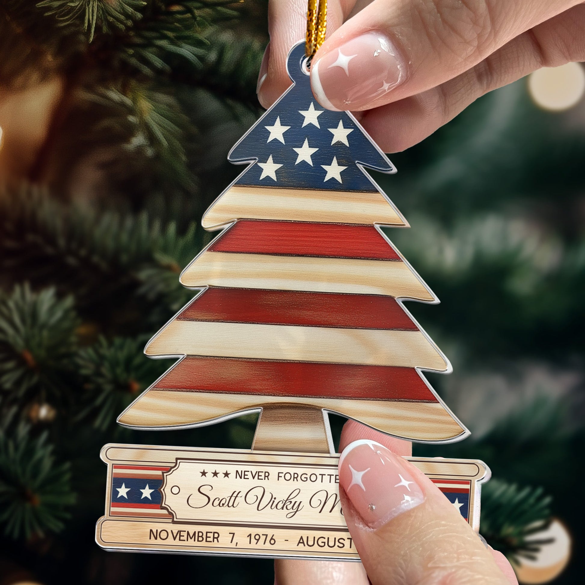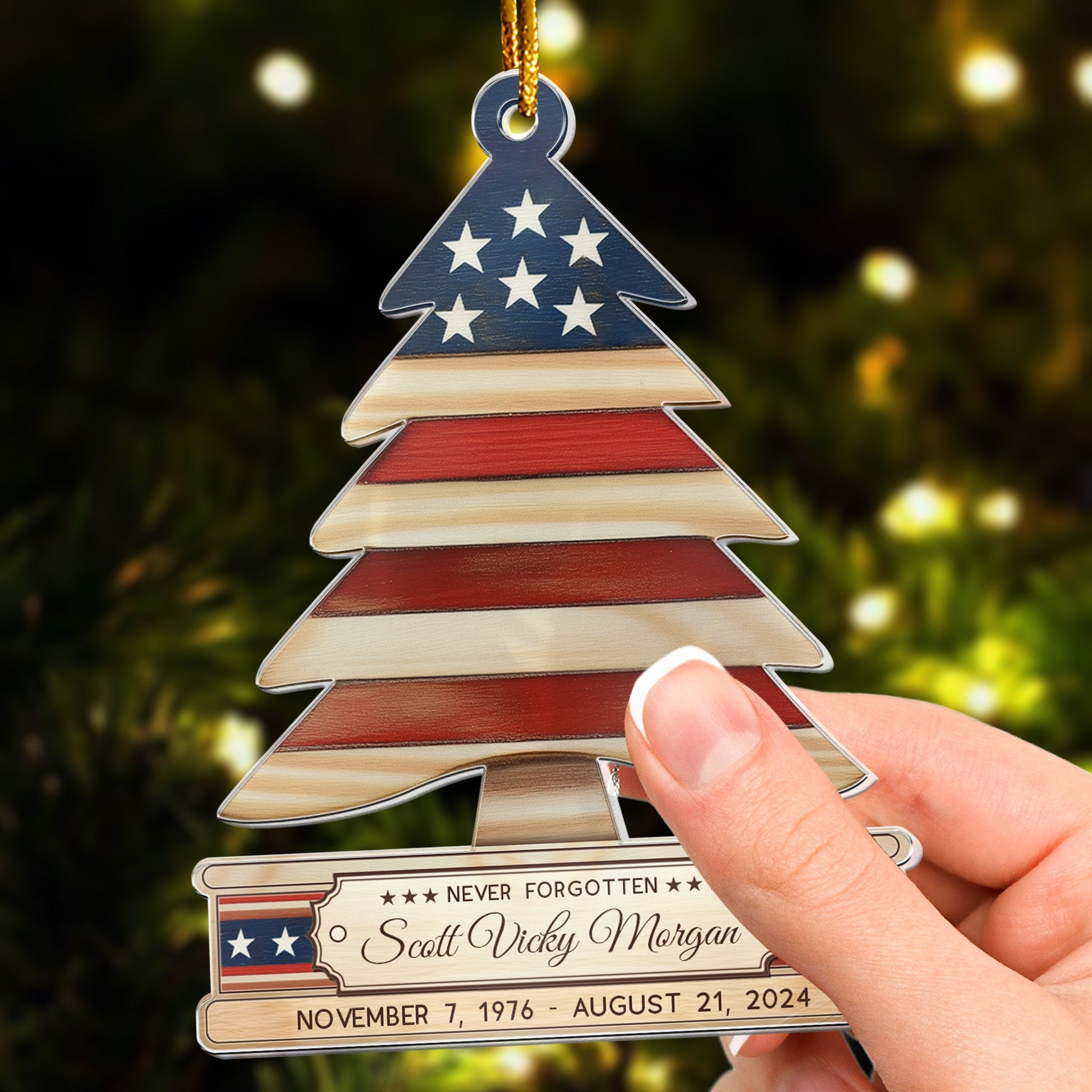 Military Christmas Ornaments - Folded Flag Memorial Ornament - Personalized Acrylic Ornament