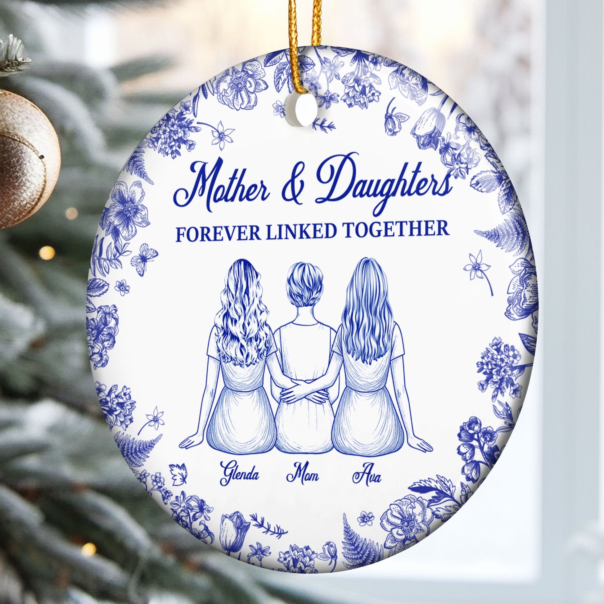 Mother And Daughters Forever Linked Together - Personalized Ceramic Ornament