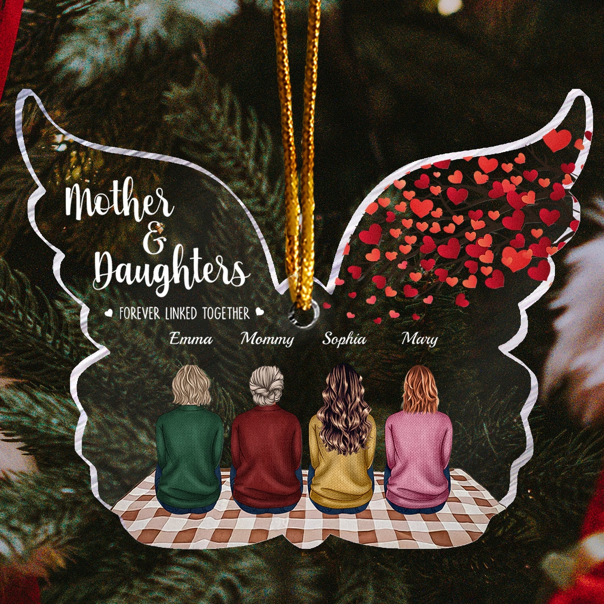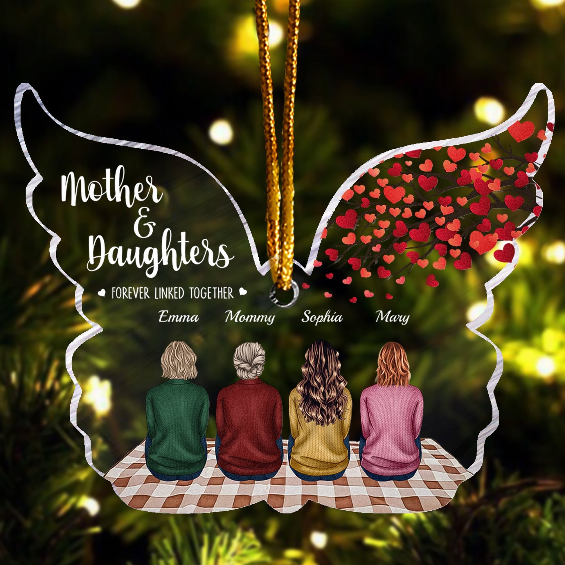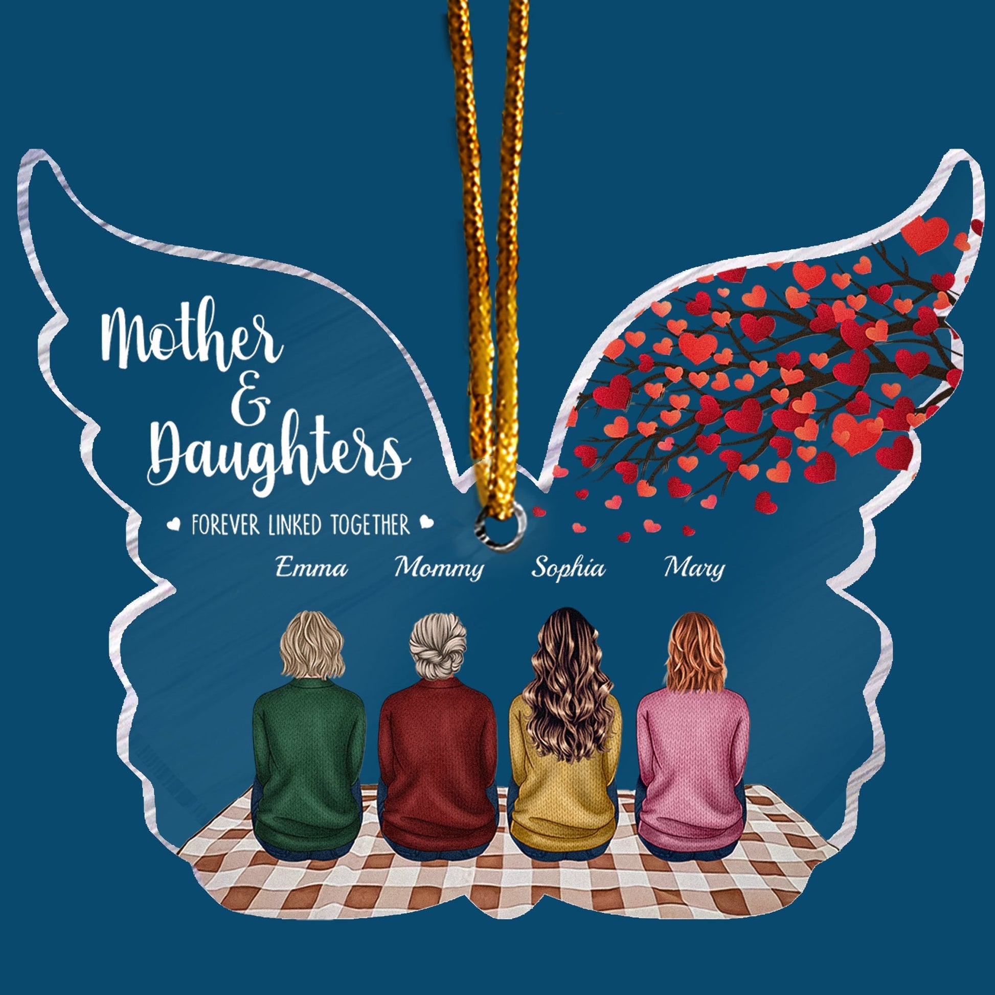 Mother & Daughters Forever Linked Together - Personalized Butterfly Shaped Acrylic Ornament