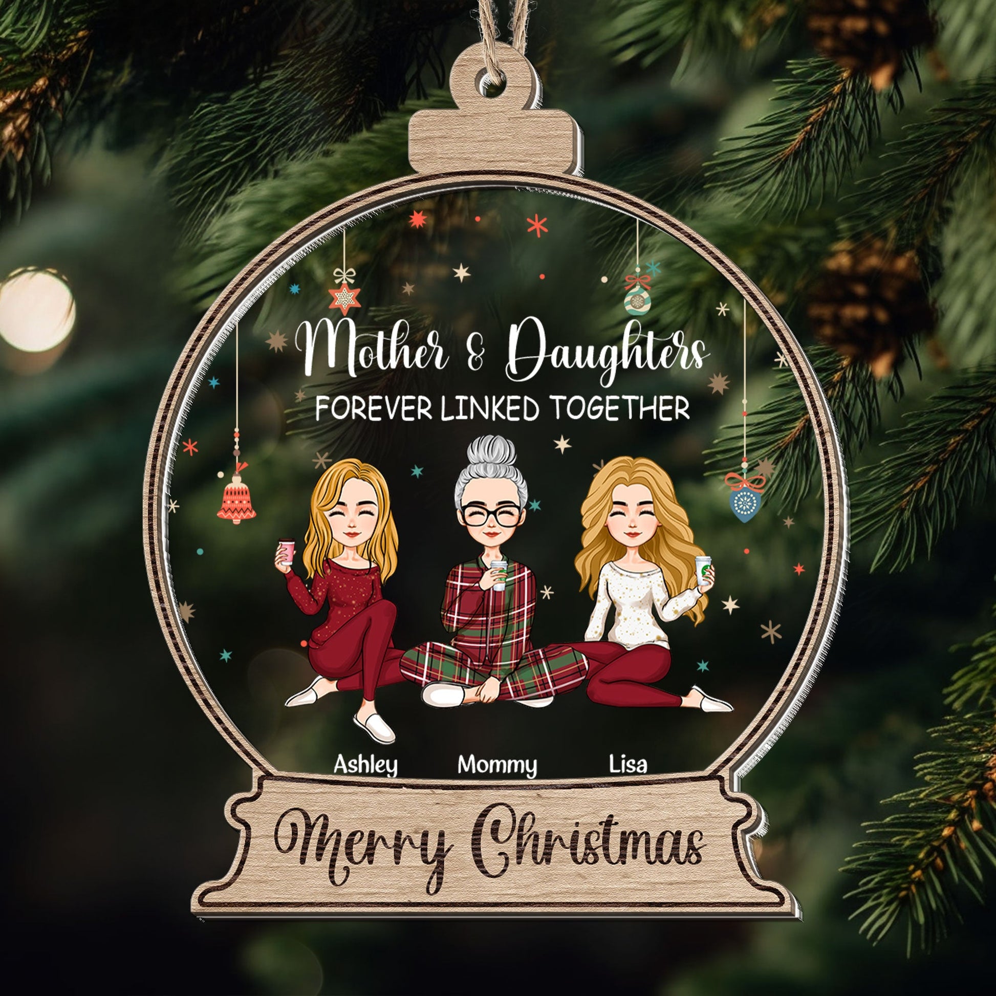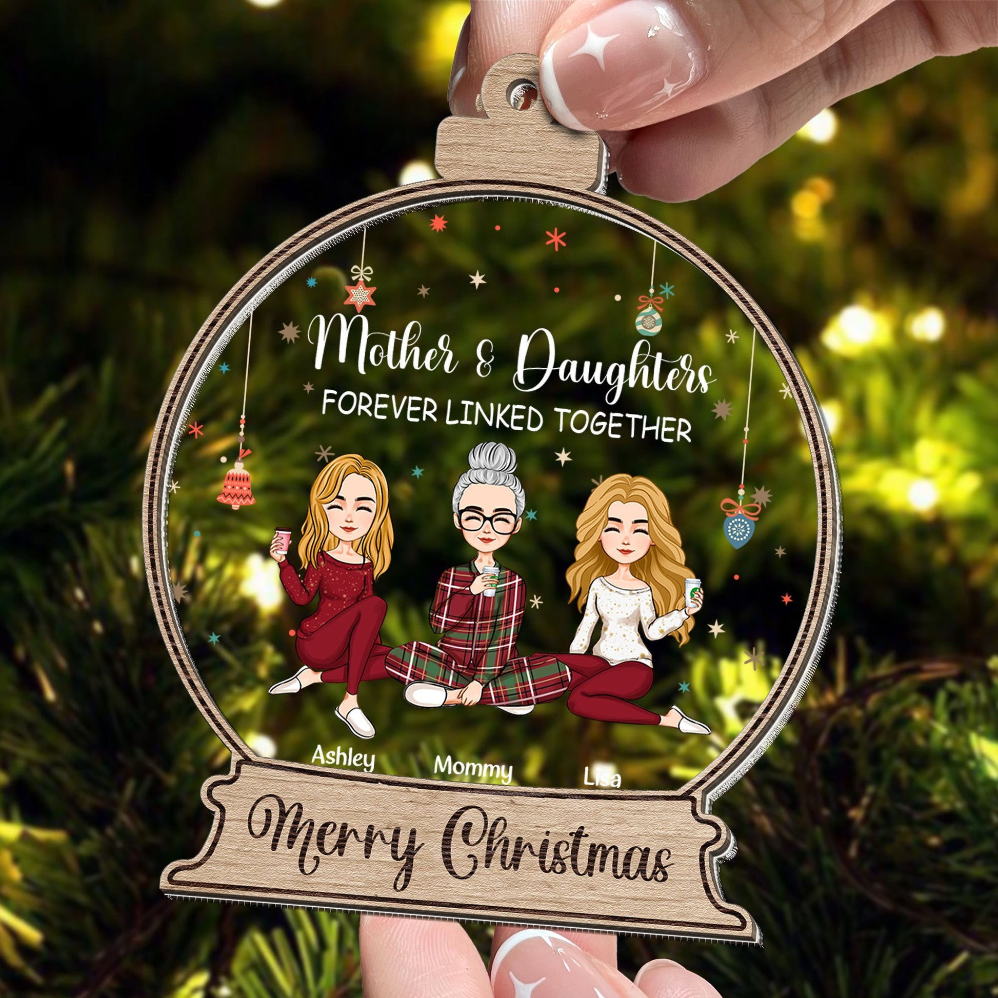 Mother & Daughters Forever Linked Together - Personalized Wood And Acrylic Ornament