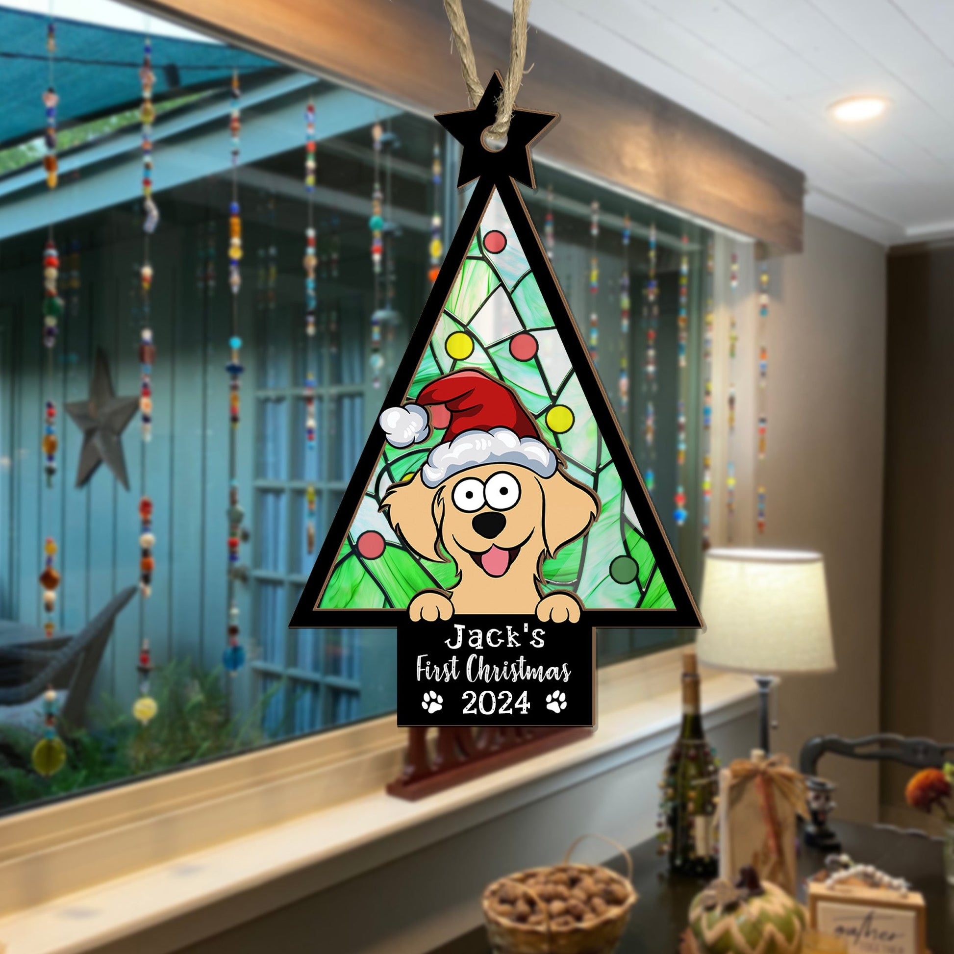 Capture your dog's first Christmas with our personalized suncatcher ornament – the ultimate gift for dog parents this season.