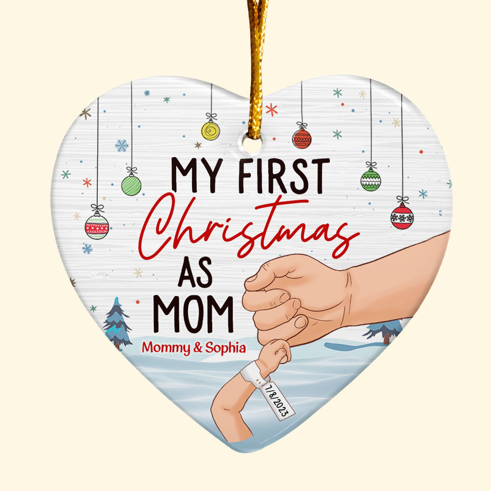 My First Christmas As Mom - Personalized Heart Shaped Ceramic Ornament