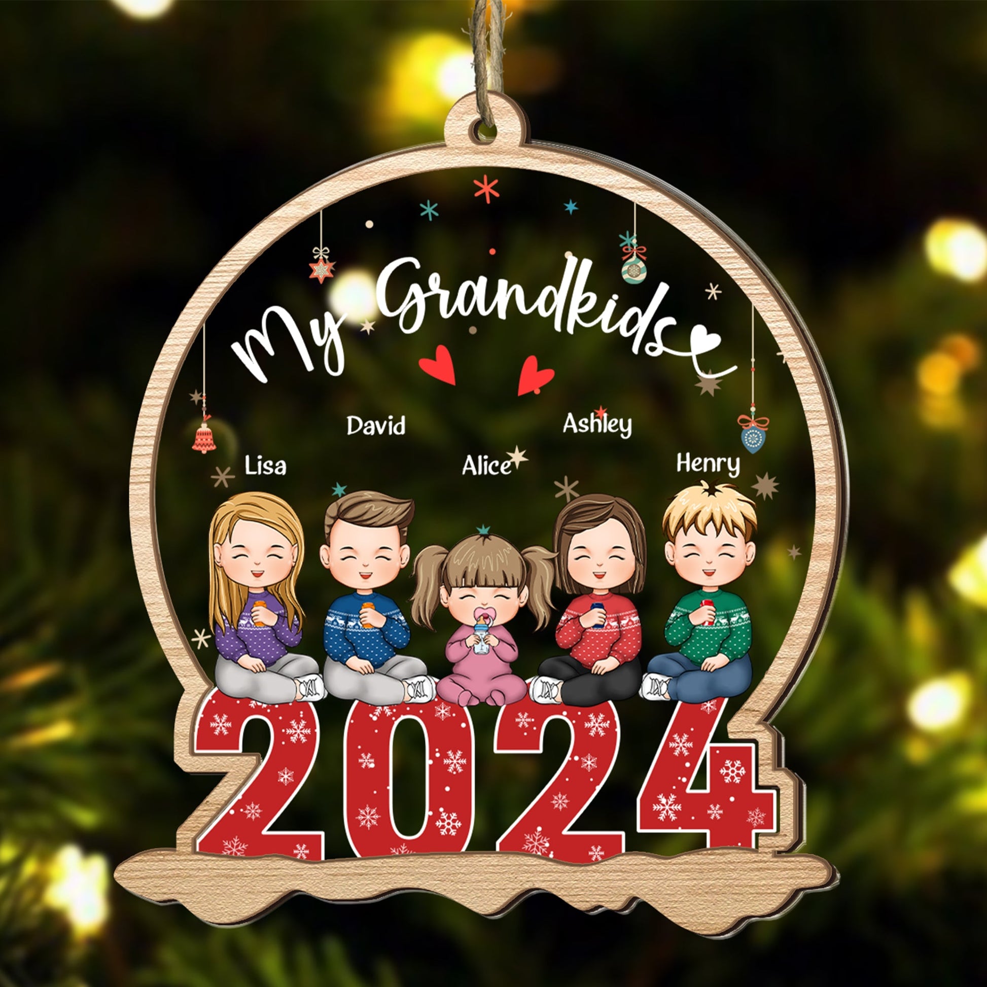 My Grandkids 2024 - Personalized Wood And Acrylic Ornament