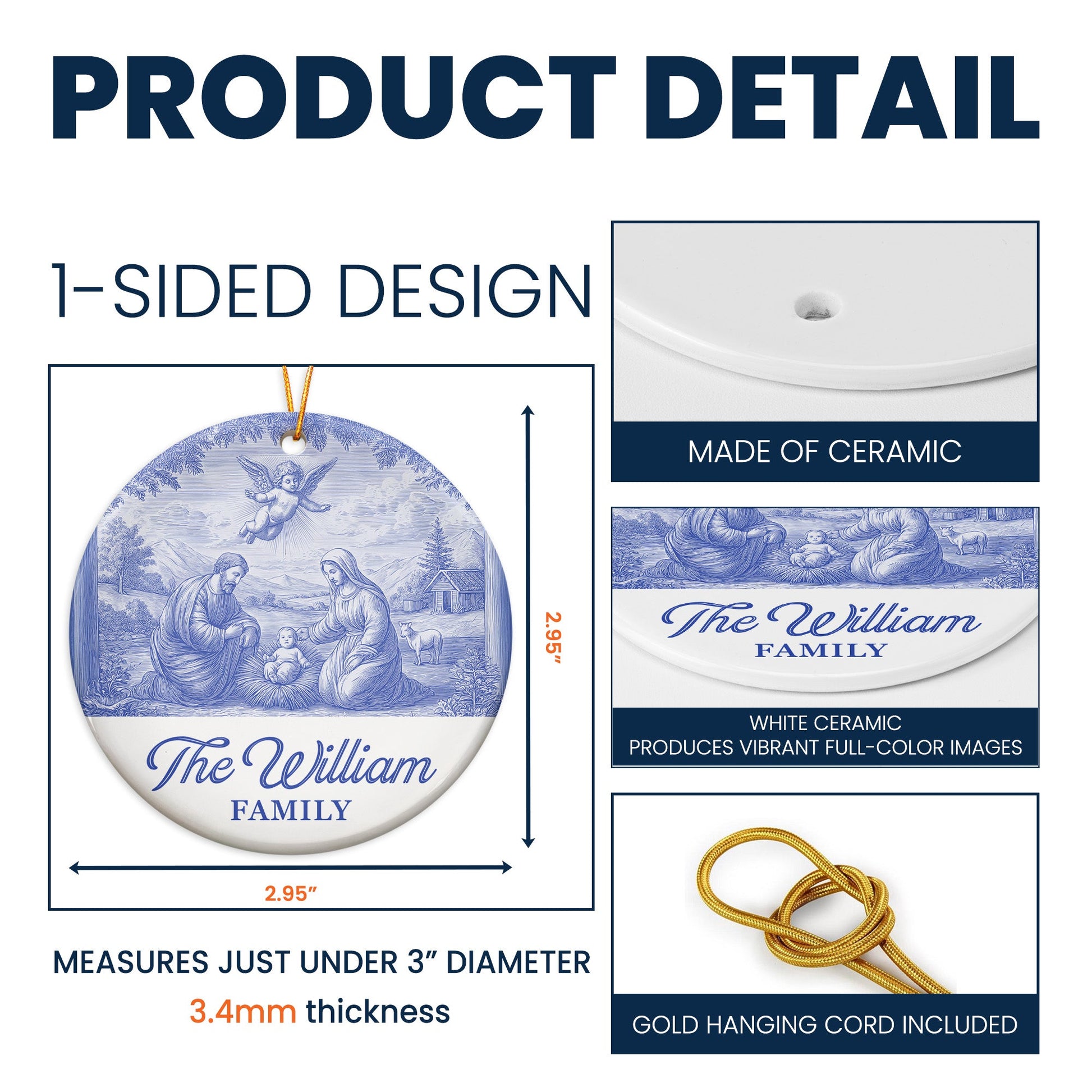 Nativity Scene Blue Toile De Jouy Christmas Holy Family - Personalized Ceramic Ornament