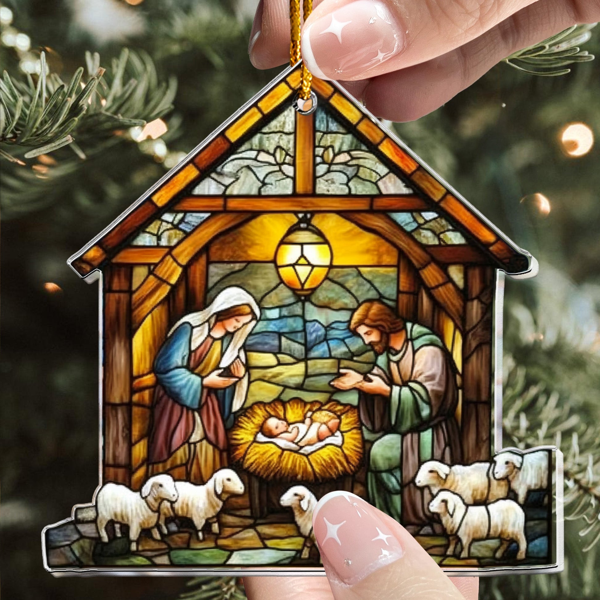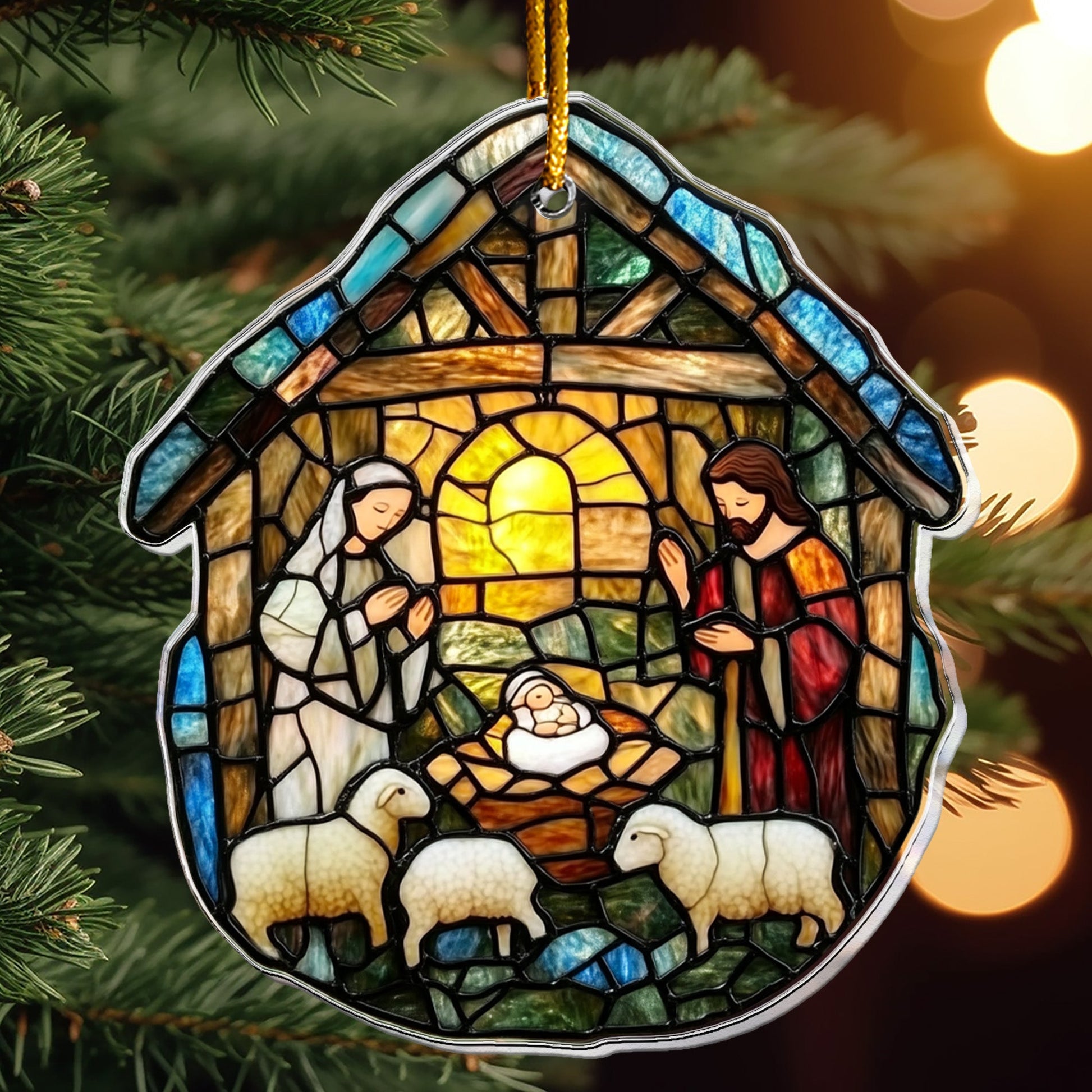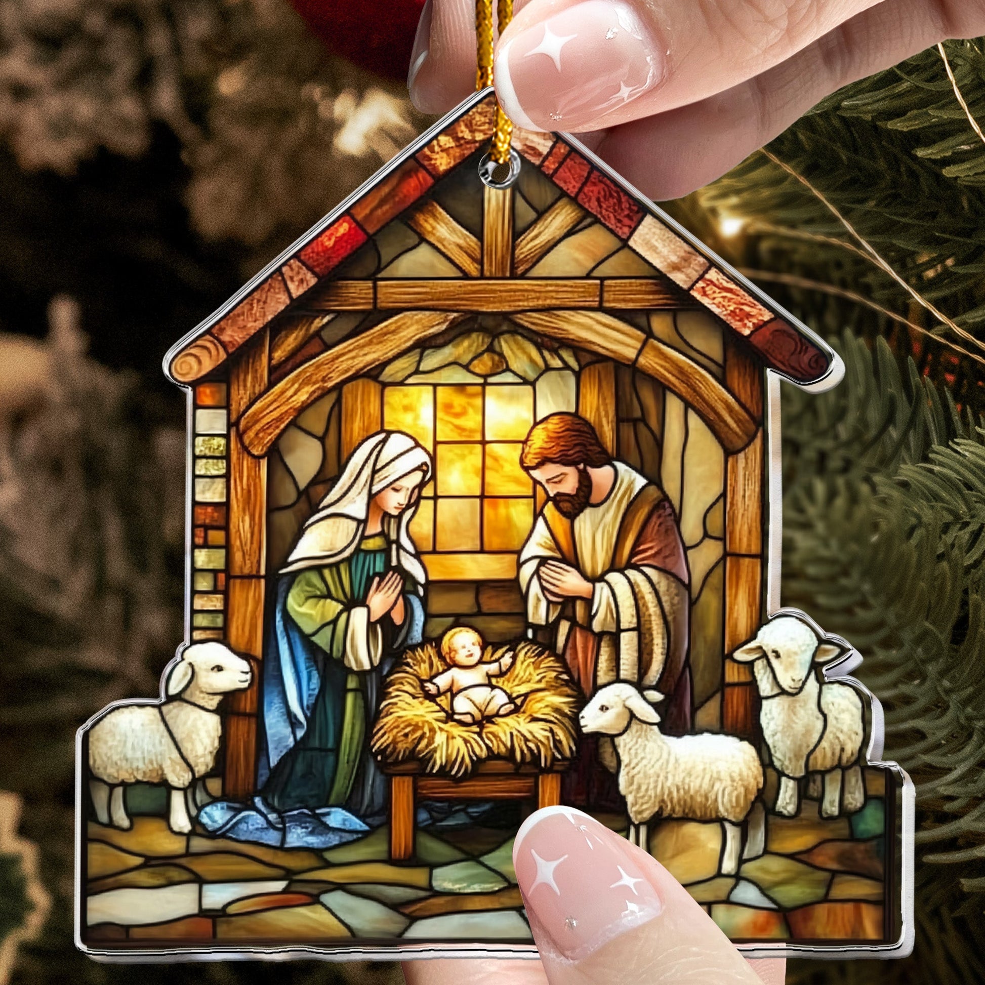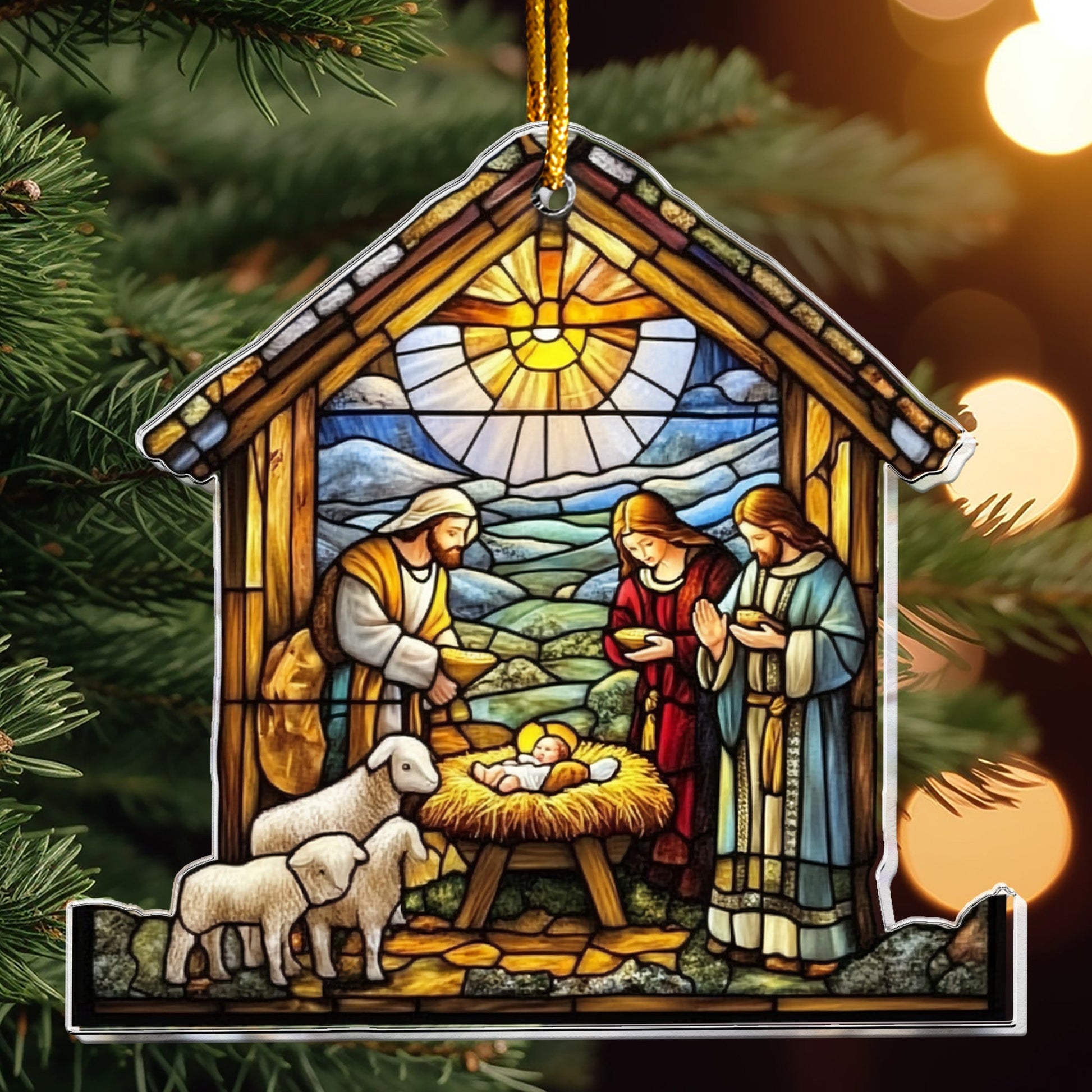 Nativity Scene Christmas Ornament Stained Glass Style - Personalized Acrylic Ornament