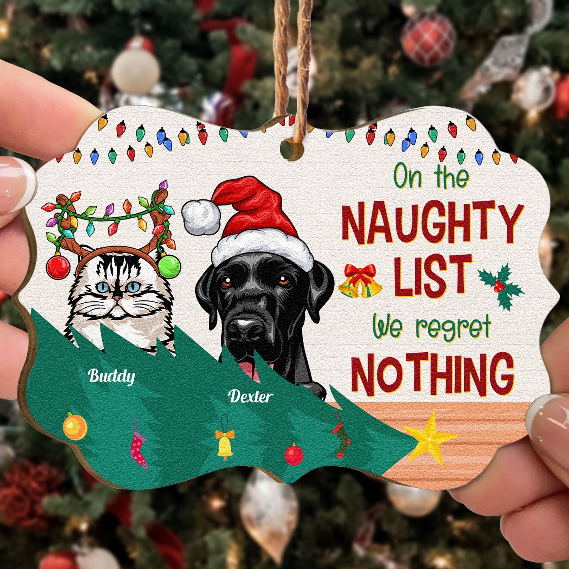 Naughty List & I Regret Nothing - Personalized Wooden Ornament